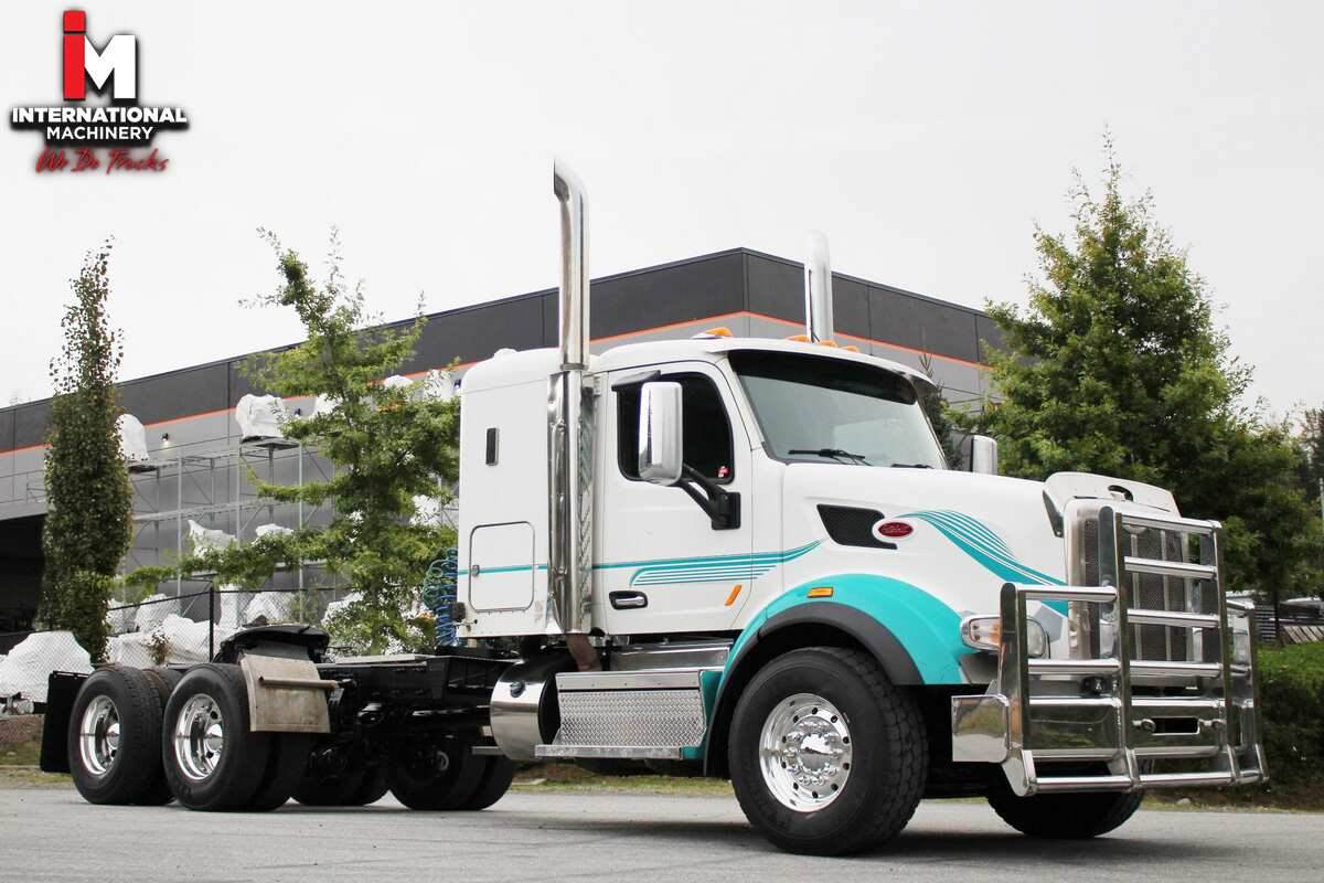 2019 Peterbilt 567 Tandem Axle with 36in Sleeper X15 500HP 18 Spd Stock #: 52861 Exterior Colour: White with Teal Fenders Engine: Cummins X15 Horsepower: 500 Transmission: 18 Spd Front Axle: 16,000 Rear Axle: 46,000 Gear Ratio: 3.91 Frame: 3/8s Brakes: Jake Suspension: Air Trac Wheelbase: 295.0 Mileage: 545K Miles
