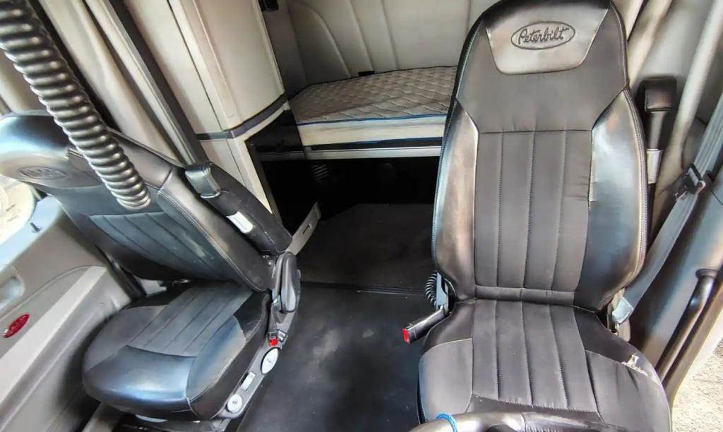 2019 Peterbilt 579 Sleeper Cab, High Roof, Complete. Wired For MX13 EPA17 Engine & Eaton EEO-18F112C Transmission. Driver Seat Cushion Torn, Passenger Seat Back Rest Won't Lock, Small Pullout Tray Below HVAC Controls Has Damage, Driver Door Switch Panel