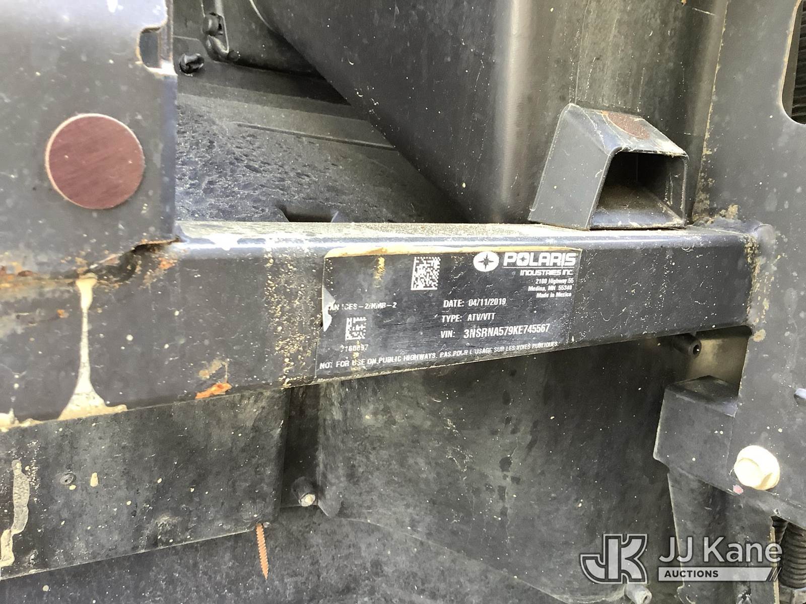 2019 Polaris Ranger All-Terrain Vehicle, s/n 3NSRNA579KE745567, 1-cyl Gas, Auto, (7,240 miles) (Runs & Moves) (Removal is by Appointment Only, Buyer MUST make a appointment prior to picking up, Buyer/Transporter Must have PAID IN FULL RELEASE. No onsite assistance available, Please Come prepared.) NOTE: This unit is being sold AS IS/WHERE IS via Timed Auction and is located in Harmans, MD. Inspection & preview days for this unit are by appointment only; please contact us at contact@jjkane.com or 84-Go-JJKane for more details. For pre-sale questions, please contact the on-site office @ (443) 557-0025 or Kevin.Waggoner@JJKane.com. (Buyer is responsible for removal. Assistance by consignor or JJ Kane Auctions is not assured.)