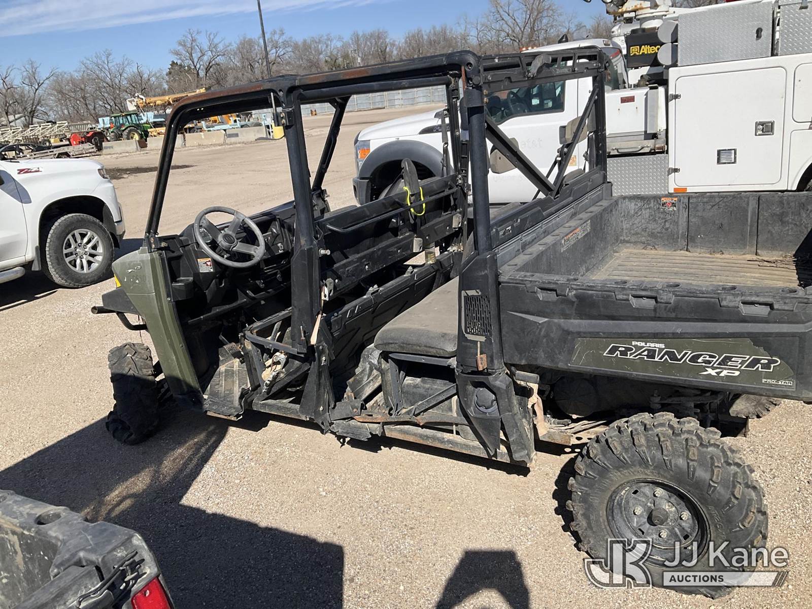 2019 Polaris Ranger Crew XP 900 All-Terrain Vehicle, s/n 4XARVA871K8503788, 4wd, gas, Auto, with ROPS, (Not Running, Condition Unknown) (No Ignition, Has Damage, Missing Engine Parts) NOTE: This unit is being sold AS IS/WHERE IS via Timed Auction and is located in Wichita, KS. Inspection & preview days for this unit are by appointment only; please contact us at contact@jjkane.com or 84-Go-JJKane for more details. (Buyer is responsible for removal. Assistance by consignor or JJ Kane Auctions is not assured.)