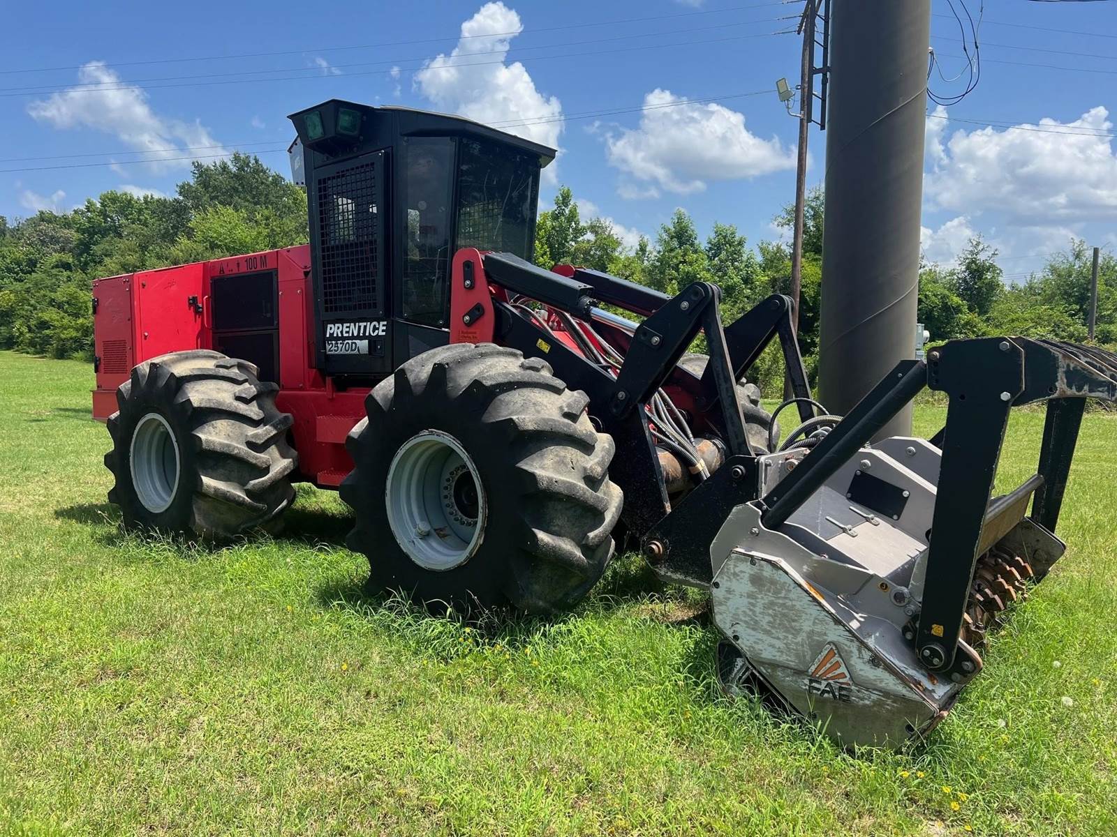 2019 Prentice / Cat 2570D Mulcher - 3,305 machine hours, 2021 FAE 200/U-225 Mulching head with 2,200 hours, Good 28L x 26 tires, C7.1 engine ( Tuned to 250 HP), Cab with air, Ready to work! Sold with a 30 day powertrain parts warranty. $195,000