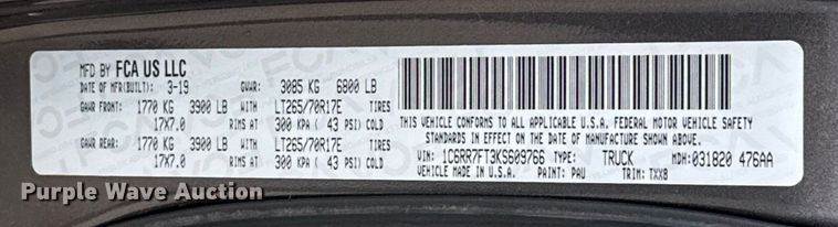 VIN: 1C6RR7FT3KS609766