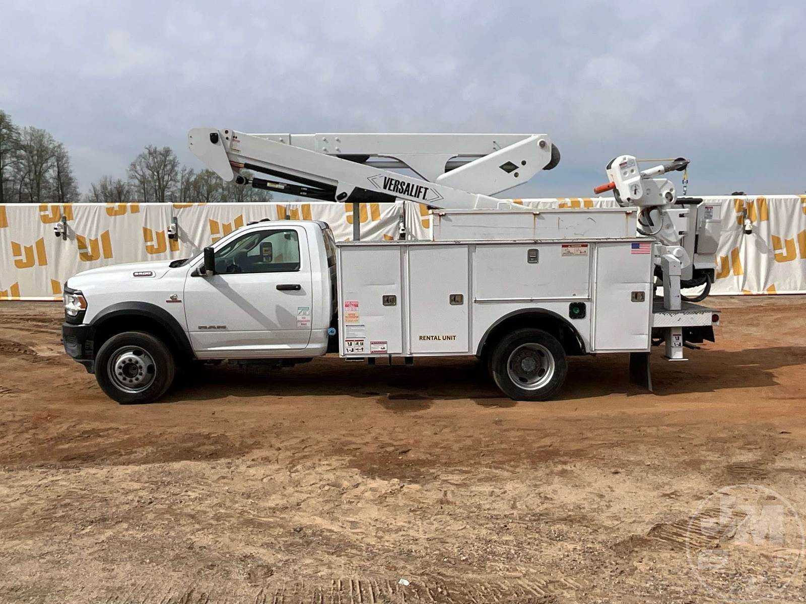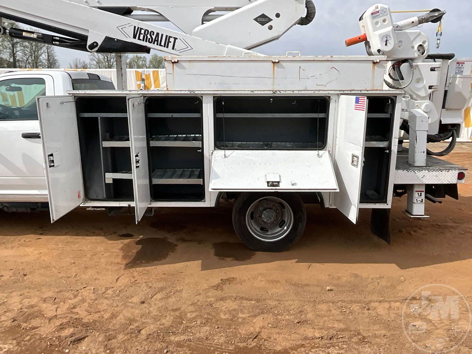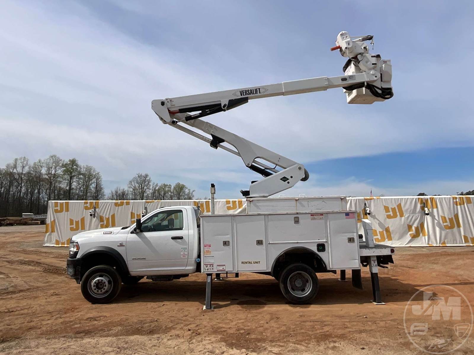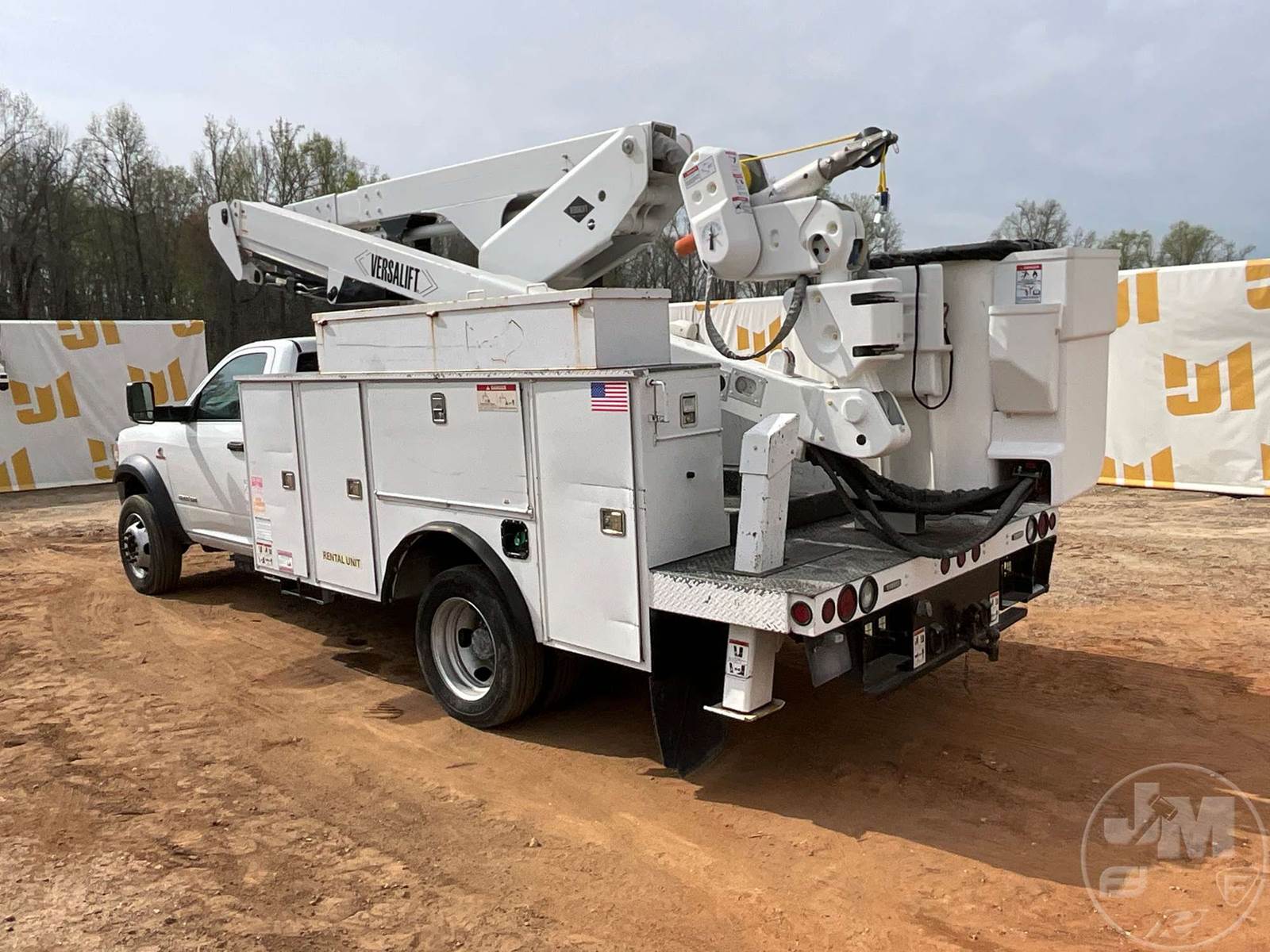VERSALIFT VST47 BUCKET TRUCK, MID MOUNT BOOM, BOOM SN KX190126, CUMMINS, 6.7 TURBO DIESEL, SINGLE AXLE, AUTOMATIC, 4X4, SPRING SUSPENSION, 168 " WB, WORK HEIGHT 47', UTILITY BODY, SINGLE MAN BUCKET, 4 HYDRAULIC OUTRIGGERS, 19500LBS GVWR, 500LB BUCKET CAPACITY, 1000LB JIB CAPACITY, HOUR METER READS: 5556, ODOMETER READS: 46977, ***MARKED AS AN 'INCOMPLETE VEHICLE.' TITLE STATES IT IS A 2019 RAM PICKUP, EXEMPT MILEAGE***