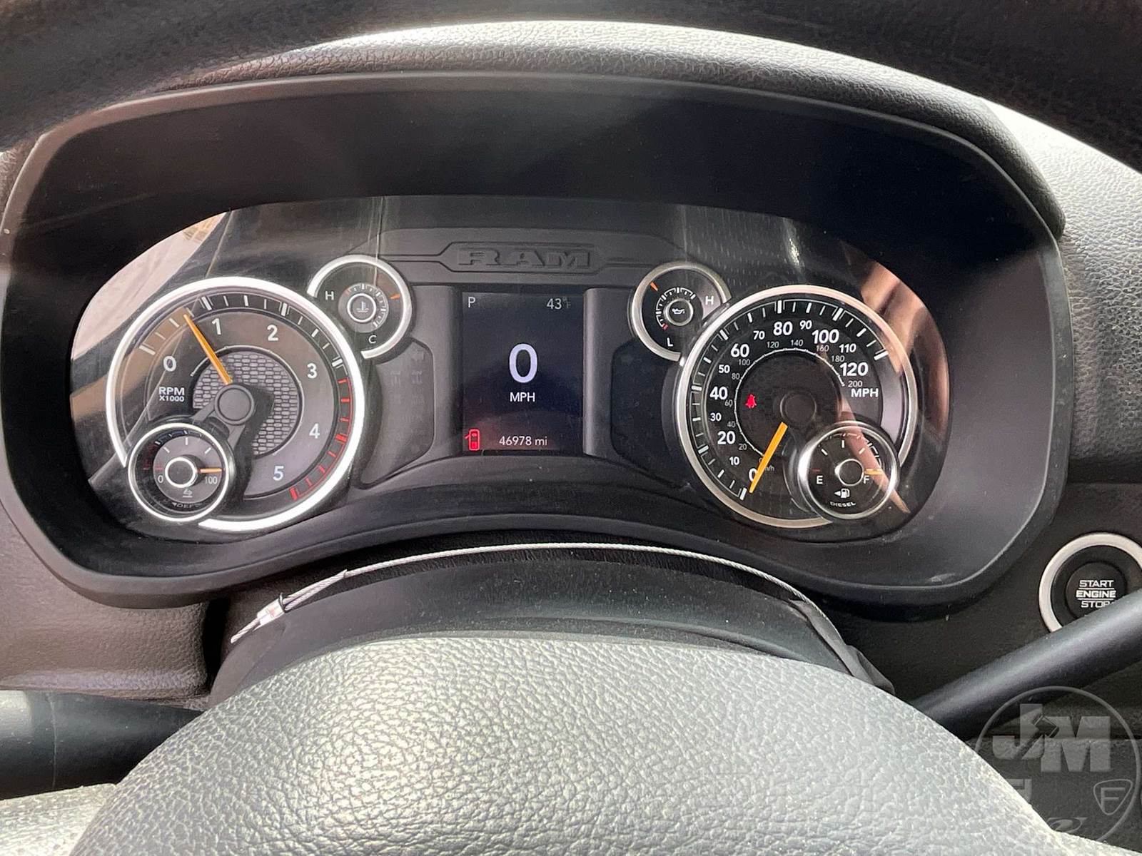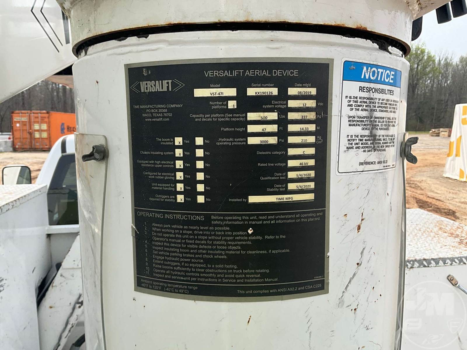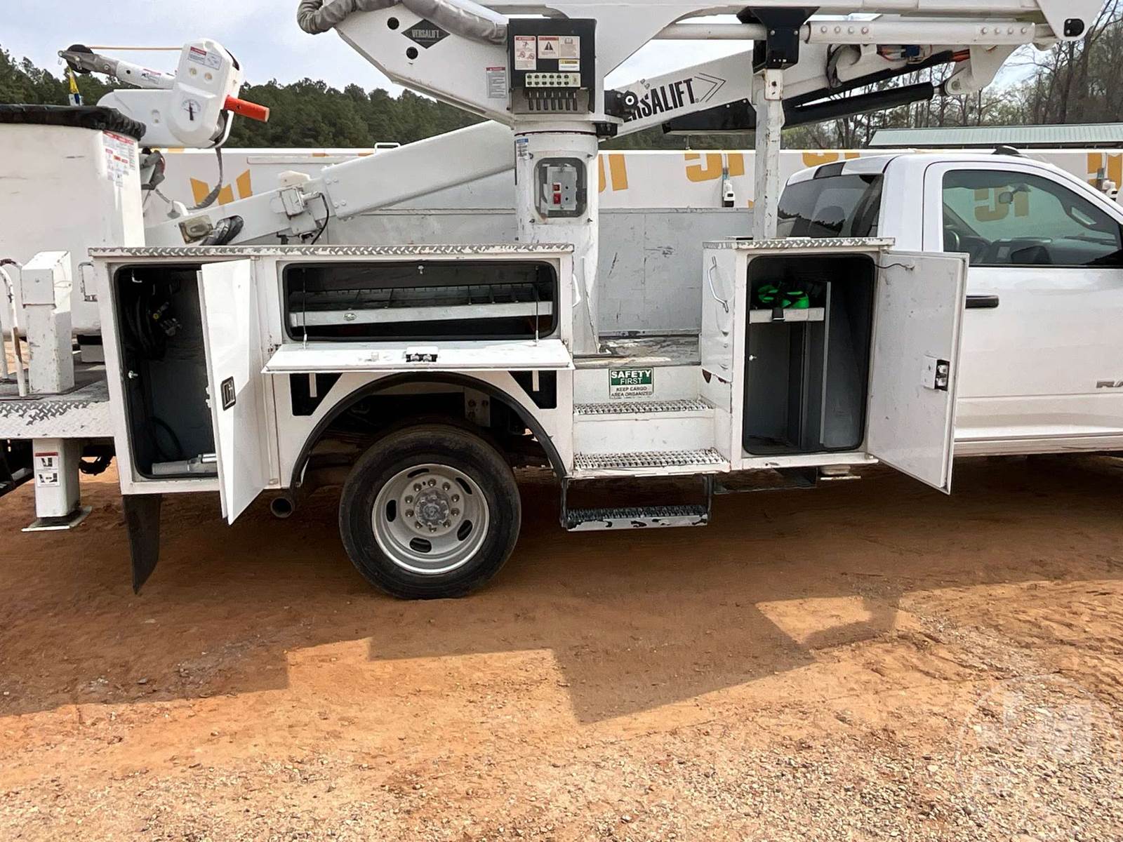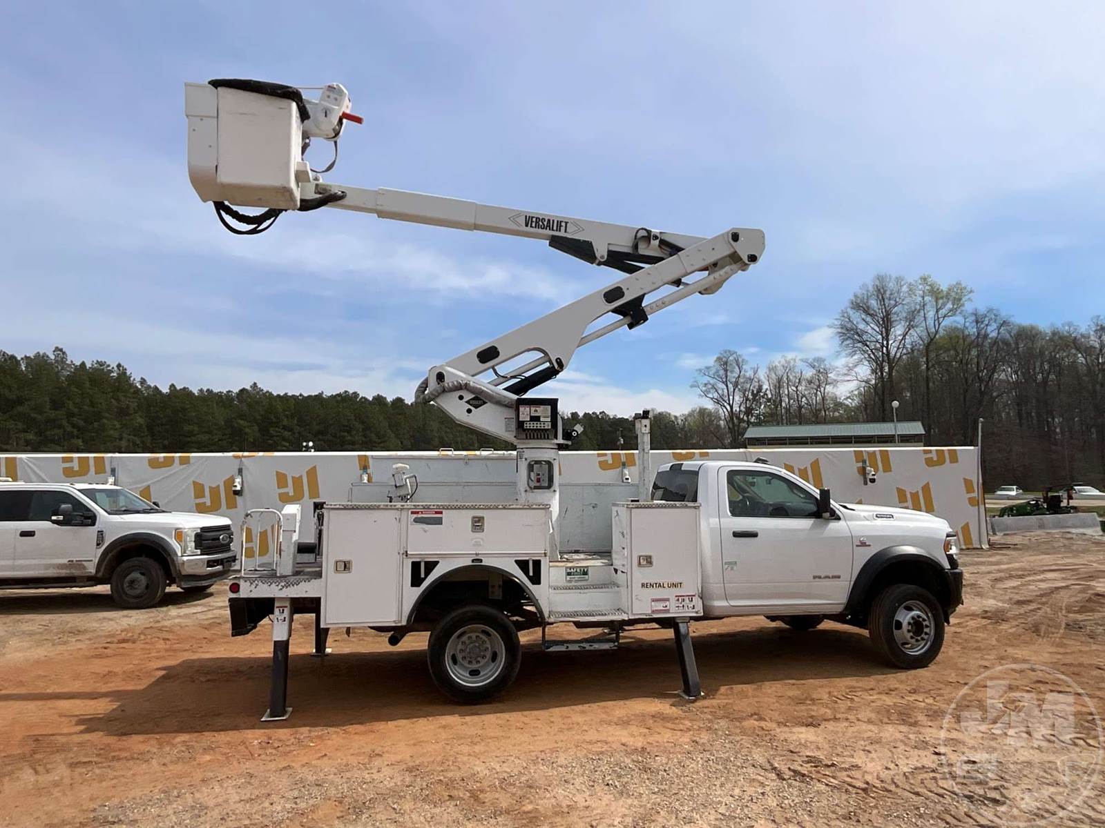 VERSALIFT VST47 BUCKET TRUCK, MID MOUNT BOOM, BOOM SN KX190126, CUMMINS, 6.7 TURBO DIESEL, SINGLE AXLE, AUTOMATIC, 4X4, SPRING SUSPENSION, 168 " WB, WORK HEIGHT 47', UTILITY BODY, SINGLE MAN BUCKET, 4 HYDRAULIC OUTRIGGERS, 19500LBS GVWR, 500LB BUCKET CAPACITY, 1000LB JIB CAPACITY, HOUR METER READS: 5556, ODOMETER READS: 46977, ***MARKED AS AN 'INCOMPLETE VEHICLE.' TITLE STATES IT IS A 2019 RAM PICKUP, EXEMPT MILEAGE***