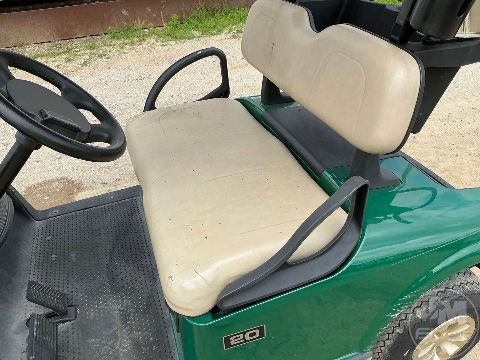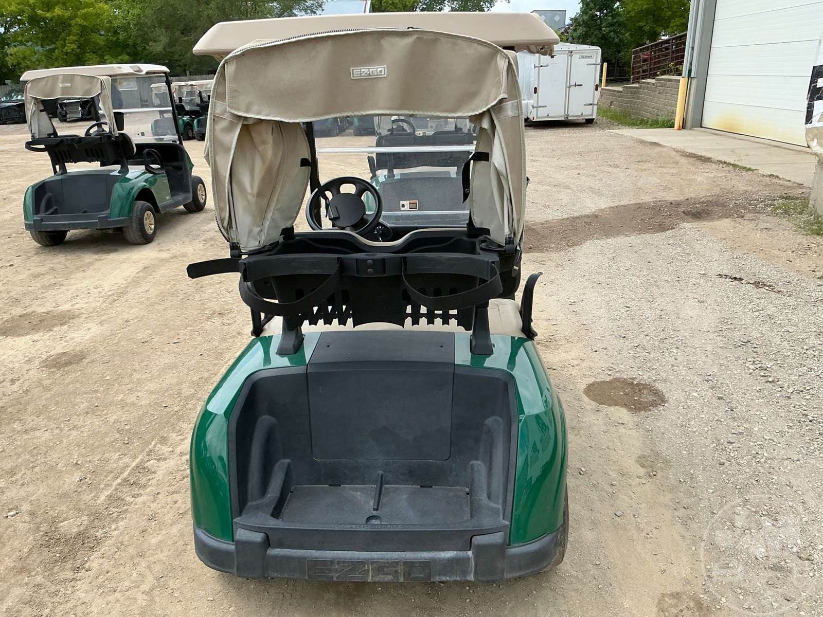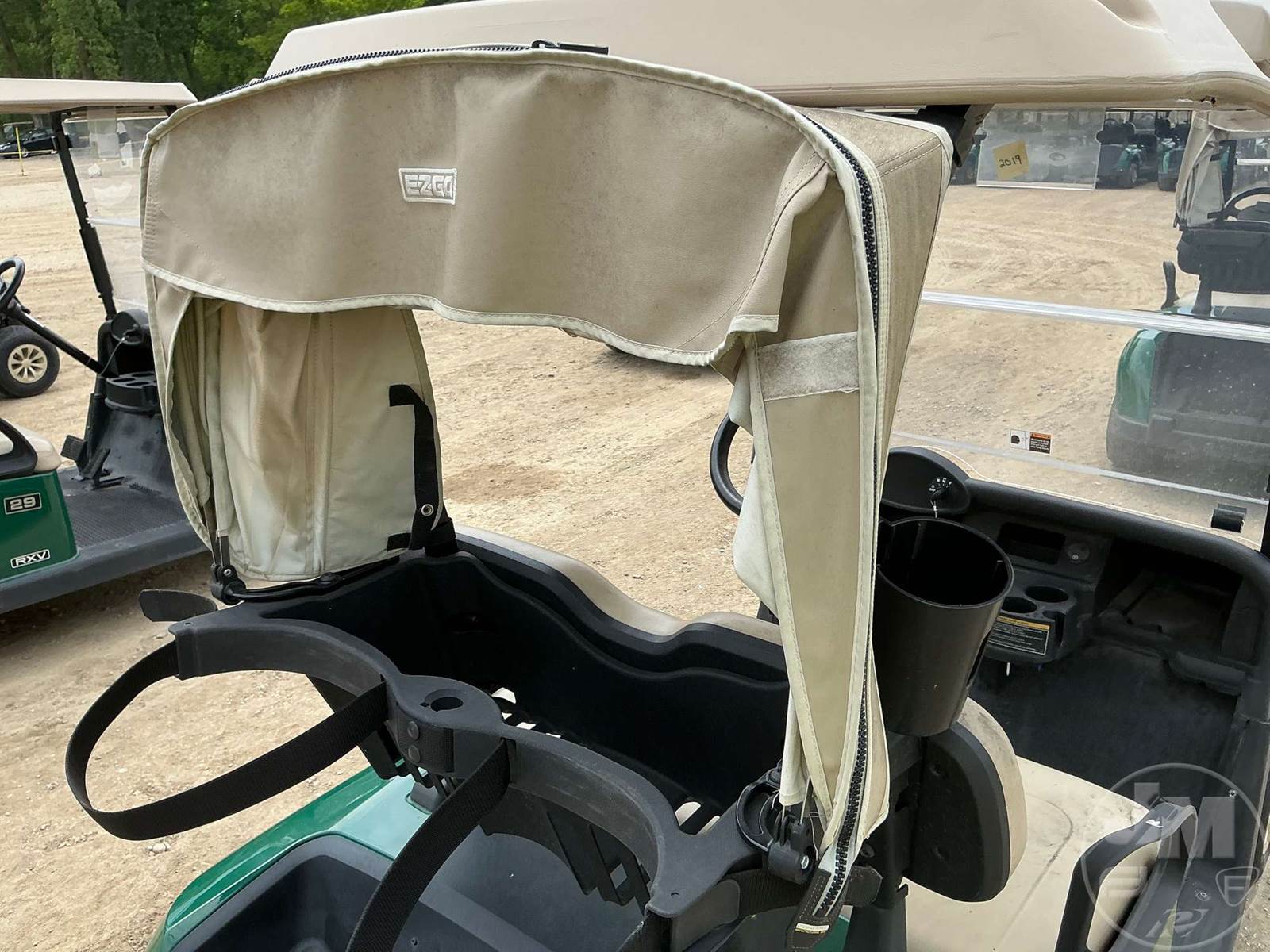 EZ GO GOLF CART, ELECTRIC, GREEN, 2 SEAT, CANOPY, RAIN CURTAIN, WINDSHIELD, PLUG IN CHARGER ****NO TITLE, BILL OF SALE ONLY****