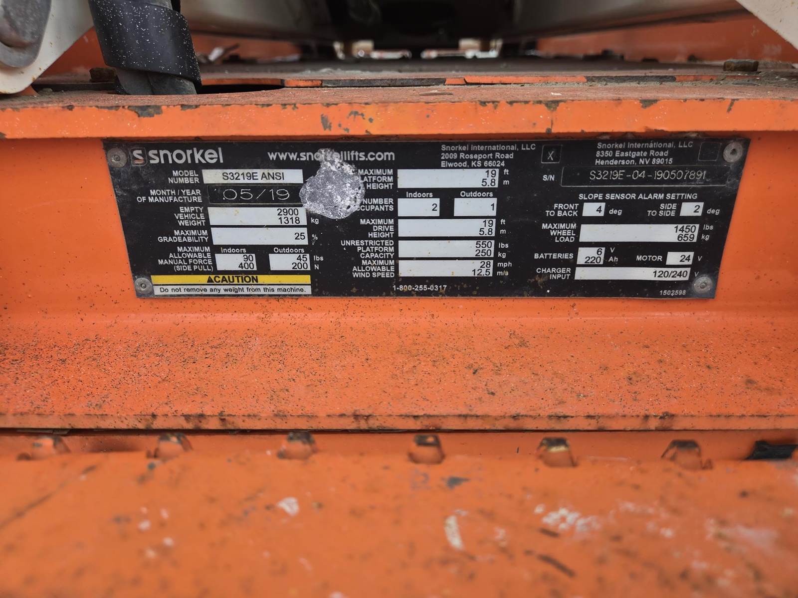 2019 Snorkel S3219E Scissor Lift