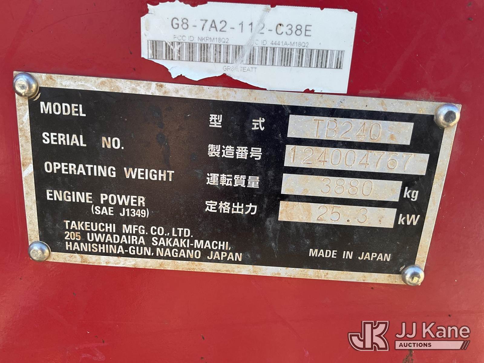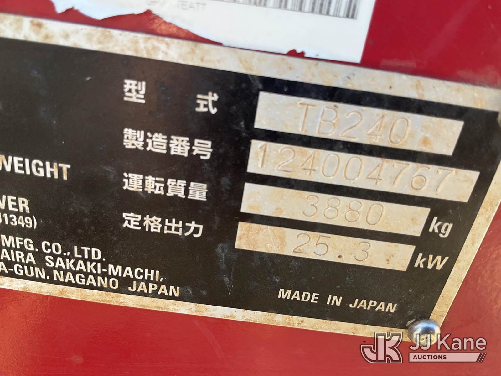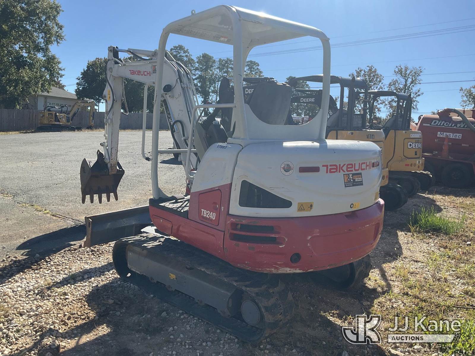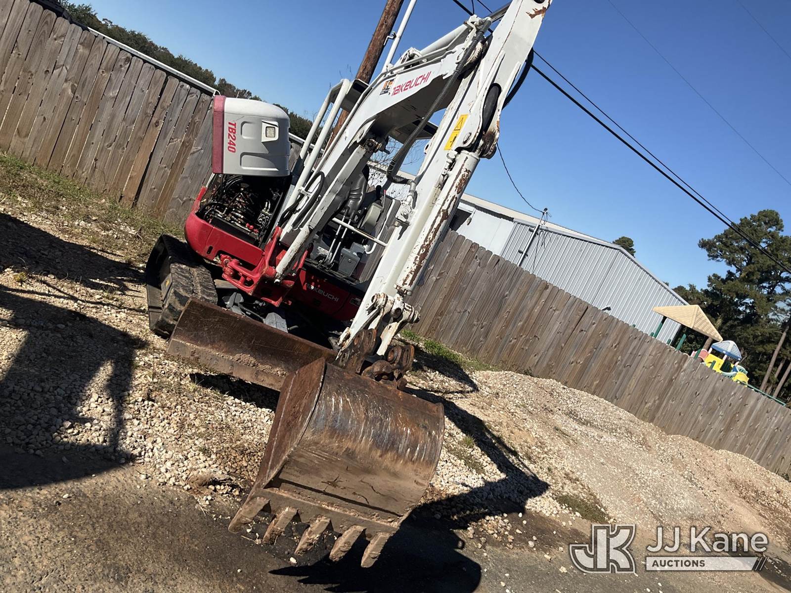 2019 Takeuchi TB240 Mini Hydraulic Excavator, s/n 124004767, Yanmar Hydraulic Drive, diesel, with rubber tracks, backfill blade, aux hyd, & ROPS, (Jump to Start, Runs, Moves, & Operates ) (Reads 1,871 hours) NOTE: This unit is being sold AS IS/WHERE IS via Timed Auction and is located in Haughton, LA. License # LA AB-154 (Buyer is responsible for removal. Assistance by consignor or JJ Kane Auctioneers is not assured.)