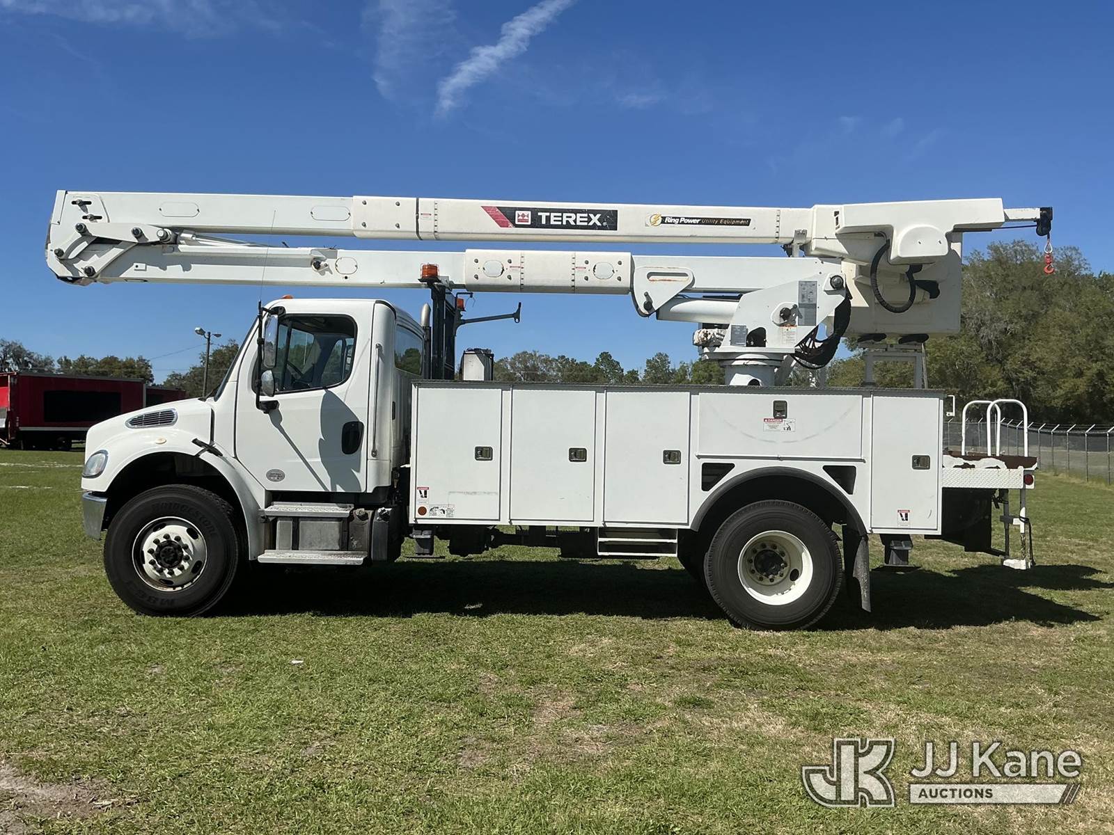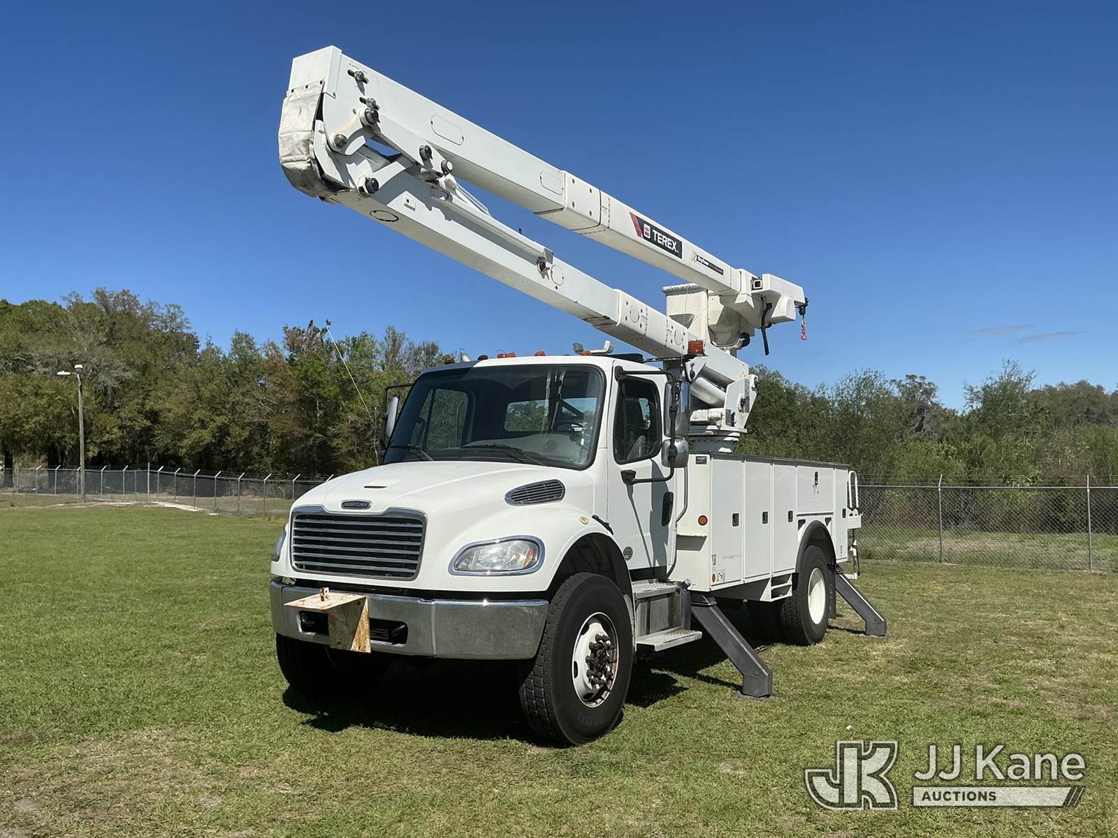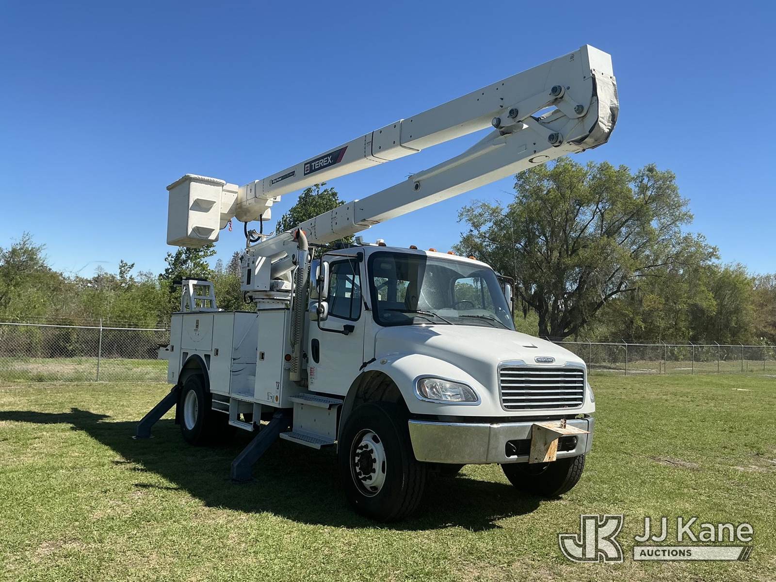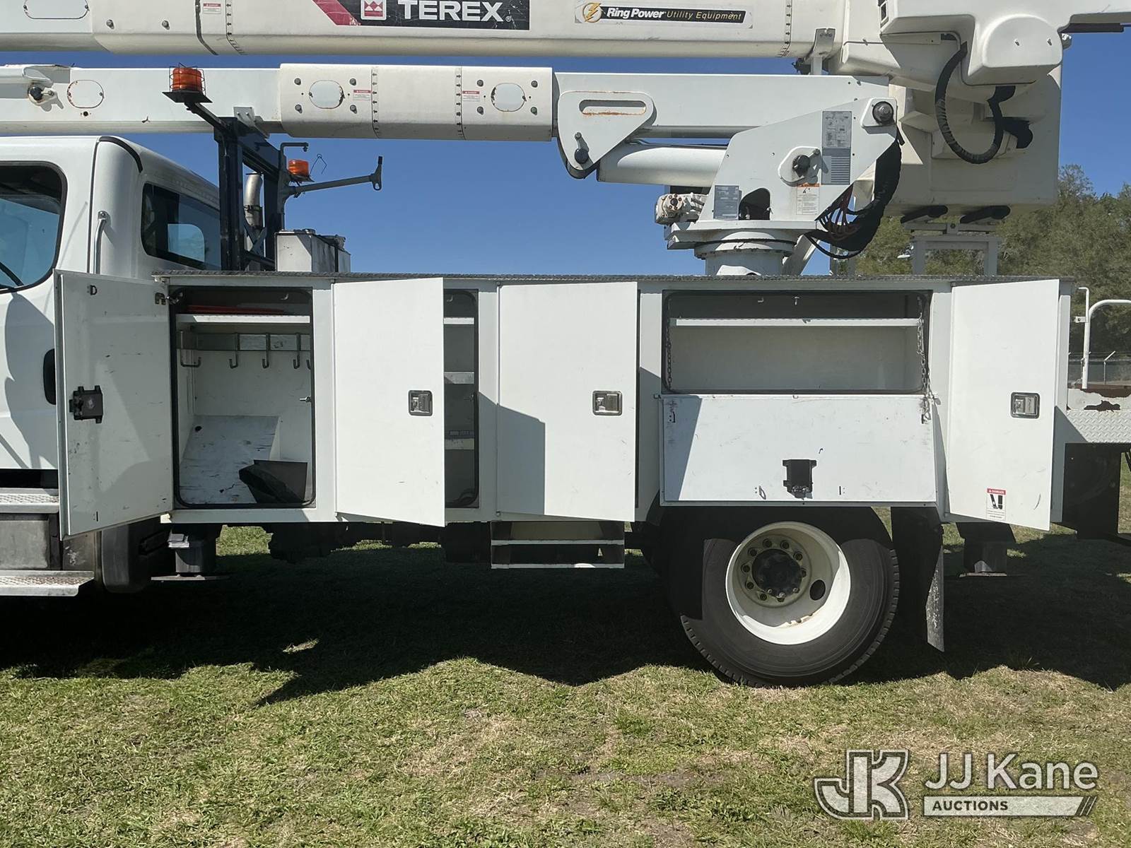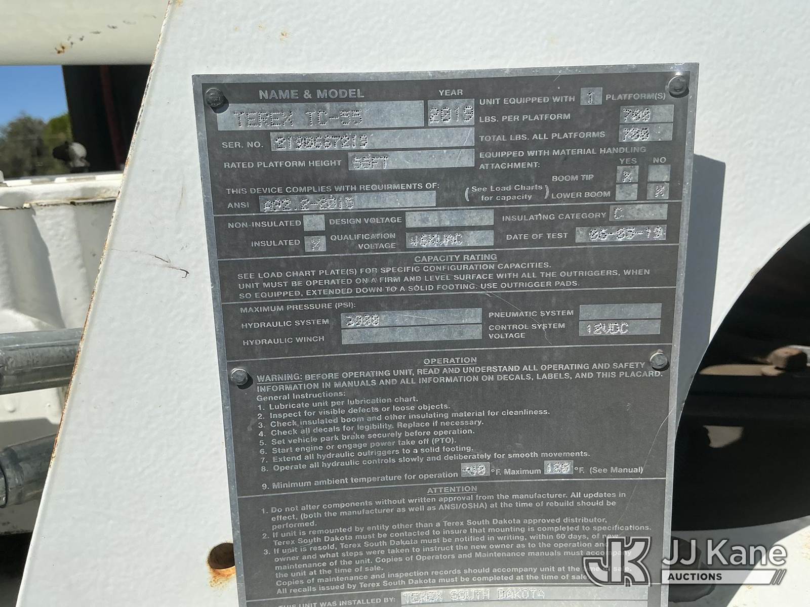 Terex TC55, 60 ft, Material Handling Bucket Truck s/n 2190667219, with two-man bucket & 4 hyd outriggers, rear mounted on 2019 Freightliner M2 106 4x4 Utility Truck, Cummins ISB 6.7L diesel, Auto, A/C, (66,449 miles) (Runs, Moves, Upper Operates) (Check Engine Light On) (Reads 7,202 hours) This is a Titled Item NOTE: This unit is being sold AS IS/WHERE IS via Timed Auction and is located in Thonotosassa, FL. Inspection & preview days for this unit are the 2 business days prior to the first day of items closing for this auction, item is located at 11720 N US 301 Thonotosassa, Fl 33592 and hours of operations are 8a-4p. For pre-sale questions, please contact Office Staff @ (813) 986-2485. (Manuals provided in cab) (Buyer is responsible for removal. Assistance by consignor or JJ Kane Auctions is not assured.)