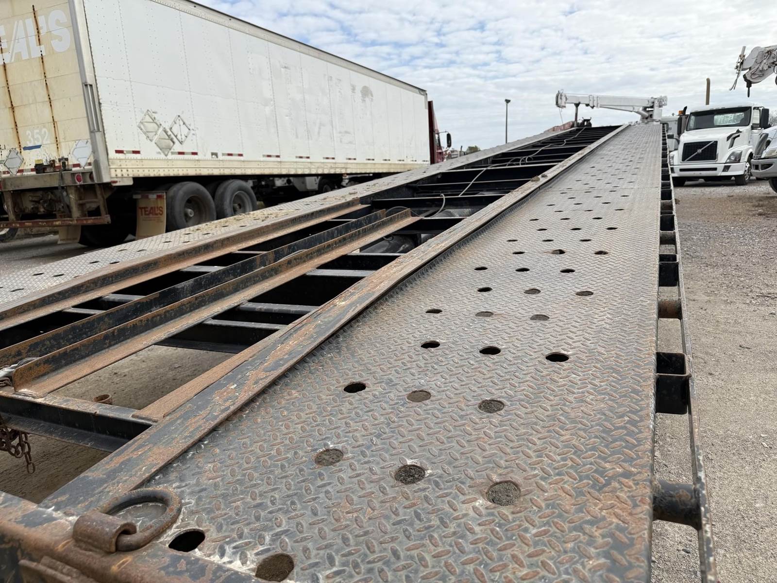 3 X 3500 lbs axles, GOOD TIRES, GOOD TRAILER, ELECTRIC BRAKES, HAS A FEW STRESS CRACKS BUT OVERALL IN GOOD SHAPE! NO RAMPS! *82 INCH FLOOR...