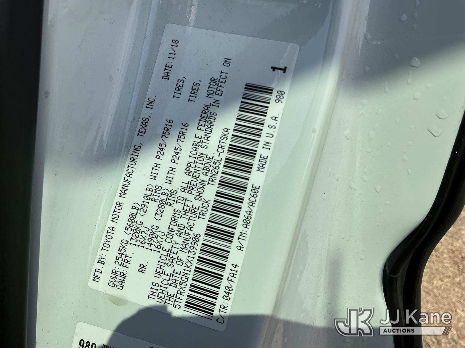 2019 Toyota Tacoma Extended-Cab Pickup Truck, 2.7L L4 DOHC 16V Gas, RWD, Auto, A/C, (136,054 miles) (Runs & Moves)(FL Residents Purchasing Titled Items – tax, title & registration fees will be collected at the maximum rate of $400.00 under 25,999 and $800.00 for Over 26,000 and $250.00 trailers – Proof of insurance is mandatory; Out of State Residents Purchasing Title Items – tax will be collected based upon your state rate.) This is a Titled Item NOTE: This unit is being sold AS IS/WHERE IS via Timed Auction and is located in Thonotosassa, FL. Inspection & preview days for this unit are the 2 business days prior to the first day of items closing for this auction, item is located at 11720 N US 301 Thonotosassa, Fl 33592 and hours of operations are 8a-4p. For pre-sale questions, please contact Office Staff @ (813) 986-2485. (Buyer is responsible for removal. Assistance by consignor or JJ Kane Auctions is not assured.)