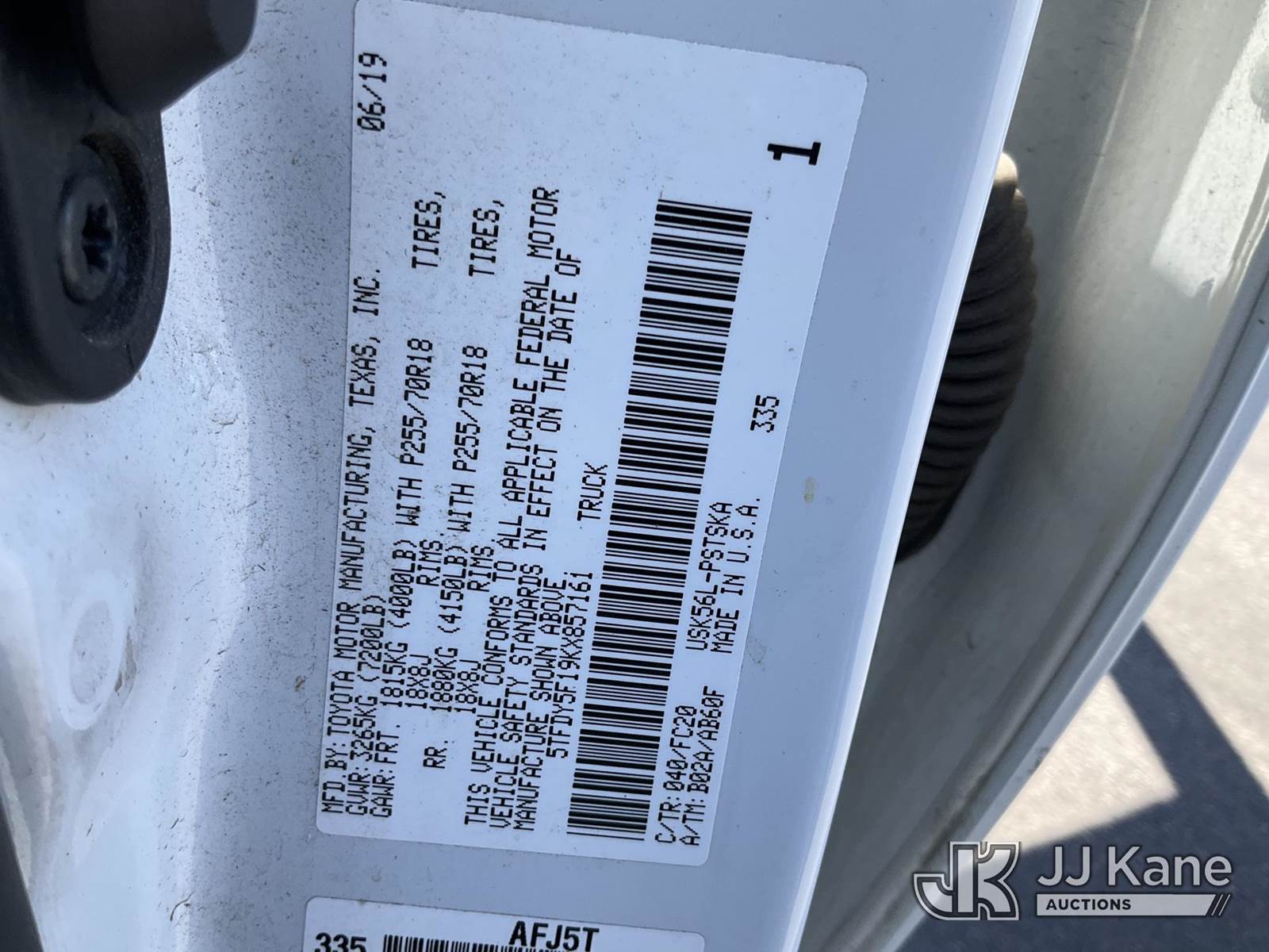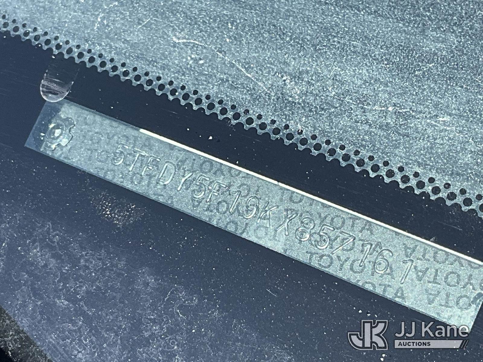 2019 Toyota Tundra 4x4 Crew-Cab Pickup Truck, 8-cyl gas, Auto, A/C, (133,211 miles) (Runs & Moves) This is a Titled Item NOTE: This unit is being sold AS IS/WHERE IS via Timed Auction and is located in Salt Lake City, UT. Inspection & preview days for this unit are the 2 business days prior to the first day of items closing for this auction, item is located at 2353 N Redwood Rd Salt Lake City, UT 84116 and hours of operations are 8a-4p. Titles executed exactly as bidder registered. Ensure your name and/or business name and address in JJ Kane and/or ProxiBid is correct before bidding. For pre-sale questions, please contact Office Staff @ (801) 519-0123. (Buyer is responsible for removal. Assistance by consignor or JJ Kane Auctions is not assured.)