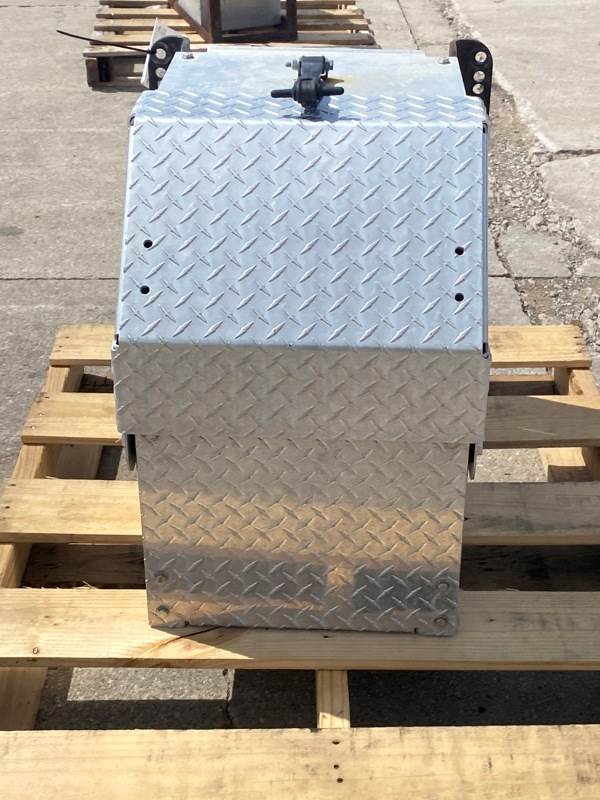 Used 114SD Battery Box, Side: Either, Tray Material: Aluminum, Battery Capacity: 4, Width: 16.00", Height: 24.00", Steps: No, Latch/Strap: Strap