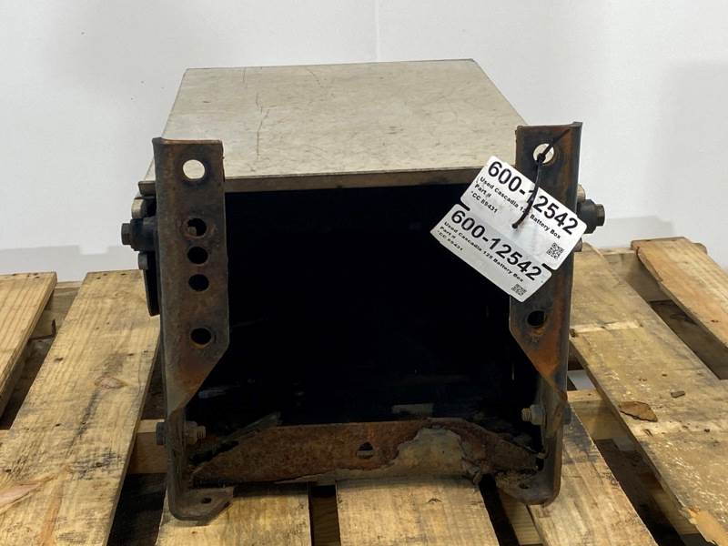 Used Cascadia 125 Battery Box, Side: Driver, Tray Material: Steel, Battery Capacity: 3, Width: 14.00", Height: 11.00", Steps: No, Latch/Strap: Strap