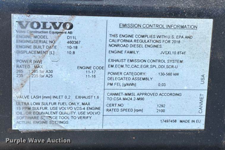 2019 Volvo A30G articulated haul truck