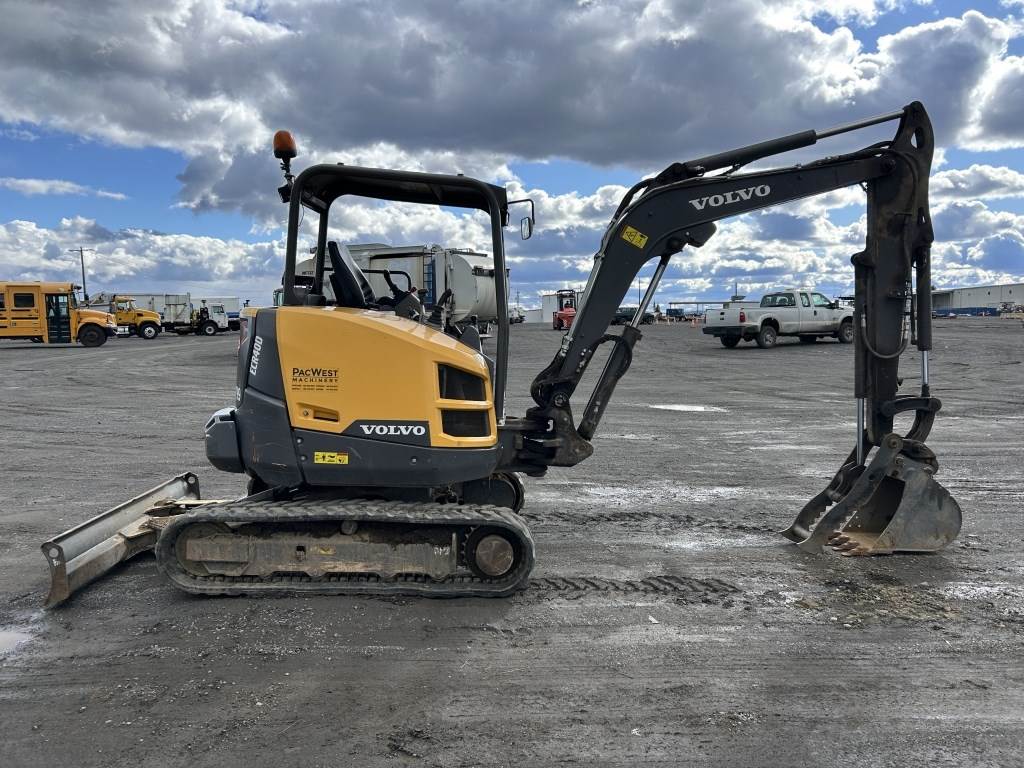 Location: Spokane WA ***End-User Consignment*** S/N: VCECR40DC00015051 Engine: Volvo 1.7L Diesel Transmission: Hydrostatic *Cab does not swivel.* 15" dig bucket, hydraulic thumb, Q/C, angle push blade, OROPS, canopy, 12" rubber tracks. Hours: 3,662