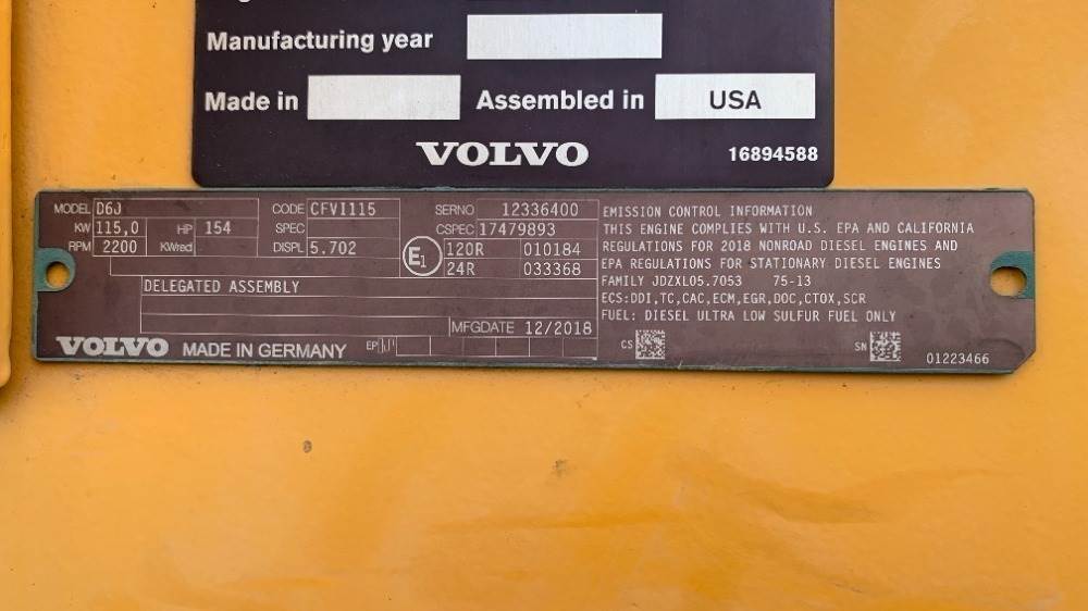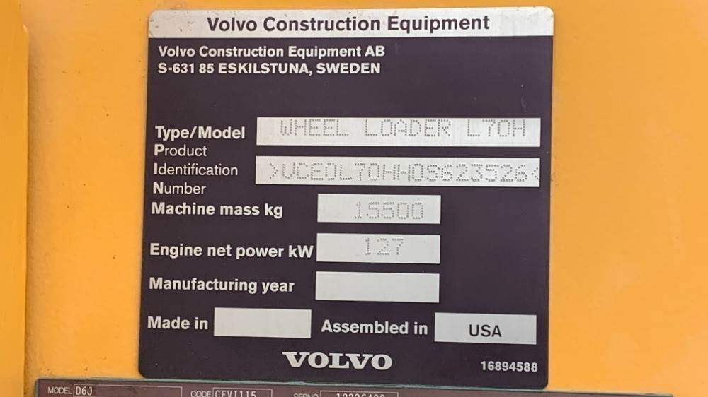 2019 VOLVO L70H WHEEL LOADER, gp bucket, q/c, aux hydraulics, cab w/air & heat, 20.5R25 tires, 2,577 hours indicated. s/n:VCE0L70HH0S623526