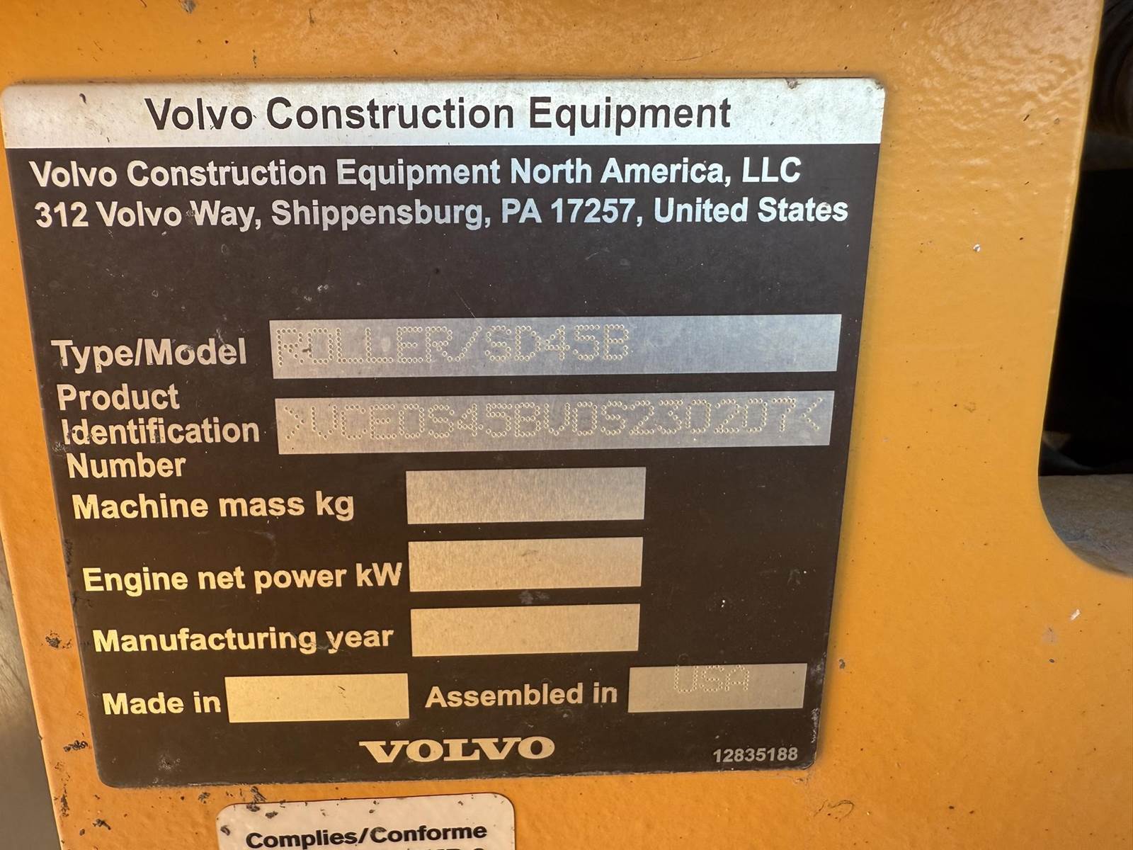 2019 Volvo SD45B Smooth Drum Roller Compactor