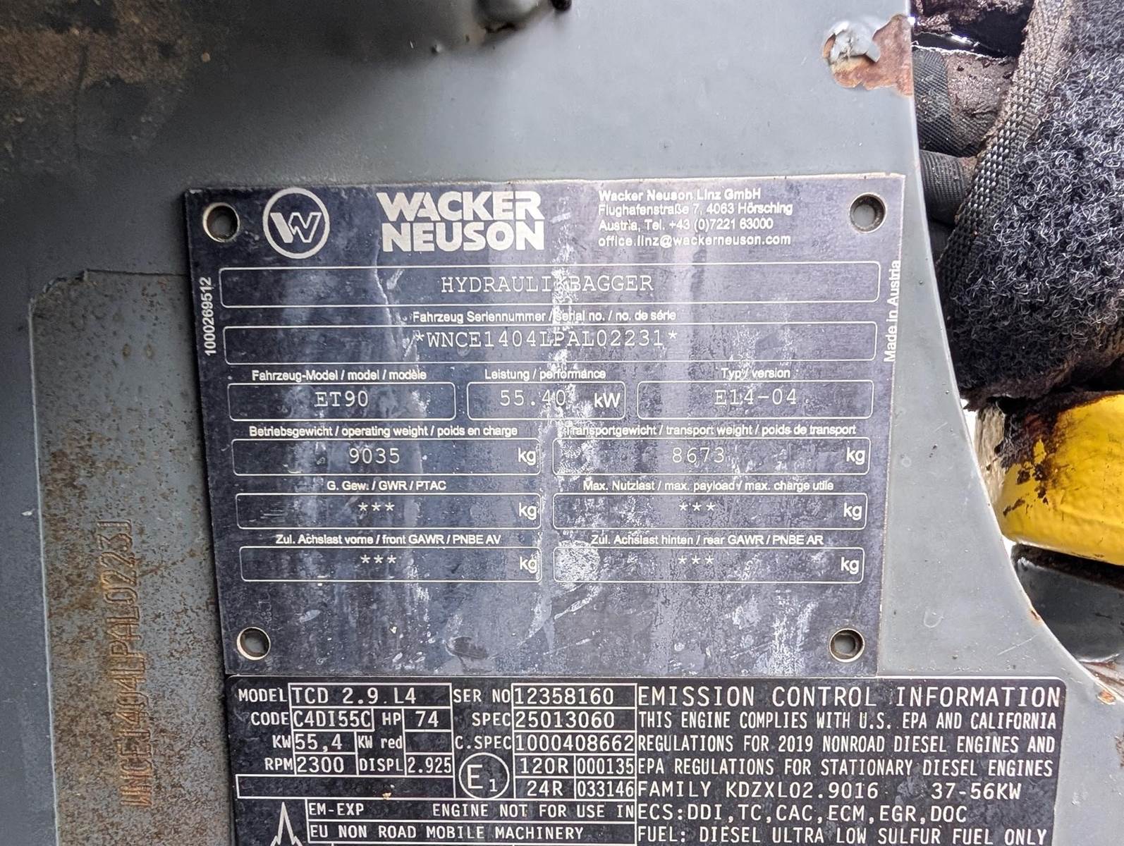 2019 Wacker Neuson ET90 Excavator