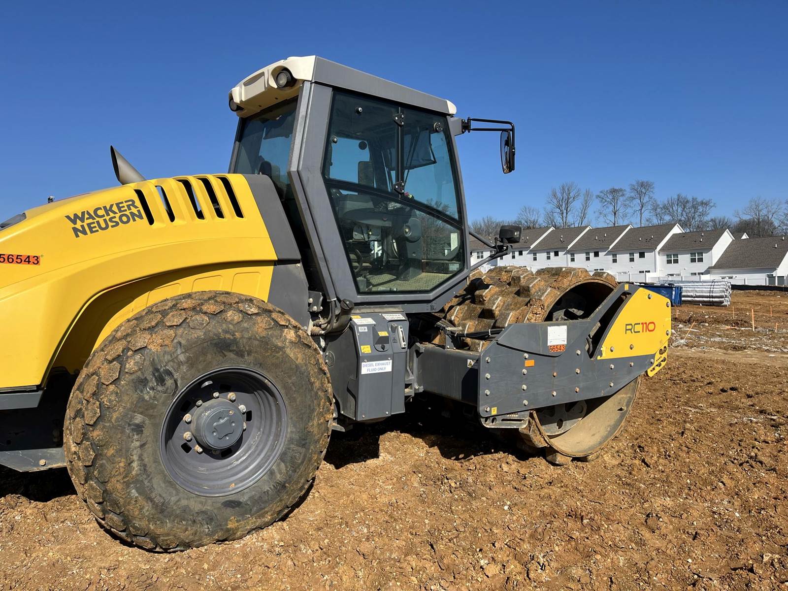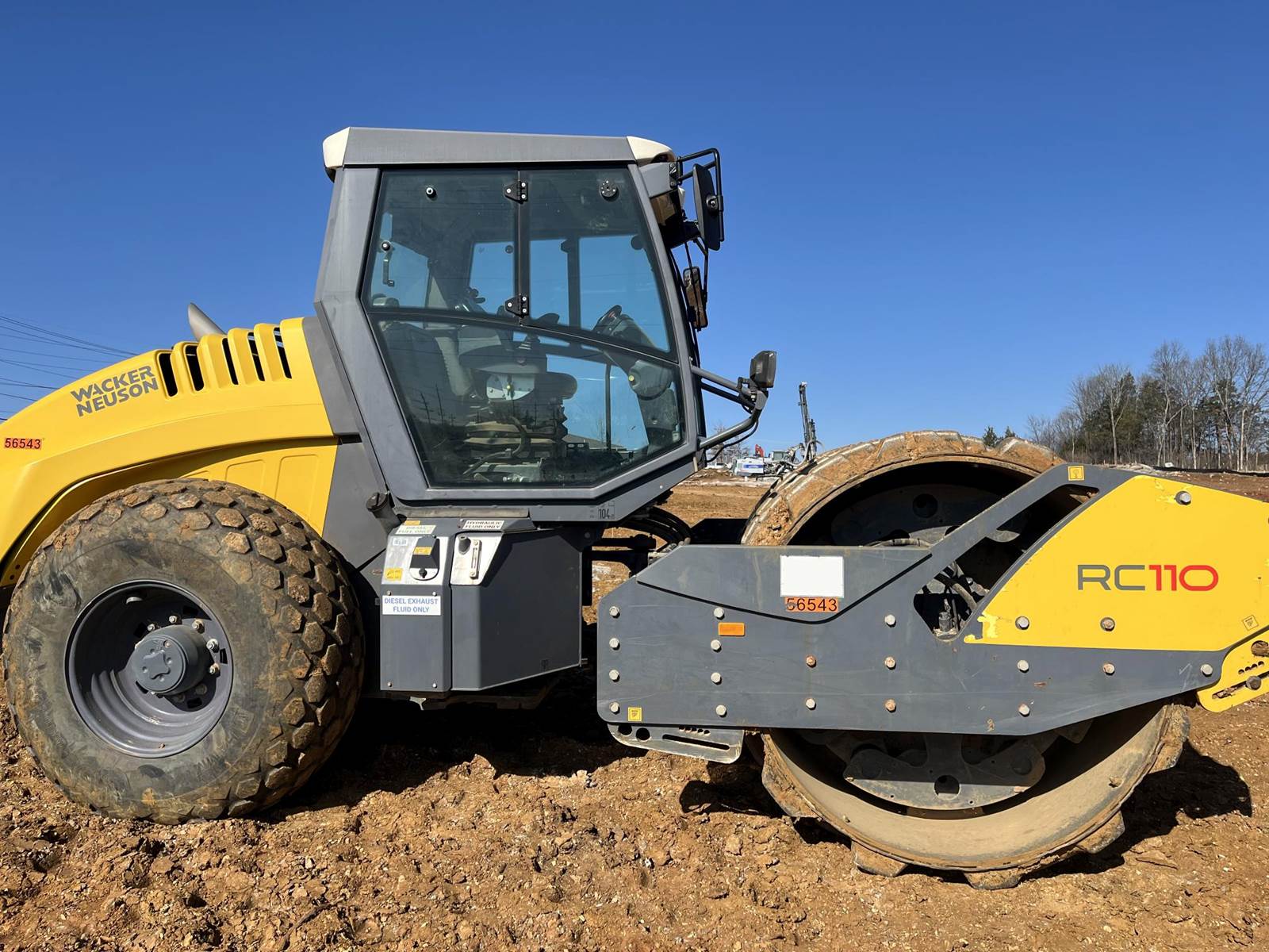 2019 Wacker Neuson RC110P PadFoot single drum soil compactor: 113HP, Weight: 23,435 lbs Dimensions: 230.3 in long x 89.9 in wide x 116.5 in high Drum width: 84.25 in Drum diameter: 59.21 in Travel speed: 8.7 mph Engine: 4-cylinder Deutz TCD 3.6 L4 diesel engine Horsepower: 113.9 hp Fuel tank capacity: 74 US gal AdBlue tank capacity: 8.45 US gal Front axle capacity: 12,987.45 lb Rear axle capacity: 11,002.95 lb Turning radius: 152.4 in Ground clearance: 15.35 in Hydraulic traction control: Automatic slip control to prevent wheel spinning