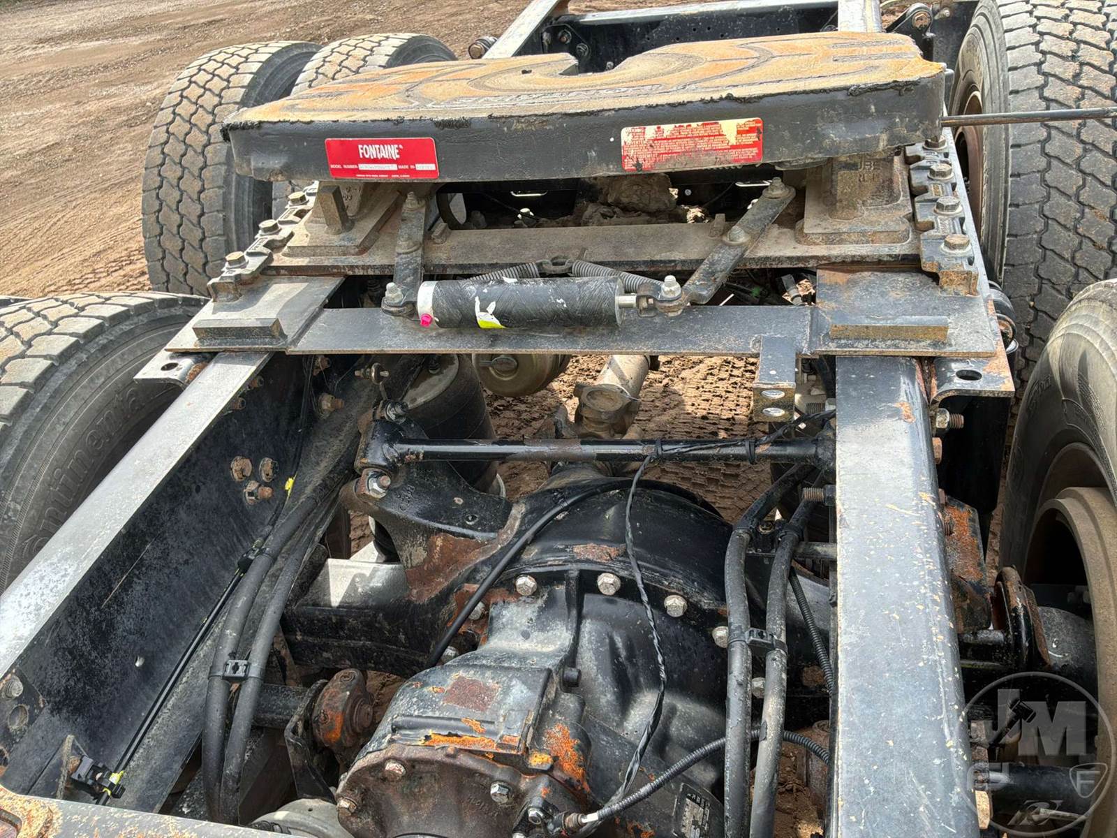 TANDEM AXLE DAY CAB TRUCK TRACTOR, DETROIT, DD13, 450 HP, EATON FULLER, AUTOMATIC, AIR RIDE SUSPENSION, DRUM, 196 " WB, C/A: 114", 12K FRONTS, 40K REARS, 52000 LBS GVWR, AIR SLIDE FIFTH WHEEL, A/C, DUAL AIR SEATS, CRUISE CONTROL, POWER WINDOWS, POWER MIRRORS, ENGINE BRAKE, DIFF LOCK, PTO, AIR RIDE CAB, ALUM DISC WHEELS, 295/75R22.5 TIRES, ODOMETER READS: 516372