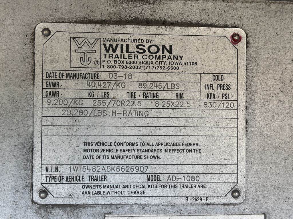 Location Shedd OR ***End-User Consignment*** VIN: 1W15482A5K6626907 11' Upper deck, 37' lower deck, king pin, air brakes, 2 Highway Products storage compartments, 89,245lb GVWR, air bag suspension, 255/70R22.5 tires.