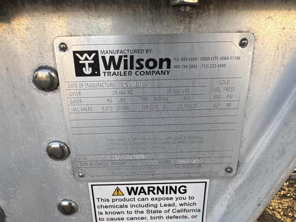2019 WILSON DWH-650 Hopper / Grain Trailer