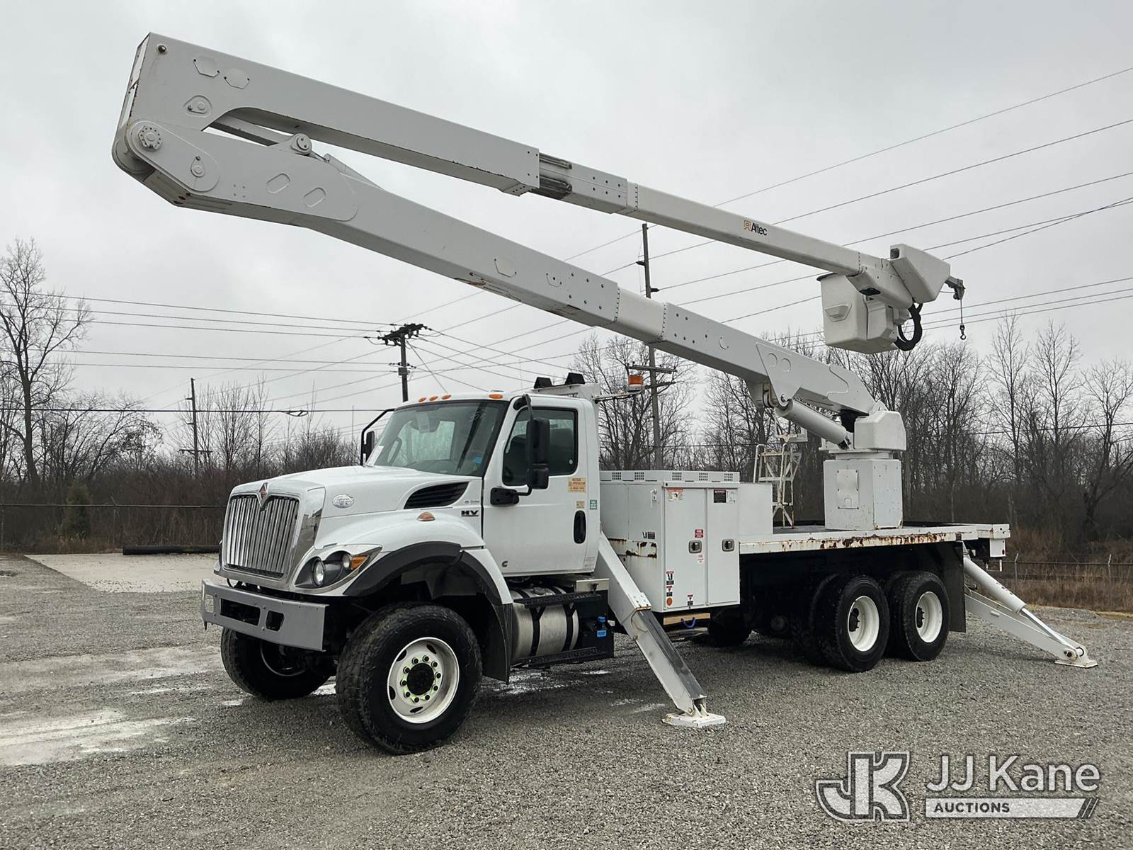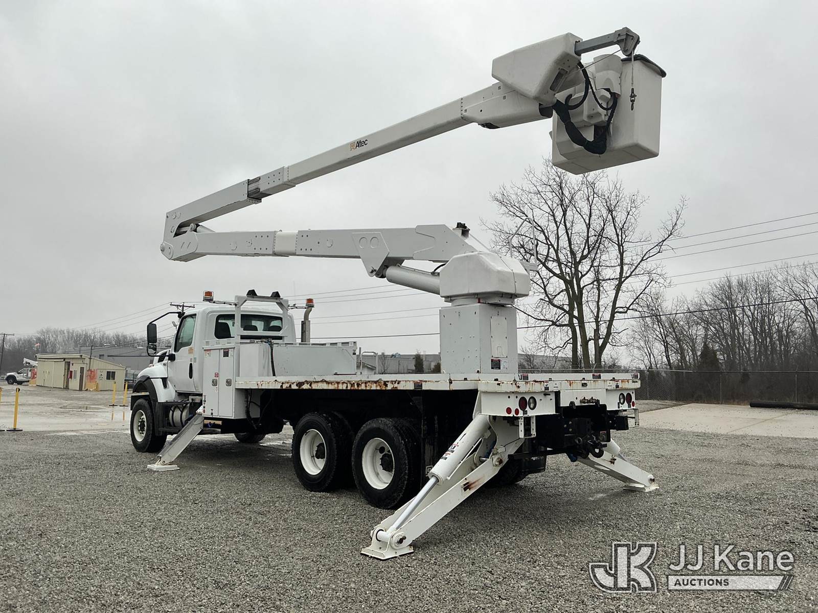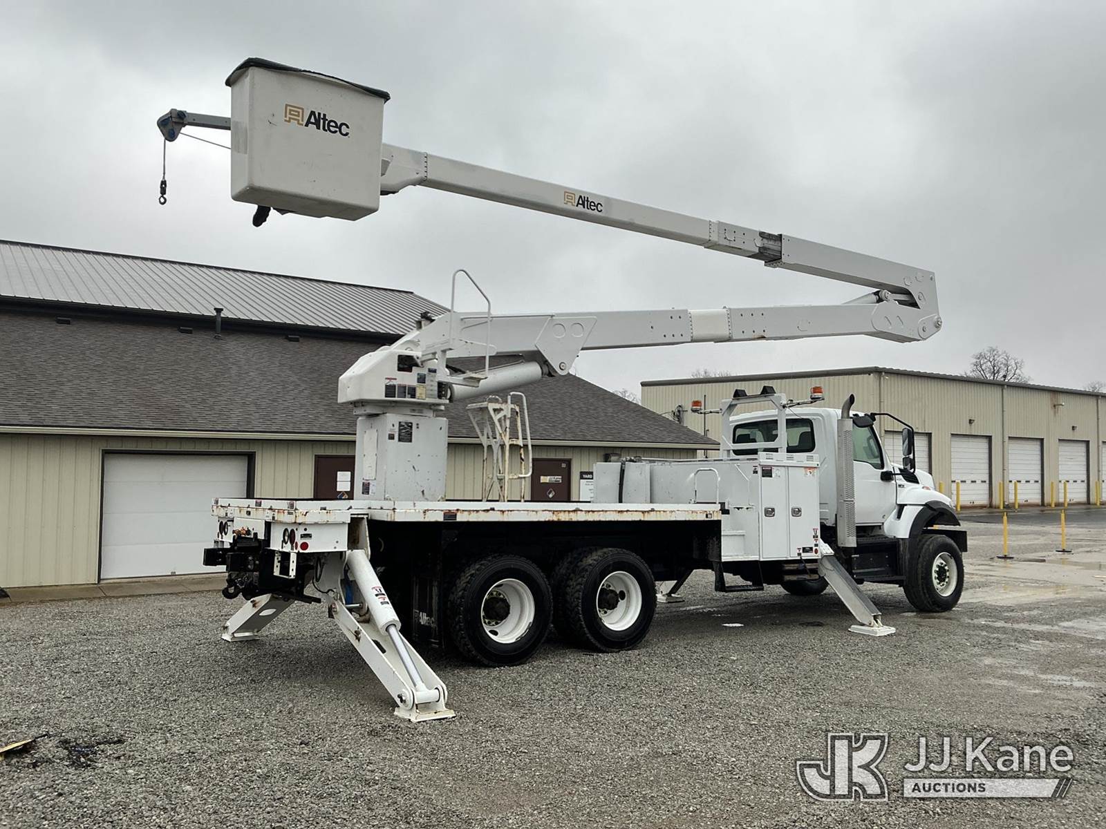 Altec A77-T, 82 ft, Articulating Material Handling Bucket Truck s/n 0119CT2458, with two-man bucket & 4 hyd outriggers, rear mounted on 2020 International HV607 T/A Flatbed/Utility Truck, Cummins L9 diesel, Auto, A/C, (27,605 miles) (Runs, Moves & Upper Operates) (Reads 3,772 hours) This is a Titled Item NOTE: This unit is being sold AS IS/WHERE IS via Timed Auction and is located in Fort Wayne, IN. For more information & removal arrangements please contact Office Staff @ (260) 450-9822. Load out by appointment only, Buyer/Hauler must present copy of paid invoice upon arrival. Purchaser acknowledges ALL lots must be removed within (10) business days of Auction, or a storage fee may be incurred. For load out and pick up information, please reference the hauler sheet sent out after purchase. (Manuals provided in cab) (Buyer is responsible for removal. Assistance by consignor or JJ Kane Auctions is not assured.)