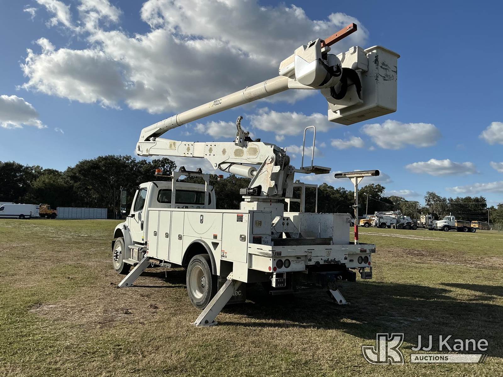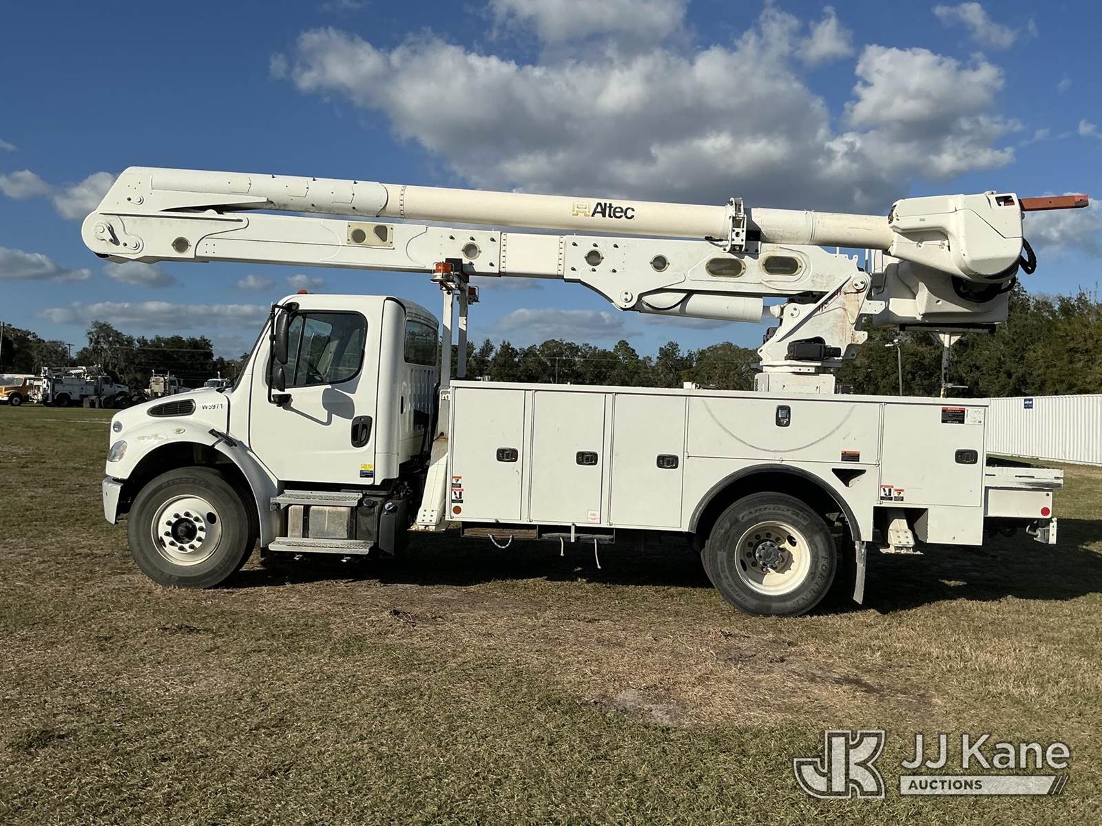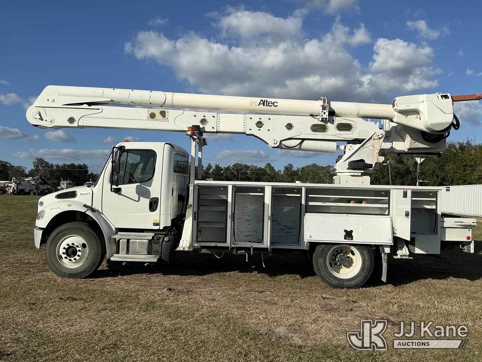 Altec AA55-MH, 60 ft, Material Handling Bucket Truck s/n 0419HL0463, with two-man bucket & 4 hyd outriggers, rear mounted on 2020 Freightliner M2 Utility Truck, Cummins 6.7L diesel, Auto, A/C, (74,023 miles) (Runs, Moves, Operates) (Body Damage) (Reads 5,790 hours) This is a Titled Item NOTE: This unit is being sold AS IS/WHERE IS via Timed Auction and is located in Thonotosassa, FL. Inspection & preview days for this unit are the 2 business days prior to the first day of items closing for this auction, item is located at 11720 N US 301 Thonotosassa, Fl 33592 and hours of operations are 8a-4p. For pre-sale questions, please contact Office Staff @ (813) 986-2485. (Manuals provided in cab) (Buyer is responsible for removal. Assistance by consignor or JJ Kane Auctions is not assured.)