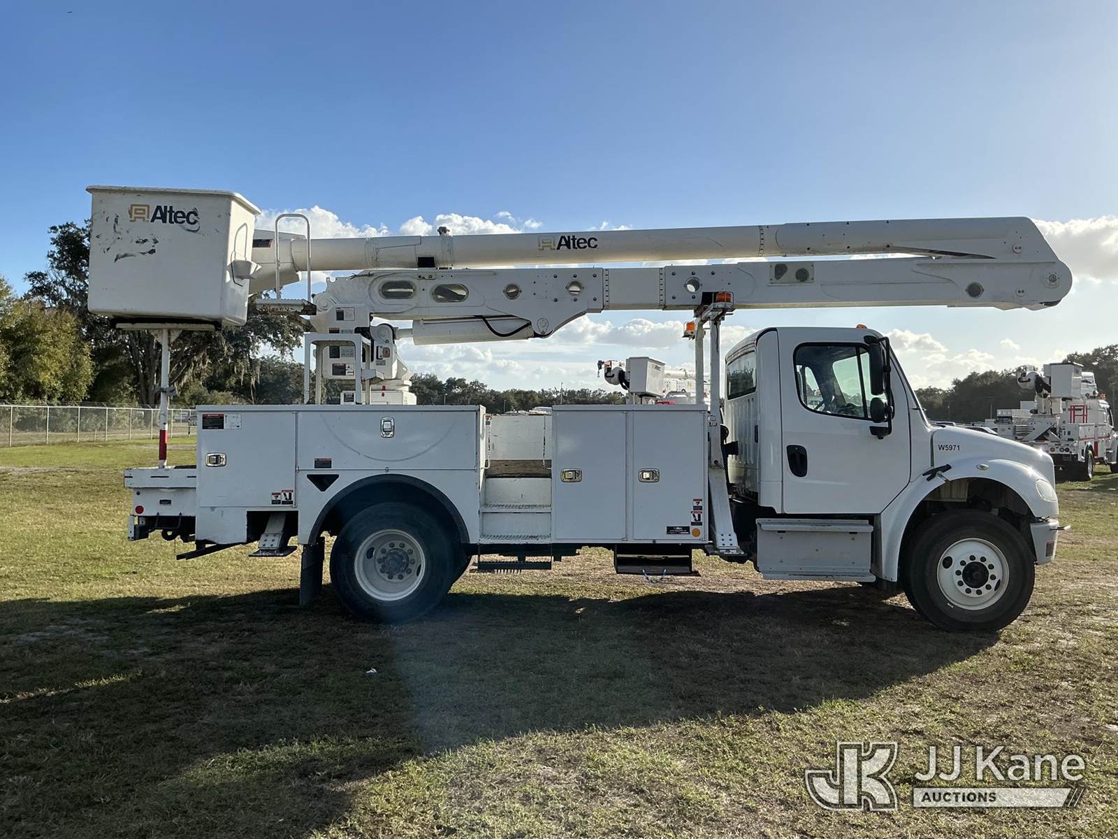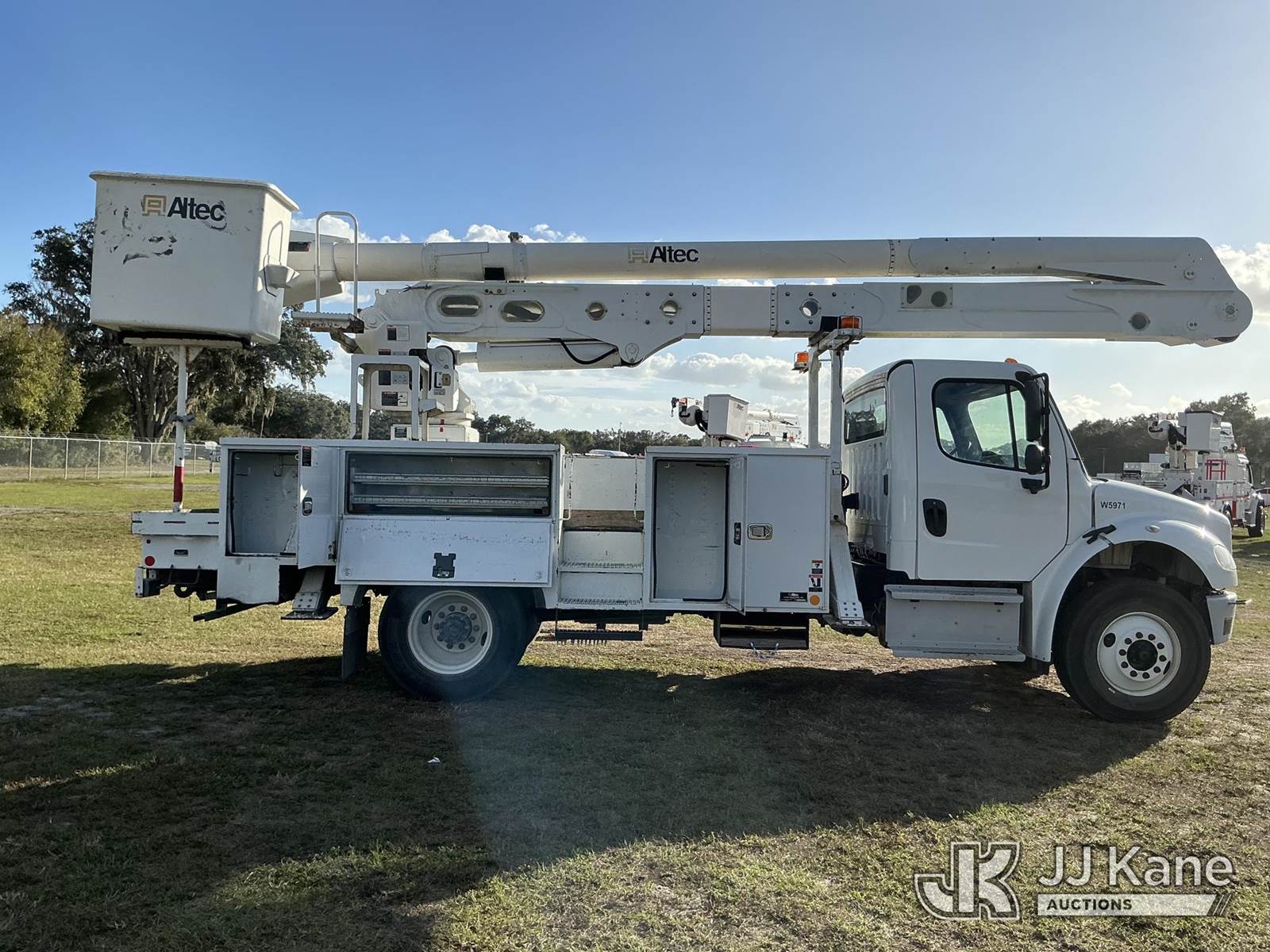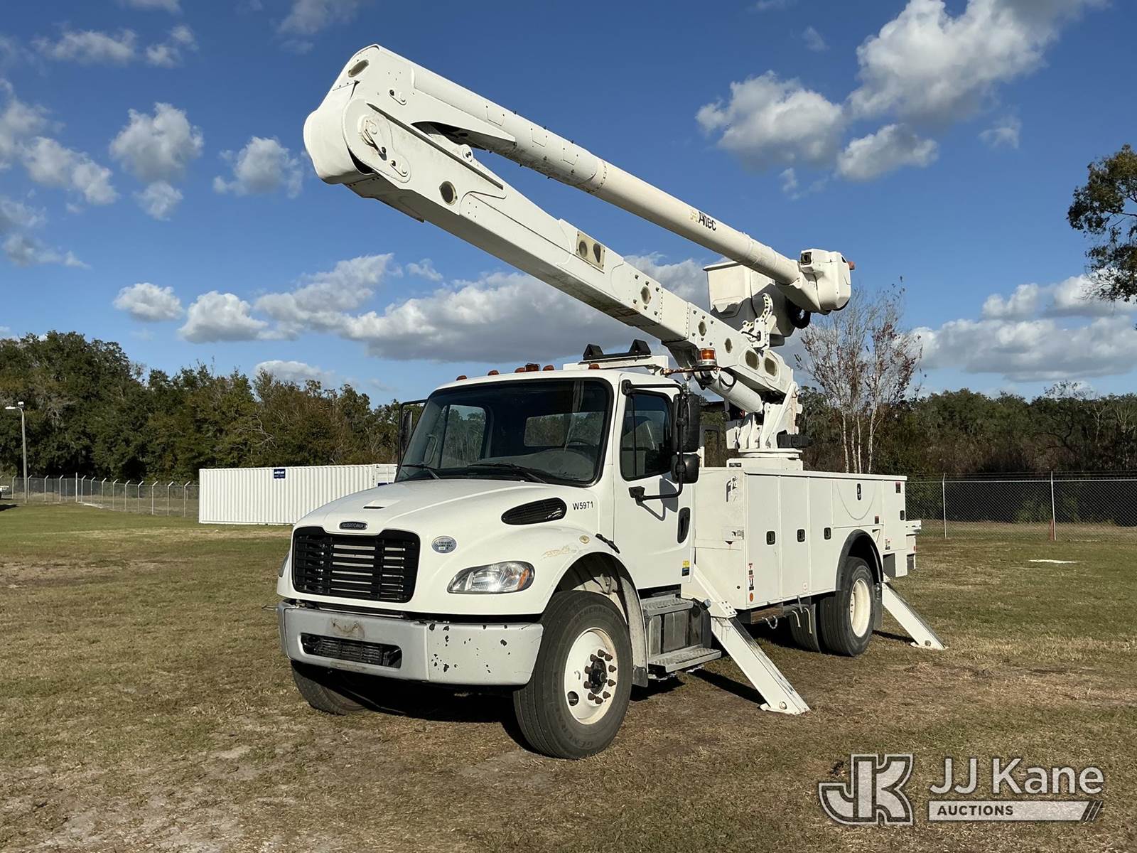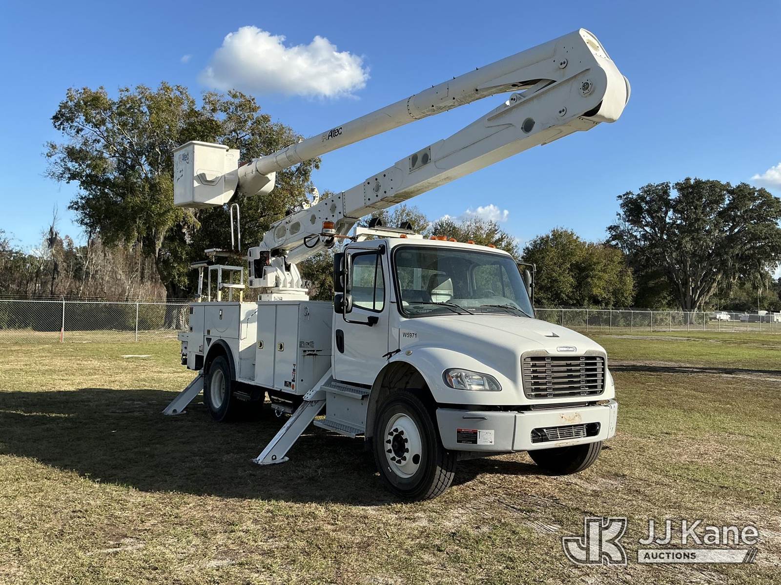 Altec AA55-MH, 60 ft, Material Handling Bucket Truck s/n 0419HL0463, with two-man bucket & 4 hyd outriggers, rear mounted on 2020 Freightliner M2 Utility Truck, Cummins 6.7L diesel, Auto, A/C, (74,023 miles) (Runs, Moves, Operates) (Body Damage) (Reads 5,790 hours) This is a Titled Item NOTE: This unit is being sold AS IS/WHERE IS via Timed Auction and is located in Thonotosassa, FL. Inspection & preview days for this unit are the 2 business days prior to the first day of items closing for this auction, item is located at 11720 N US 301 Thonotosassa, Fl 33592 and hours of operations are 8a-4p. For pre-sale questions, please contact Office Staff @ (813) 986-2485. (Manuals provided in cab) (Buyer is responsible for removal. Assistance by consignor or JJ Kane Auctions is not assured.)