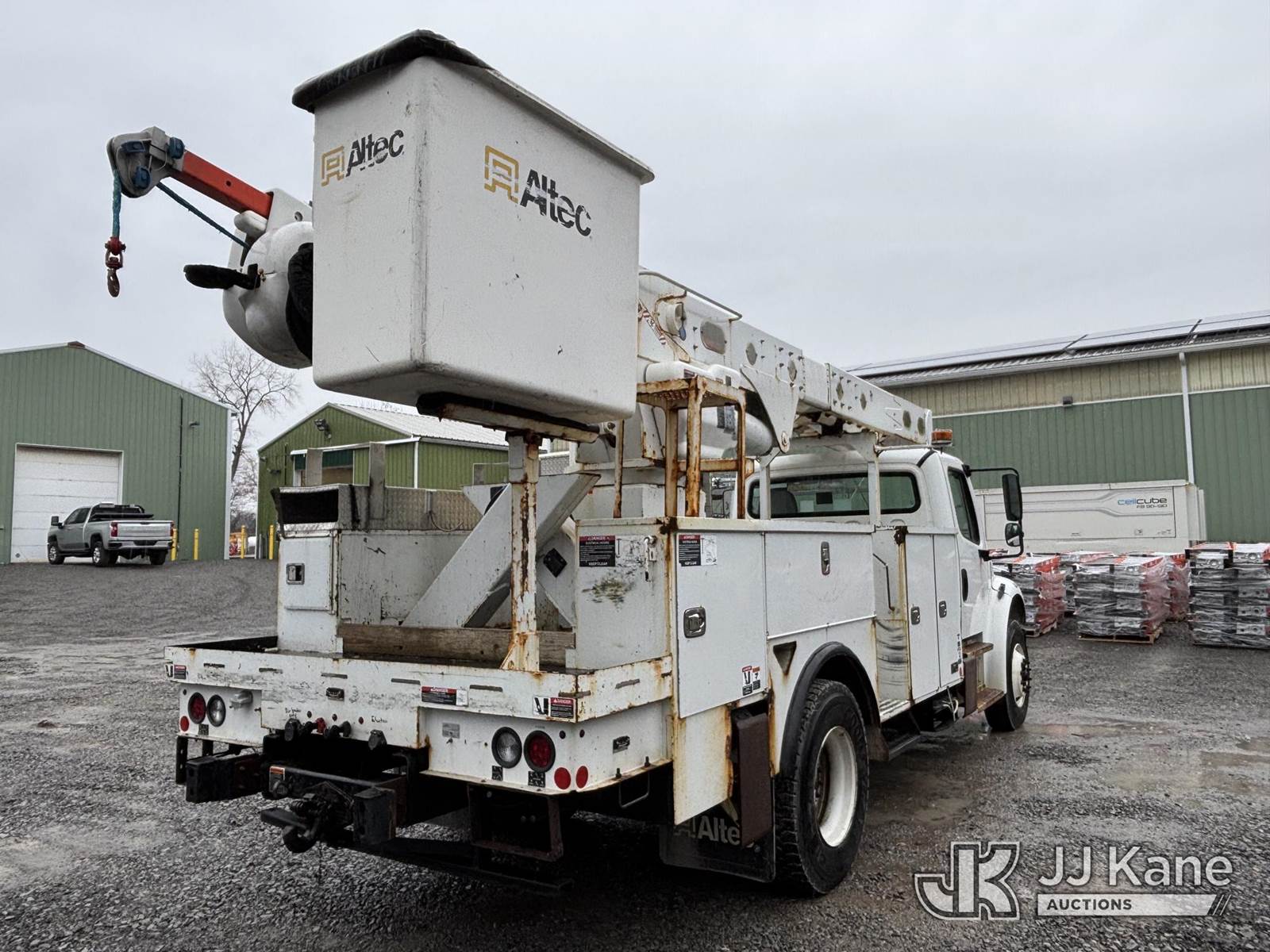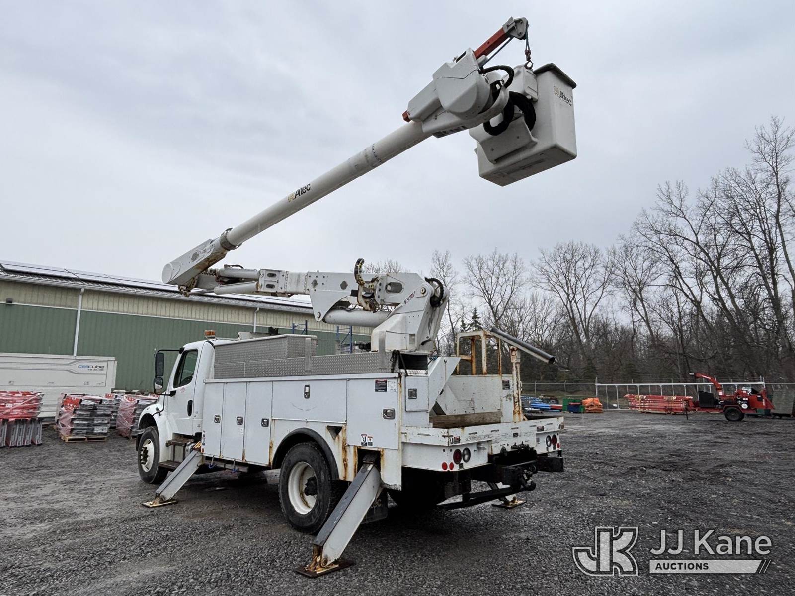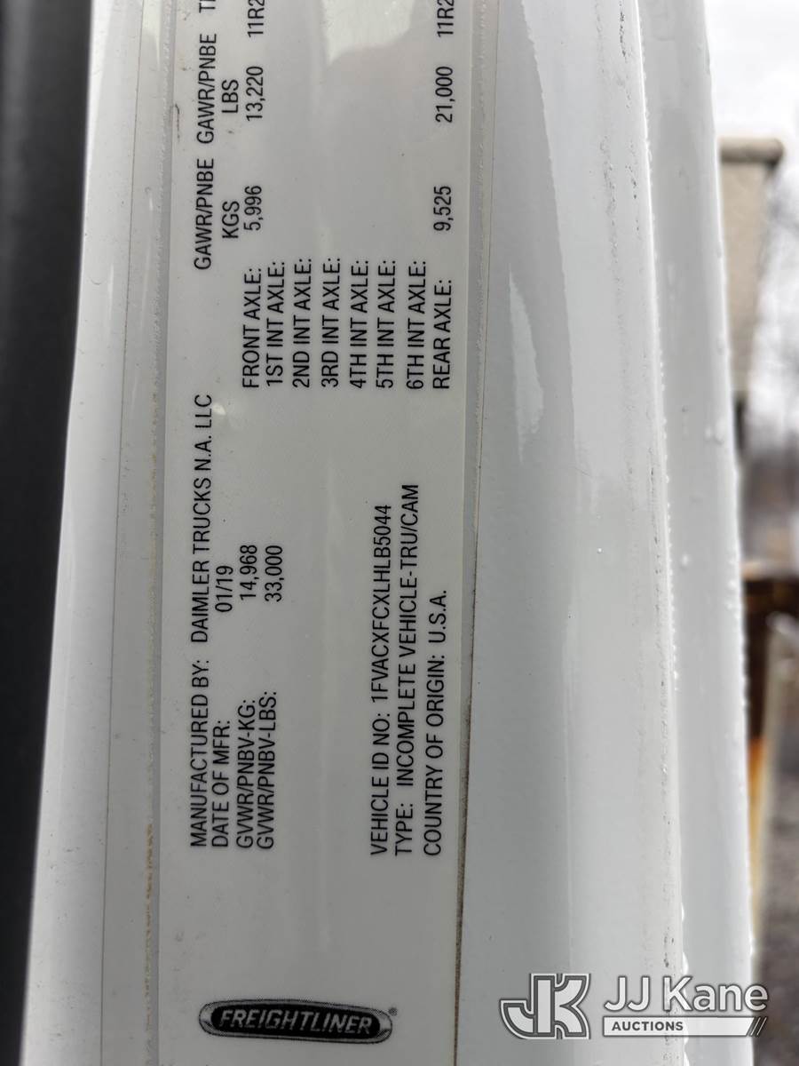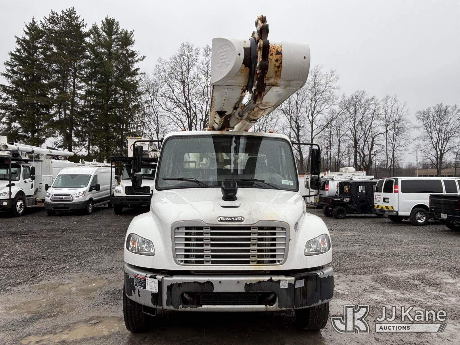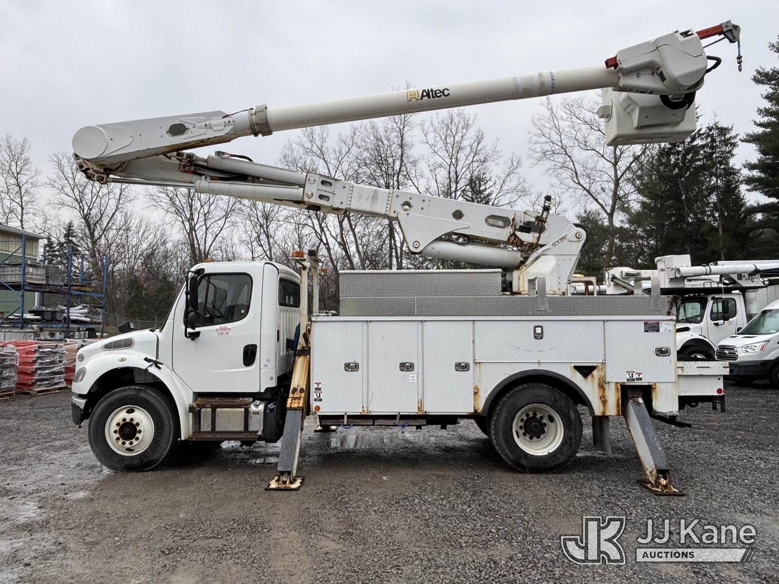 Altec AM55E, 61 ft, Over-Center Material Handling Bucket Truck s/n 0519DM8026, with two-man bucket & 4 hydraulic outriggers, rear mounted on 2020 Freightliner M2 Utility Truck, Cummins 6.7L diesel, Auto, A/C, (74,671 miles) (Runs, Moves & Operates, Check Engine Light On) (Body, Rust & Paint Damage) This is a Titled Item NOTE: This unit is being sold AS IS/WHERE IS via Timed Auction and is located in Victor, NY. For pre-sale questions, please contact Adel Cekic at adel.cekic@jjkane.com. Inspection by appointment only. Removal of items will begin the day following the sale and continue Monday through Friday, 8:00 am to 4:00 pm. Purchaser acknowledges ALL lots must be removed within (7) business days or a storage fee may be incurred. There will be no payments accepted onsite. Buyer/Hauler must present a copy of the (Paid in Full) Invoice or Release Form upon arrival. Please refer to the Pick Up Terms listed on the Release Form sent out after purchase. (Missing manuals, See Auction Company for Manufacturers Information to obtain manuals) (Buyer is responsible for removal. Assistance by consignor or JJ Kane Auctions is not assured.)