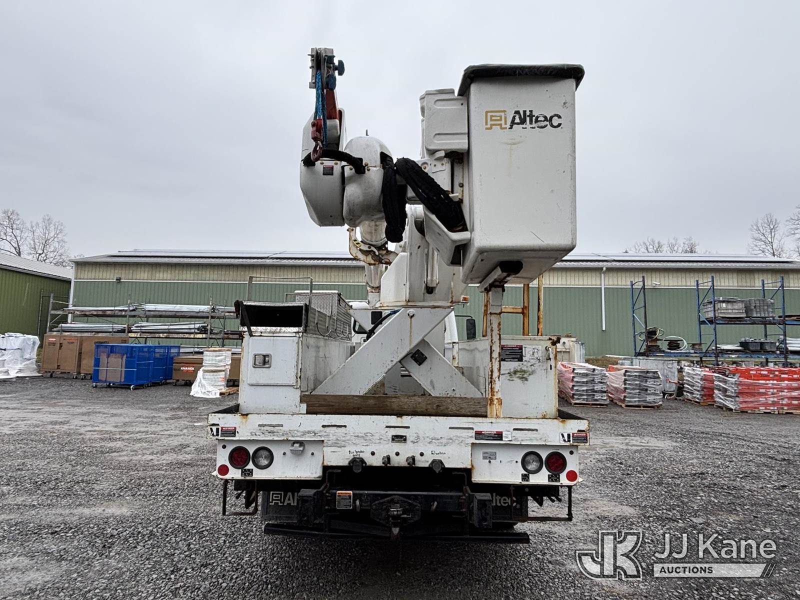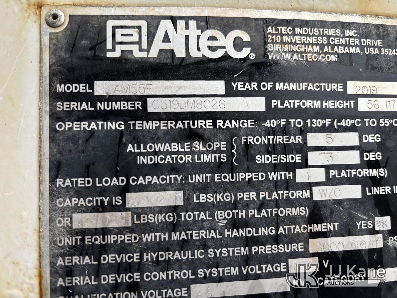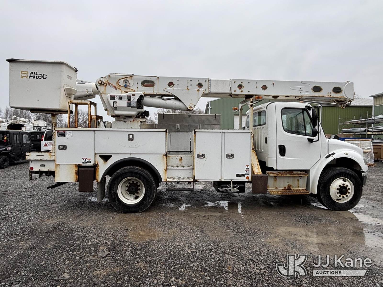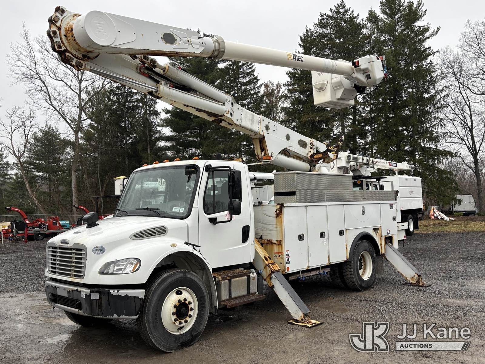 Altec AM55E, 61 ft, Over-Center Material Handling Bucket Truck s/n 0519DM8026, with two-man bucket & 4 hydraulic outriggers, rear mounted on 2020 Freightliner M2 Utility Truck, Cummins 6.7L diesel, Auto, A/C, (74,671 miles) (Runs, Moves & Operates, Check Engine Light On) (Body, Rust & Paint Damage) This is a Titled Item NOTE: This unit is being sold AS IS/WHERE IS via Timed Auction and is located in Victor, NY. For pre-sale questions, please contact Adel Cekic at adel.cekic@jjkane.com. Inspection by appointment only. Removal of items will begin the day following the sale and continue Monday through Friday, 8:00 am to 4:00 pm. Purchaser acknowledges ALL lots must be removed within (7) business days or a storage fee may be incurred. There will be no payments accepted onsite. Buyer/Hauler must present a copy of the (Paid in Full) Invoice or Release Form upon arrival. Please refer to the Pick Up Terms listed on the Release Form sent out after purchase. (Missing manuals, See Auction Company for Manufacturers Information to obtain manuals) (Buyer is responsible for removal. Assistance by consignor or JJ Kane Auctions is not assured.)