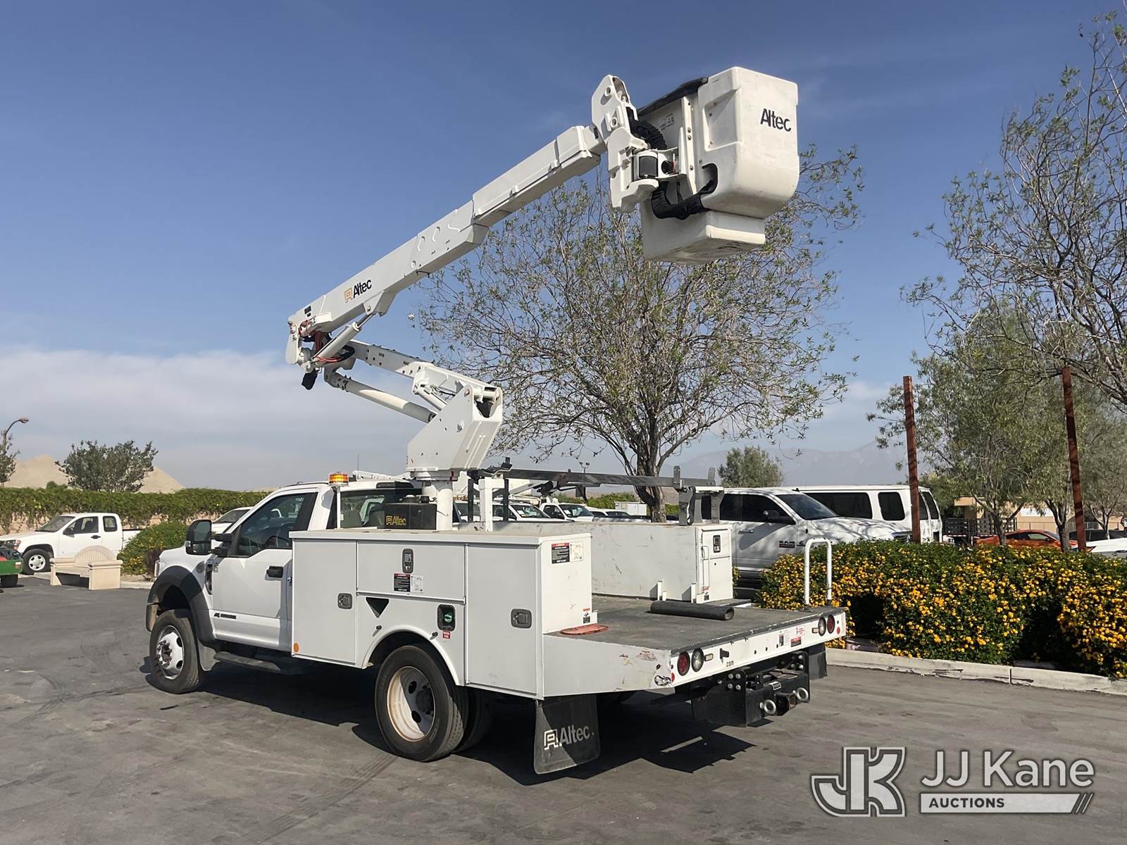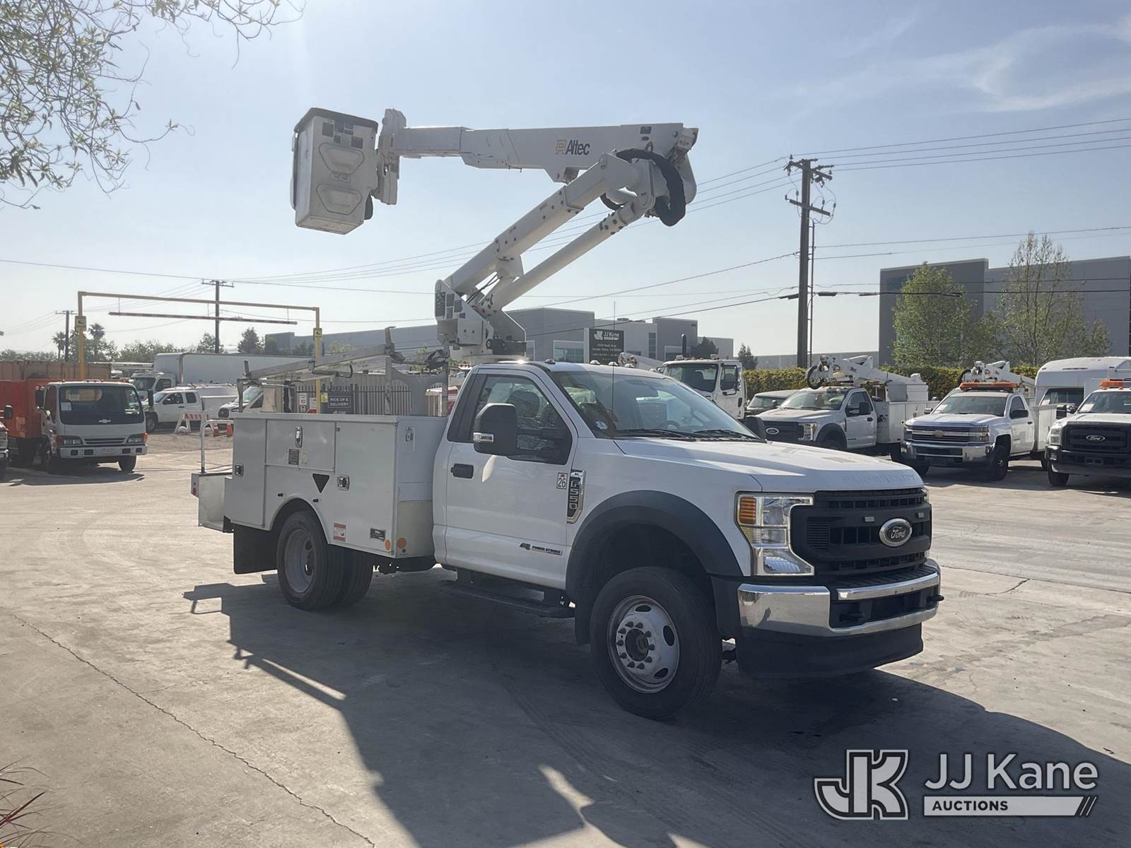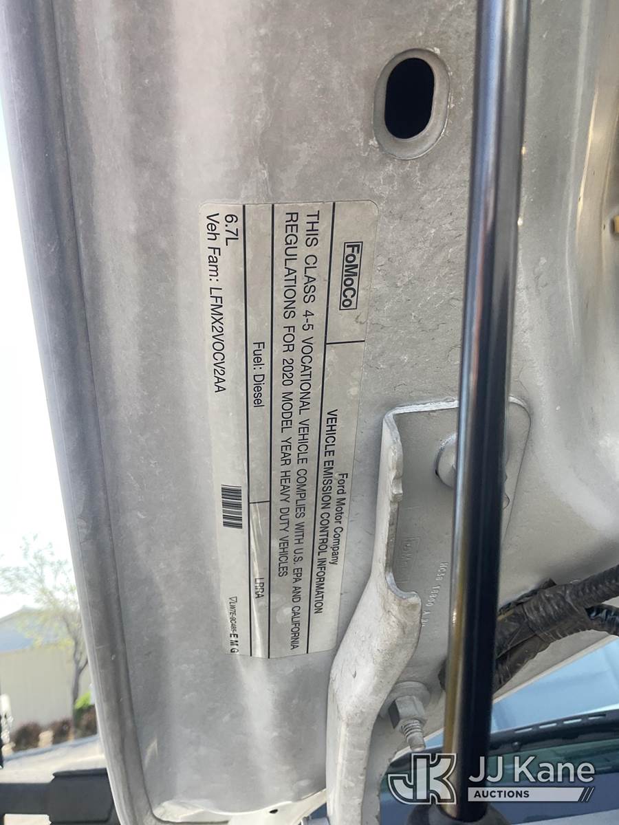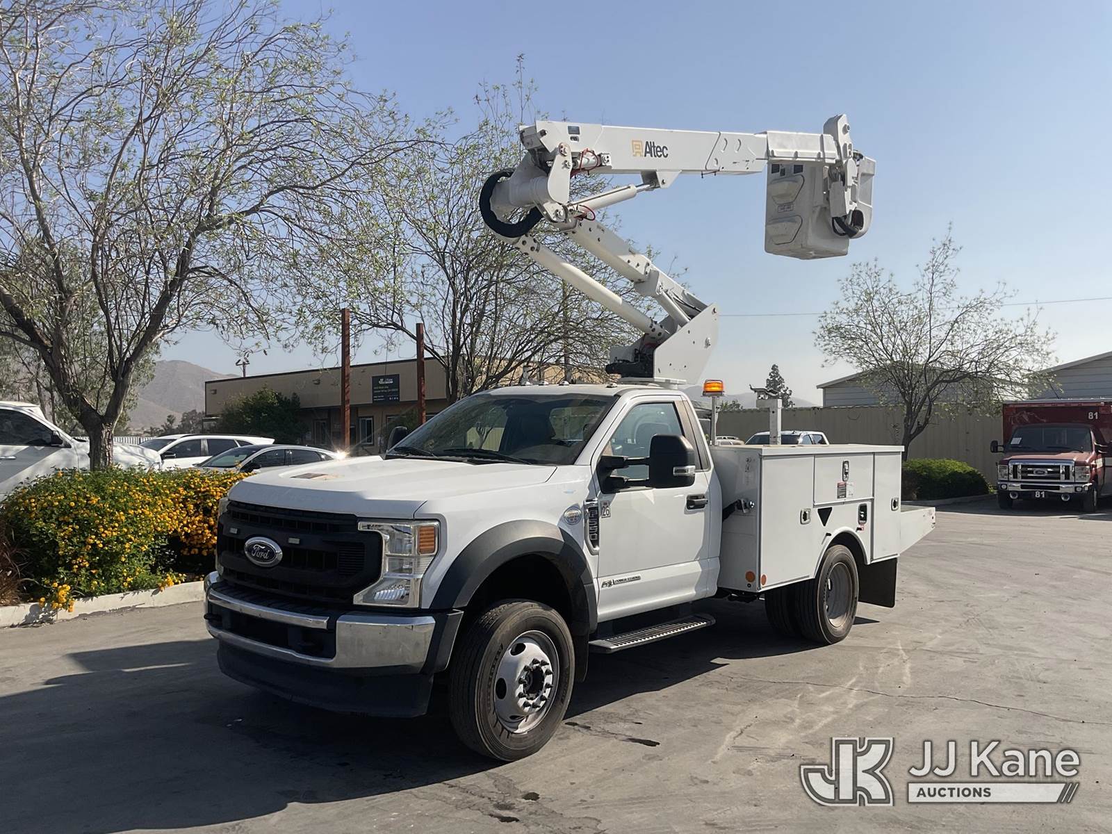 Altec AT37G, 42 ft, Articulating & Telescopic Bucket s/n 0620DE23121, with single-man bucket, mounted behind cab on 2020 Ford F-550 Regular Cab DRW 4WD Utility Truck, s/n 1FDUF5HT1LDA03235, 6.7L V8 OHV 16V DIESEL, Auto, A/C, with Tow Package, (127,947 miles) (Runs, Moves & Upper Operates, Open Recall With Remedy Not Yet Available) (Bidding Restricted to Licensed Vehicle Dealers Only), May be subject to ARB Regulations This is a Titled Item NOTE: This unit is being sold AS IS/WHERE IS via Timed Auction and is located in Jurupa Valley, CA. Inspection & preview days for this unit are the 2 business days prior to the first day of items closing for this auction, item is located at 4510 Muth Way Jurupa Valley, CA 92509 and hours of operations are 8a-4p. For pre-sale questions, please contact please contact Office Staff @ (310) 353-7140. Dealer License Number 45696. (Manuals provided in cab) (Buyer is responsible for removal. Assistance by consignor or JJ Kane Auctions is not assured.)