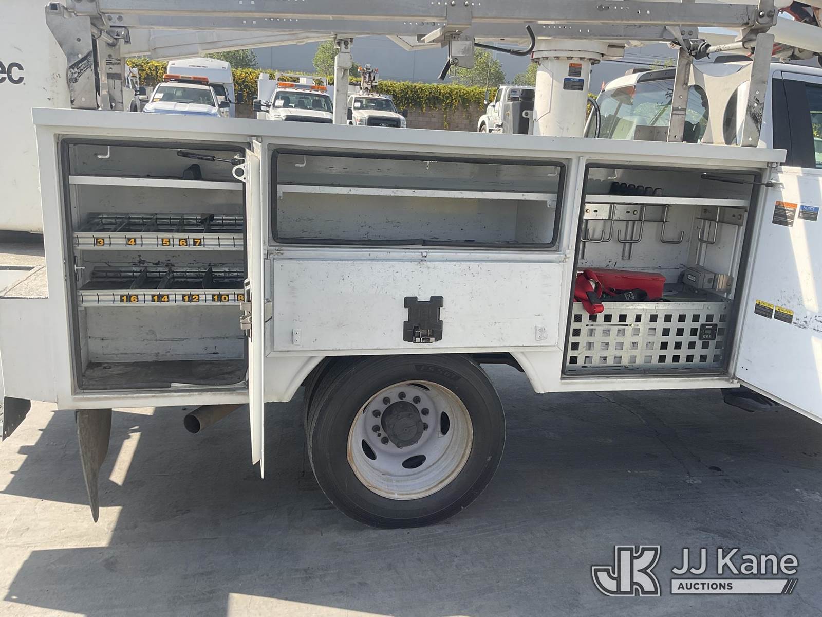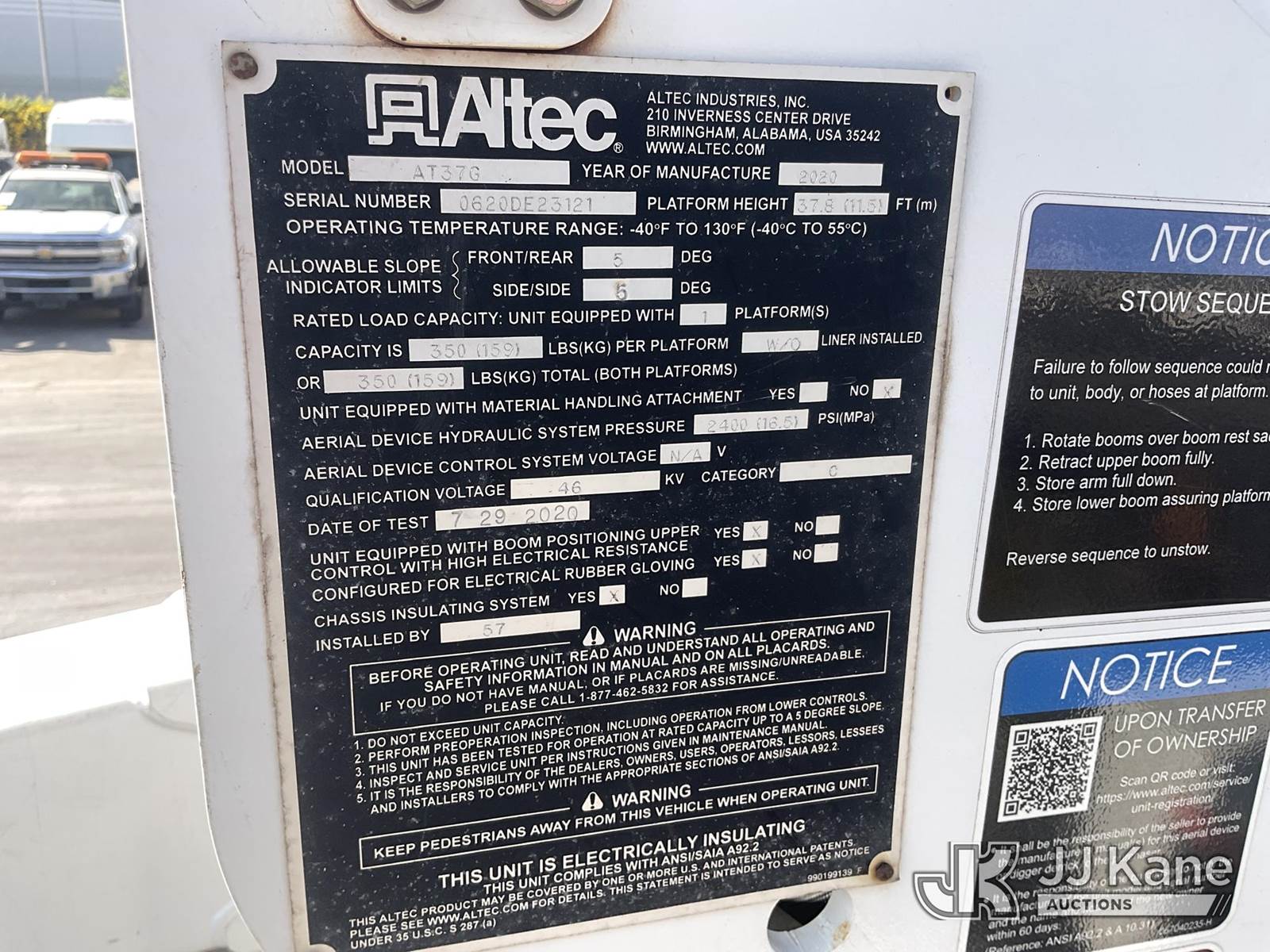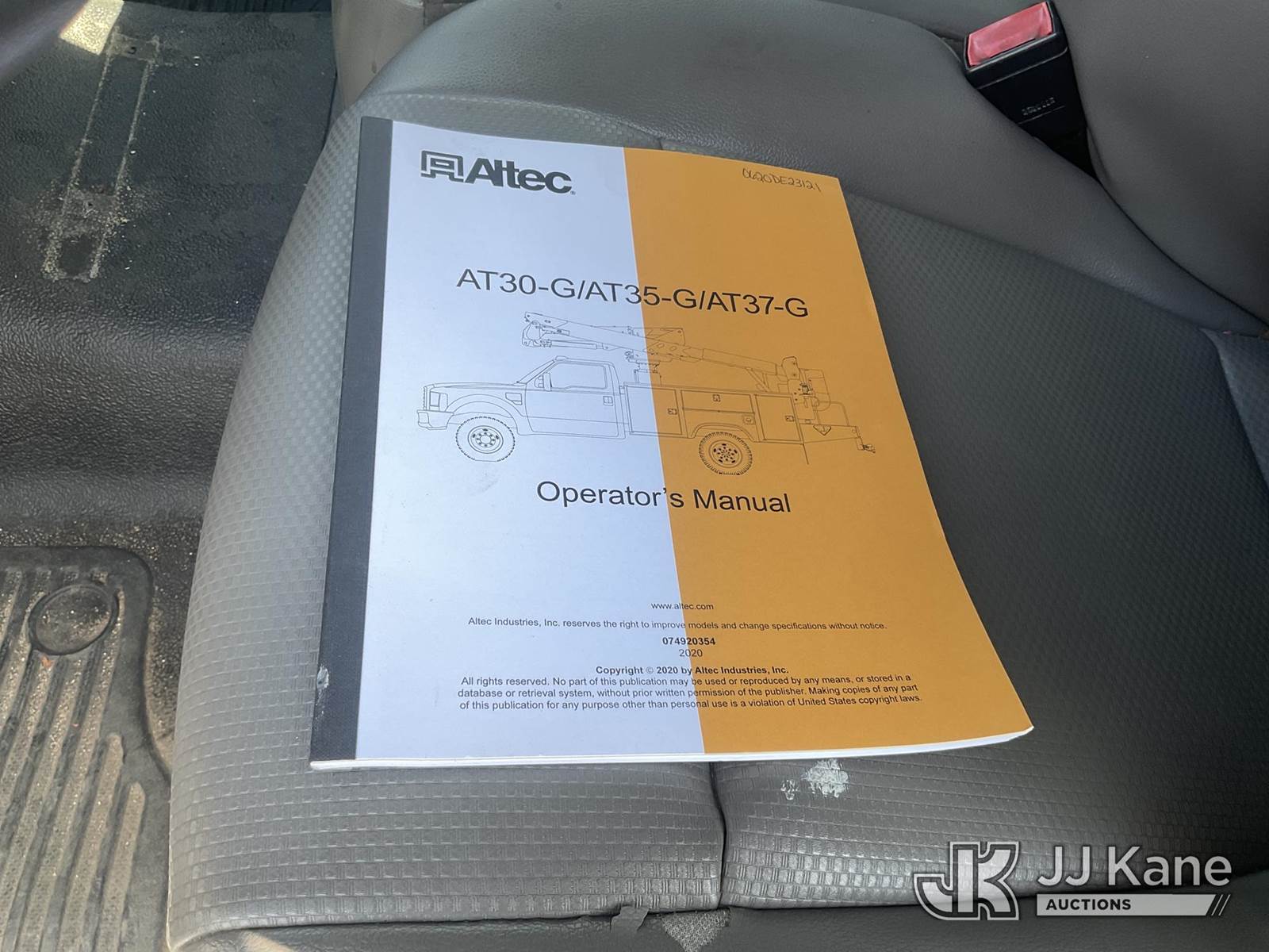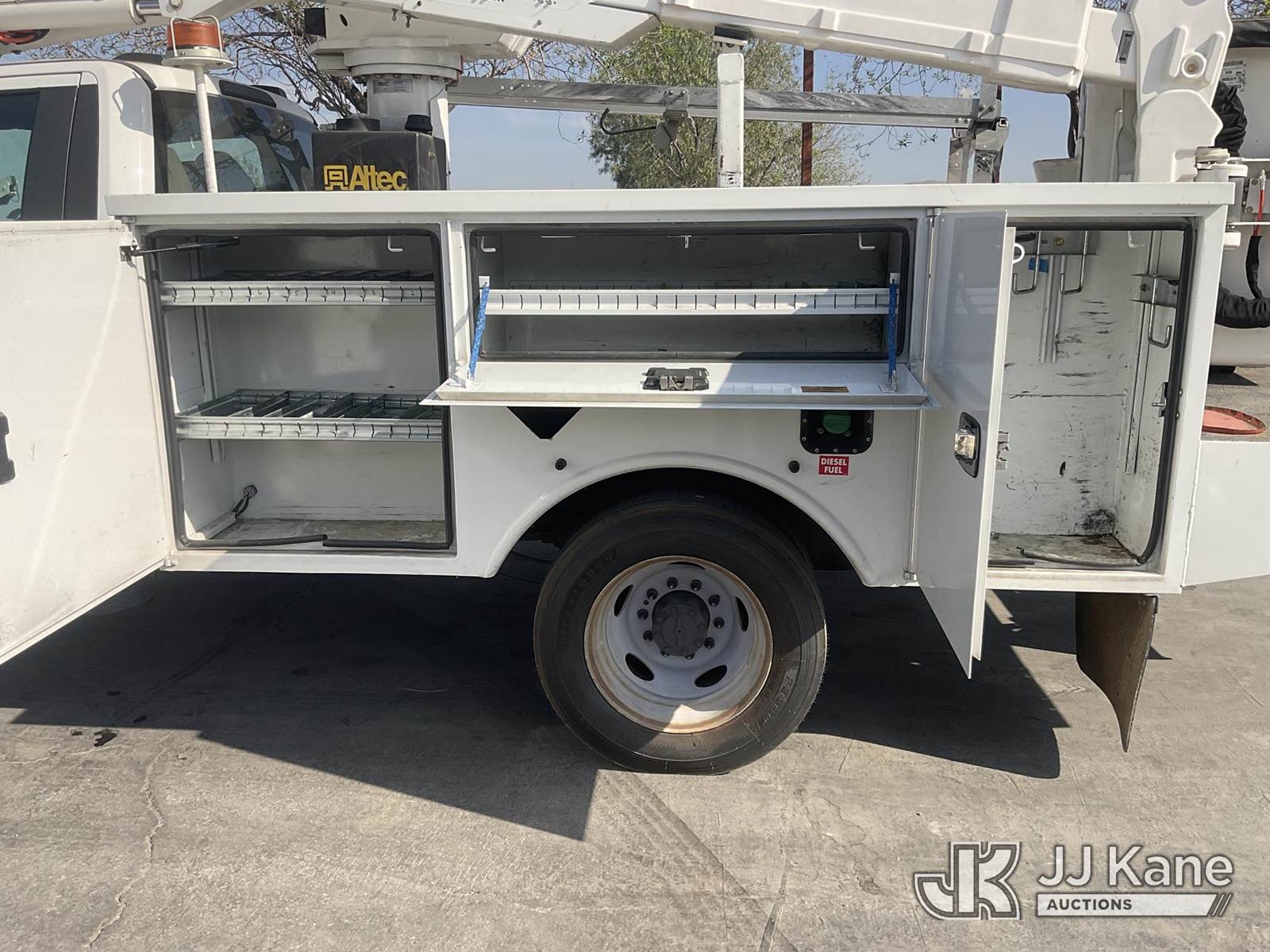 Altec AT37G, 42 ft, Articulating & Telescopic Bucket s/n 0620DE23121, with single-man bucket, mounted behind cab on 2020 Ford F-550 Regular Cab DRW 4WD Utility Truck, s/n 1FDUF5HT1LDA03235, 6.7L V8 OHV 16V DIESEL, Auto, A/C, with Tow Package, (127,947 miles) (Runs, Moves & Upper Operates, Open Recall With Remedy Not Yet Available) (Bidding Restricted to Licensed Vehicle Dealers Only), May be subject to ARB Regulations This is a Titled Item NOTE: This unit is being sold AS IS/WHERE IS via Timed Auction and is located in Jurupa Valley, CA. Inspection & preview days for this unit are the 2 business days prior to the first day of items closing for this auction, item is located at 4510 Muth Way Jurupa Valley, CA 92509 and hours of operations are 8a-4p. For pre-sale questions, please contact please contact Office Staff @ (310) 353-7140. Dealer License Number 45696. (Manuals provided in cab) (Buyer is responsible for removal. Assistance by consignor or JJ Kane Auctions is not assured.)
