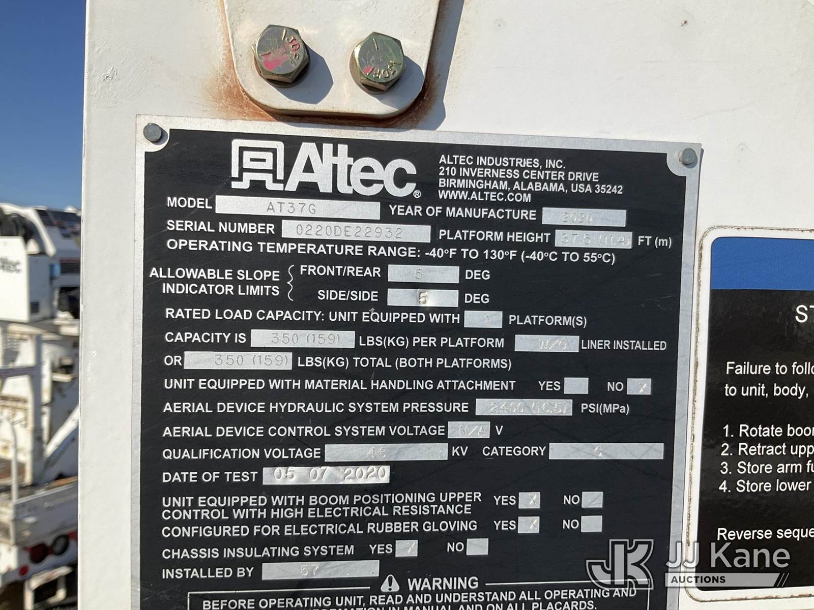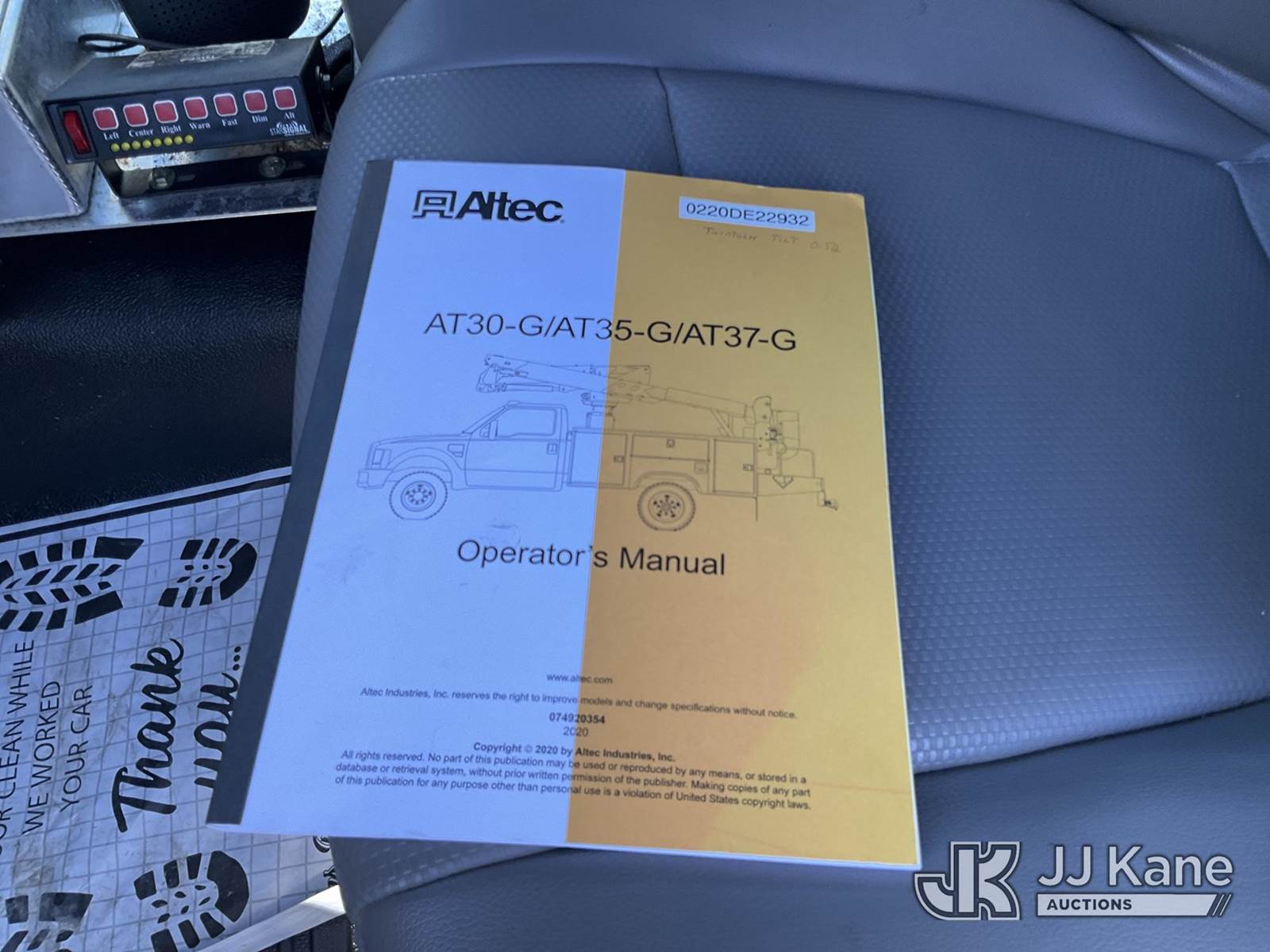 Altec AT37G, 42 ft, Articulating & Telescopic Bucket Truck s/n 0220DE22932, with Single-Man Bucket, mounted behind cab on 2020 Ford F-550 Service Truck, 6.7L Diesel Auto, A/C, with Front Bumper Winch, (110,251 miles) (Runs, Moves & Upper Operates) (Jump To Start) This is a Titled Item NOTE: This unit is being sold AS IS/WHERE IS via Timed Auction and is located in Waxahachie, TX. Inspection & preview days for this unit are the 2 business days prior to the first day of items closing for this auction, item is located at 999 Solon Rd Waxahachie, TX 75165 and hours of operations are 8a-4p. For pre-sale questions, please contact Alex Bayless @ (469) 550-4938. (Manuals provided in cab) (Buyer is responsible for removal. Assistance by consignor or JJ Kane Auctions is not assured.)