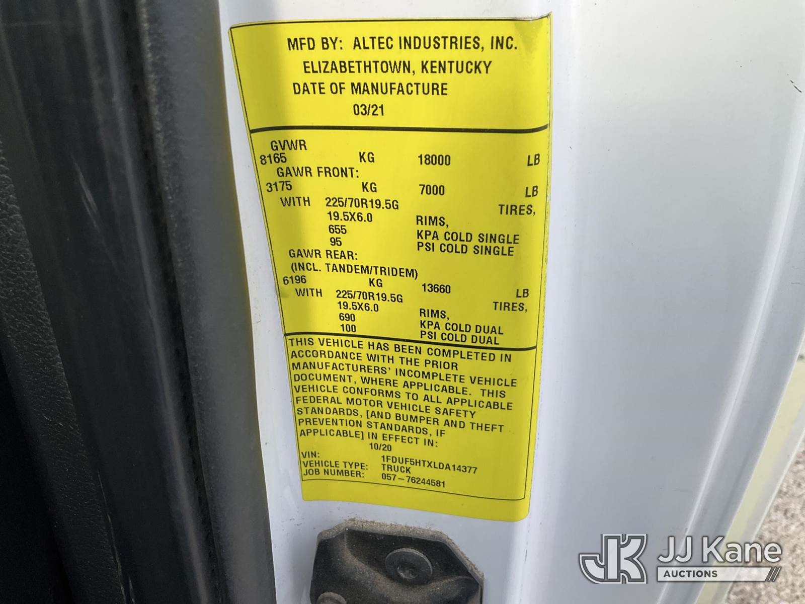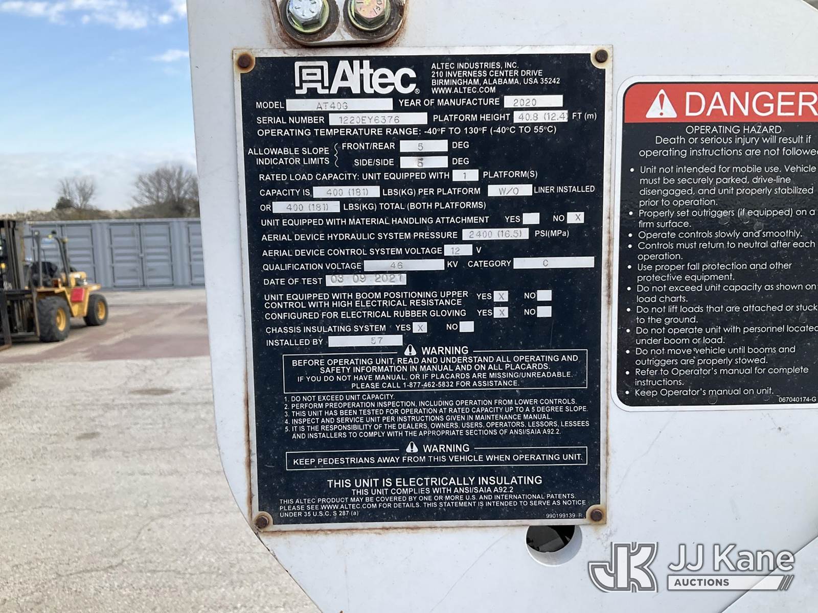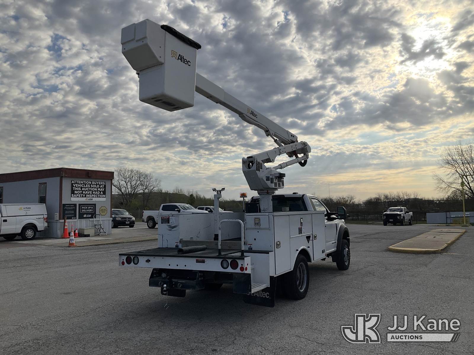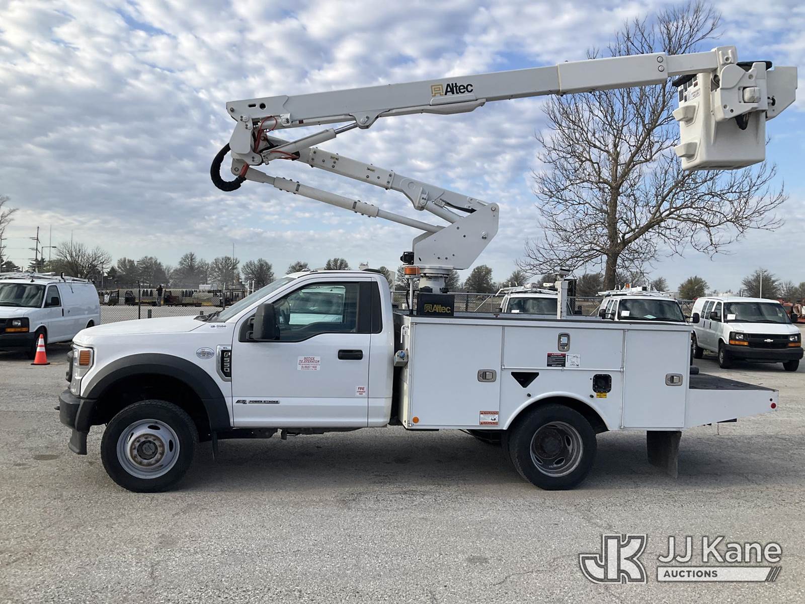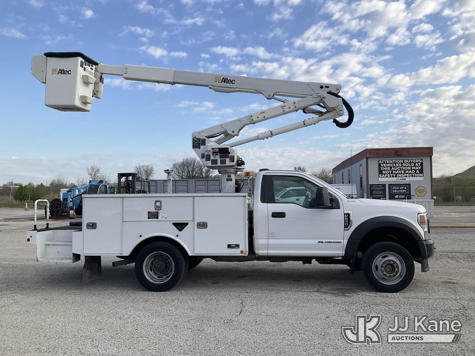 Altec AT40G, 45 ft, Articulating & Telescopic Bucket s/n 1220EY6376, with Single-Man Bucket, mounted behind cab on 2020 Ford F550 Service Truck, 4X4, diesel, Auto, A/C, (141,127 miles) (Runs, Moves & Upper Operates) (Reads 6,149 hours) This is a Titled Item NOTE: This unit is being sold AS IS/WHERE IS via Timed Auction and is located in Kansas City, MO. Inspection & preview days for this unit are the 2 business days prior to the first day of items closing for this auction, item is located at 962 Tel Aviv Ave Kansas City, MO 64153 and hours of operations are 8a-4p. For pre-sale questions, please contact Ricky McPherson @ (816) 610-2250. (Manuals provided in cab) (Buyer is responsible for removal. Assistance by consignor or JJ Kane Auctions is not assured.)