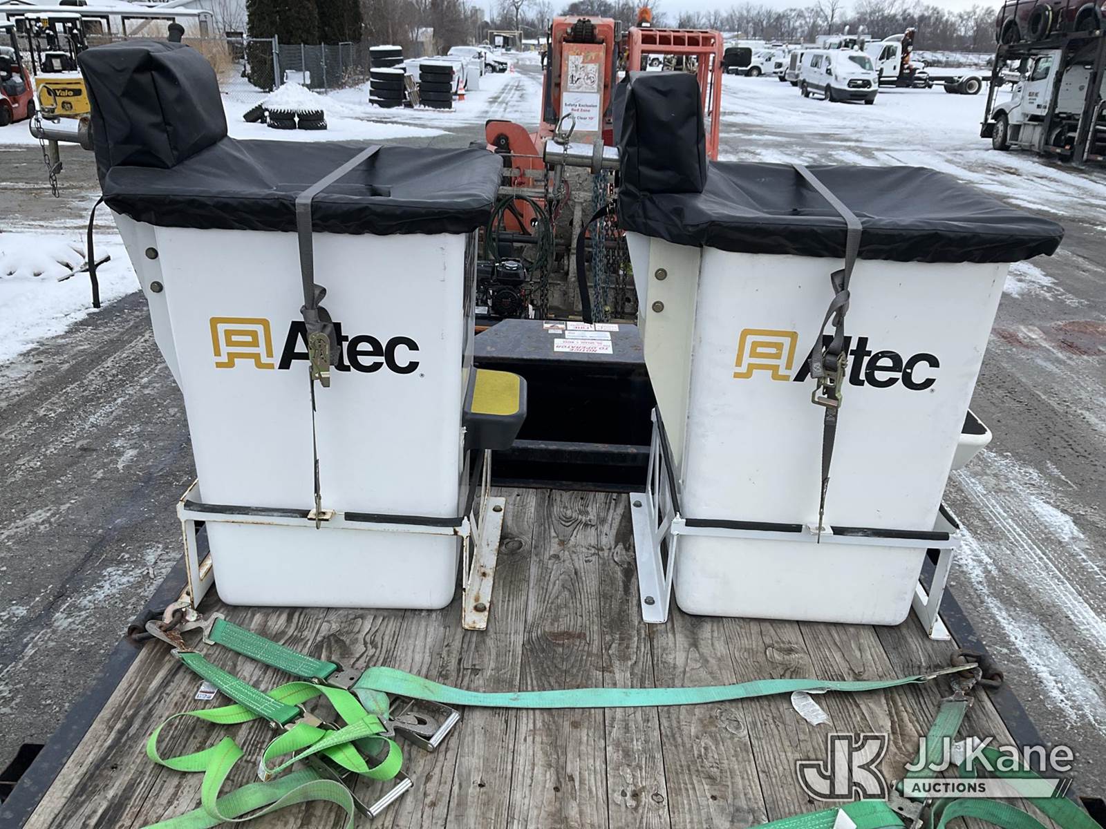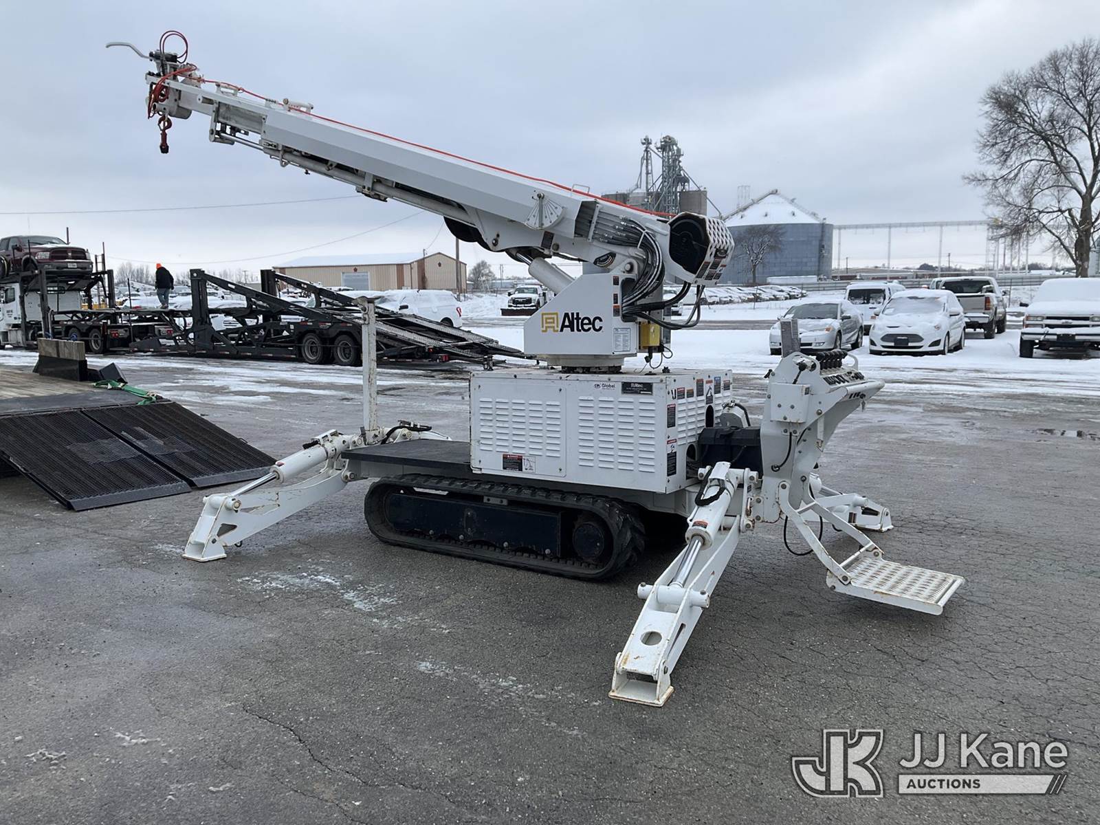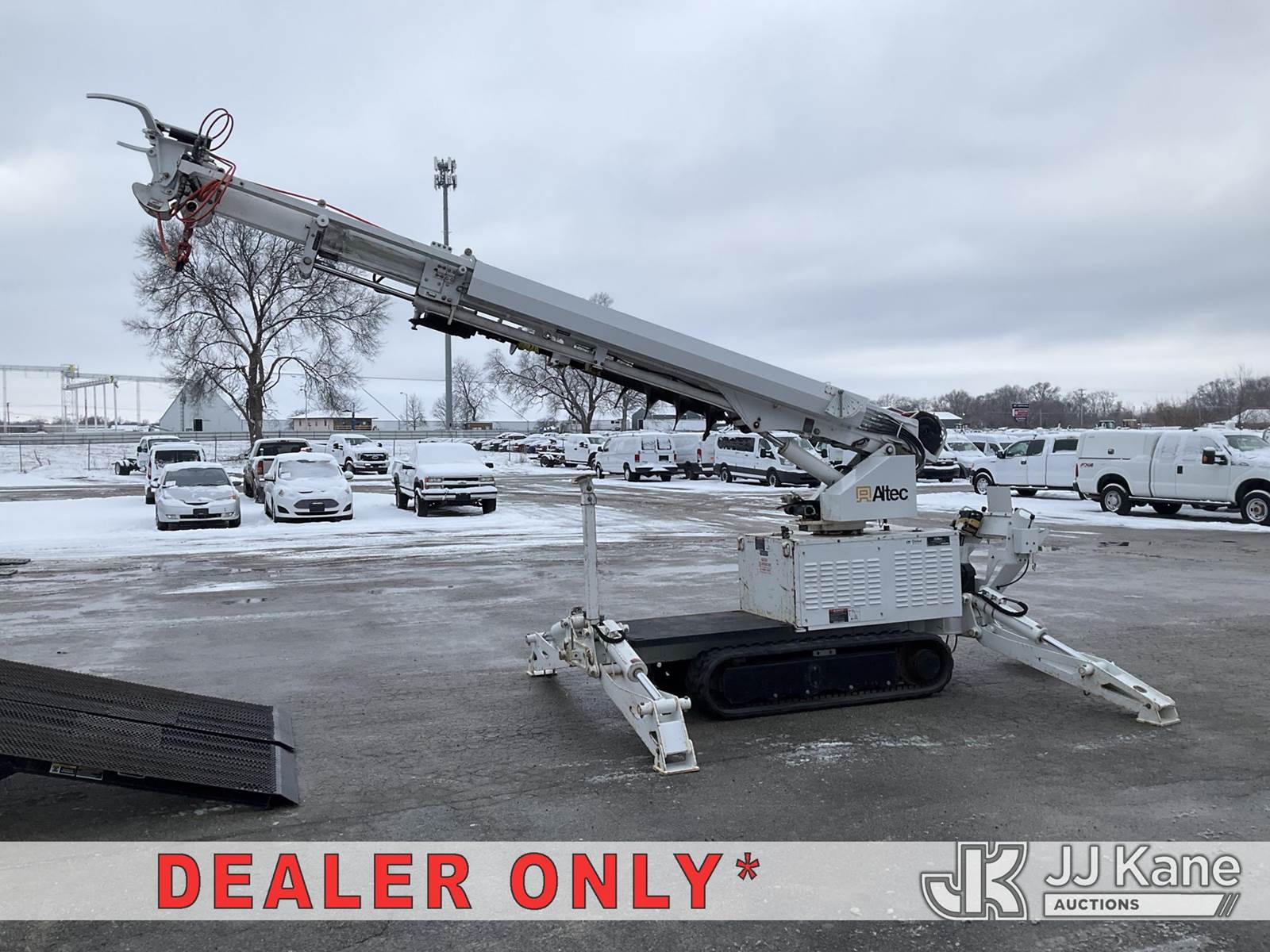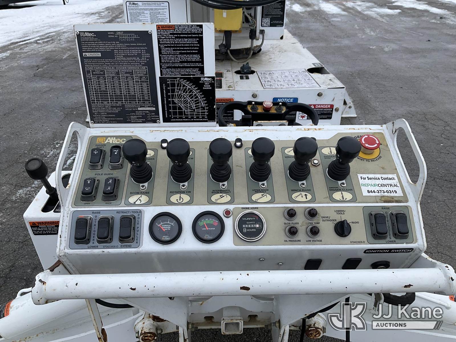 Altec DB37, 3,800 Lb Digger Derrick s/n 0720ET1281, with 37 ft. sheave height, 3 section hyd boom, 1 section pull out, boom winch, pole guides, 2-pin on buckets, wireless remote, drive remote & 4 hyd outriggers, mounted on 2020 Tracked Backyard Carrier, s/n 0720ET1281, Kubota diesel, Hydrostatic, with Load Trail support trailer, VIN: 4ZECH1825L1208032, Selling with 1591414. (Equipment and trailer price will be split out on invoice to reflect 80/20, equipment to trailer price ratio for tax purposes.) (Runs, Moves & Operates, **Dealer Only** This item has been removed from service due to the listed safety repairs that were not completed. The safety items below must be completed by an approved OEM facility before the unit can return to service: TRAILER RAMP LATCH/BREAKAWAY CABLE REQUIRE DIAGNOSIS/REPAIR; RADIO REMOTE REQUIRES DIAGNOSIS/REPAIR; CAT-TRACK HYDRAULIC HOSE ASSEMBLY REQURES REPLACEMENT; RF OUTRIGGER CYLINDER REQUIRES REPLACEMENT; POLE GUIDE ARM AND CYLINDER REQUIRE REPLACEMENT; EXTENSION CYLINDER REQUIRES REPLACEMENT; ROTATION GEARBOX REQUIRES REPLACEMENT; COMPLETE ANSI INSPECTION AND DIELCTRIC TESTING; COMPLETE ANY REQUIRED TESTING AND REPAIRS AFTER INSPECTIONS ARE COMPLETED) (Reads 631 hours) (Bidding Restricted to Licensed Vehicle Dealers Only), NOTE: This unit is being sold AS IS/WHERE IS via Timed Auction and is located in Charlotte, MI. Inspection & preview days for this unit are the 2 business days prior to the first day of items closing for this auction, item is located at 750 Island Hwy Charlotte, MI 48813 and hours of operations are 8a-4p. For pre-sale questions, please contact Corey Cook at (517) 983-0796 or corey.cook@jjkane.com (Manuals provided in cab) (Buyer is responsible for removal. Assistance by consignor or JJ Kane Auctions is not assured.)