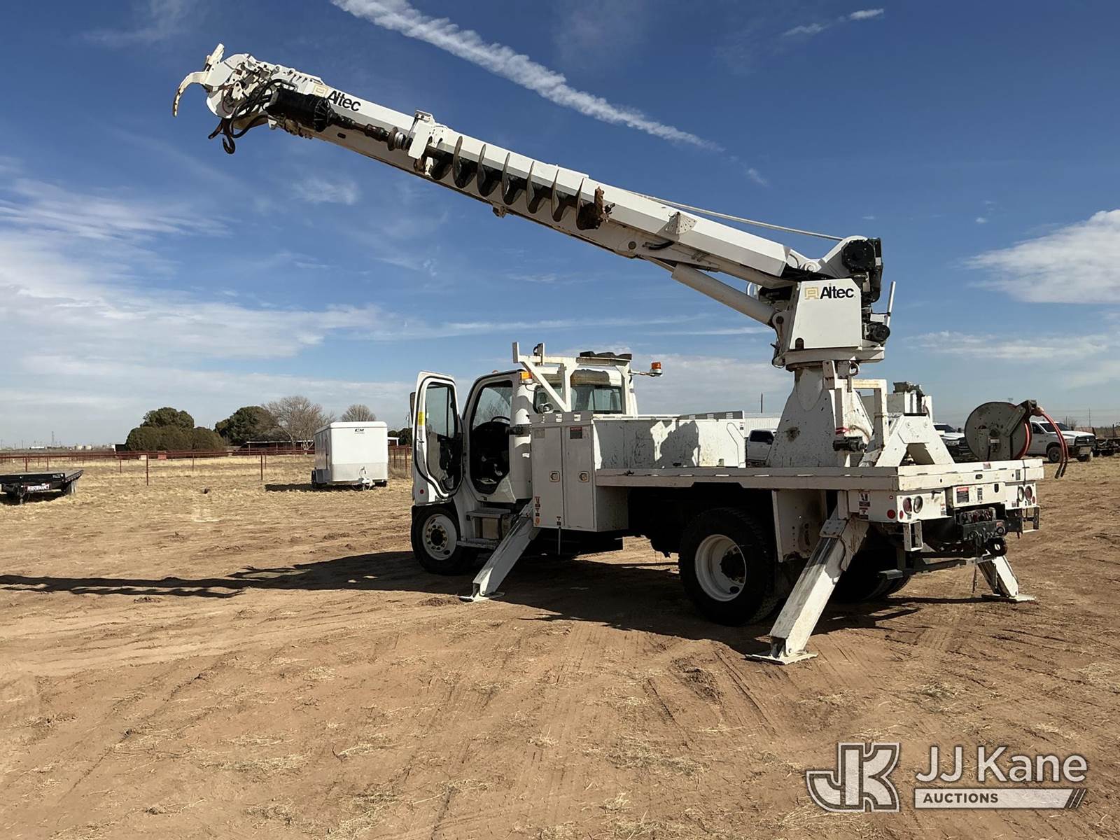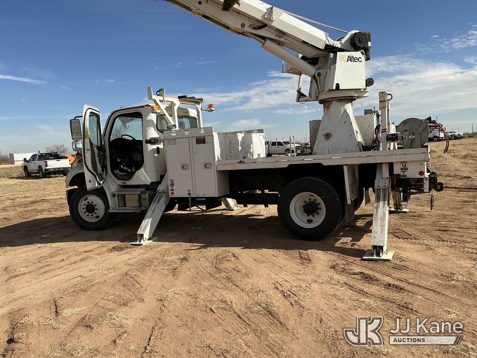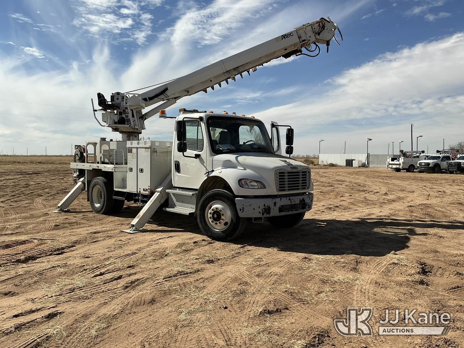 Altec DC47 T R, 23,790 Lb Digger Derrick s/n 0419EU3784, with 47ft sheave height, 2spd digger, pole guides, rear mounted on 2020 Freightliner M2 Utility Truck, 6.7L diesel, 2wd, Auto, A/C, (71,648 miles) (**Dealer Only** Runs, Moves & Upper Operates, but Hoist Cable Does Not Lower; Seller States NEEDS HYDRAULIC AND ELECTRICAL REPAIRS – Requires ANSI Inspection for repair/replacement requirements.)(Body Has Dents, Rust & Scratches All Around, Left Rear Brackets And Light Assembly Are Damaged.) (Reads 5,475 hours) (Bidding Restricted to Licensed Vehicle Dealers Only), This is a Titled Item NOTE: This unit is being sold AS IS/WHERE IS via Timed Auction and is located in Stanton, TX. Inspection & preview days for this unit are by appointment only; please contact us at contact@jjkane.com or 84-Go-JJKane for more details. For more information & removal arrangements please contact Mandi @ (530) 356-6904. (Missing manuals, See Auction Company for Manufacturers Information to obtain manuals) (Buyer is responsible for removal. Assistance by consignor or JJ Kane Auctions is not assured.)