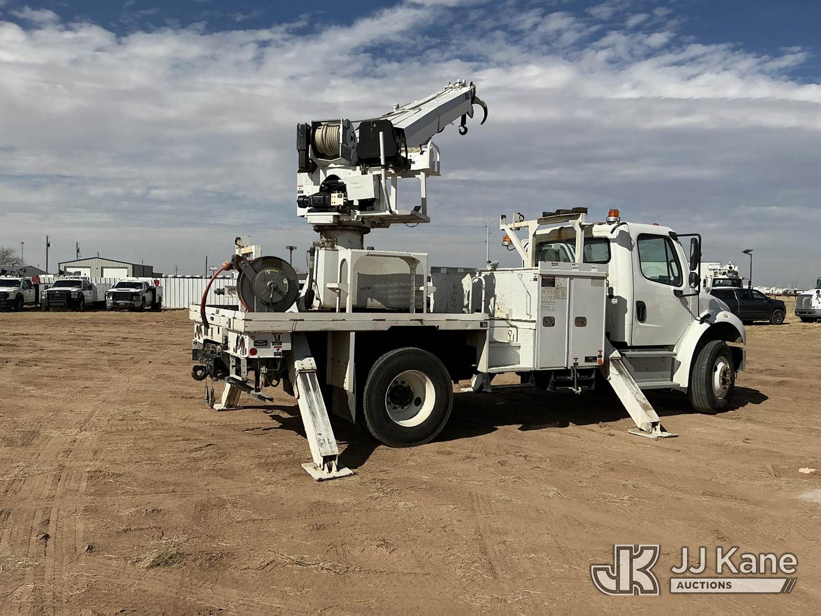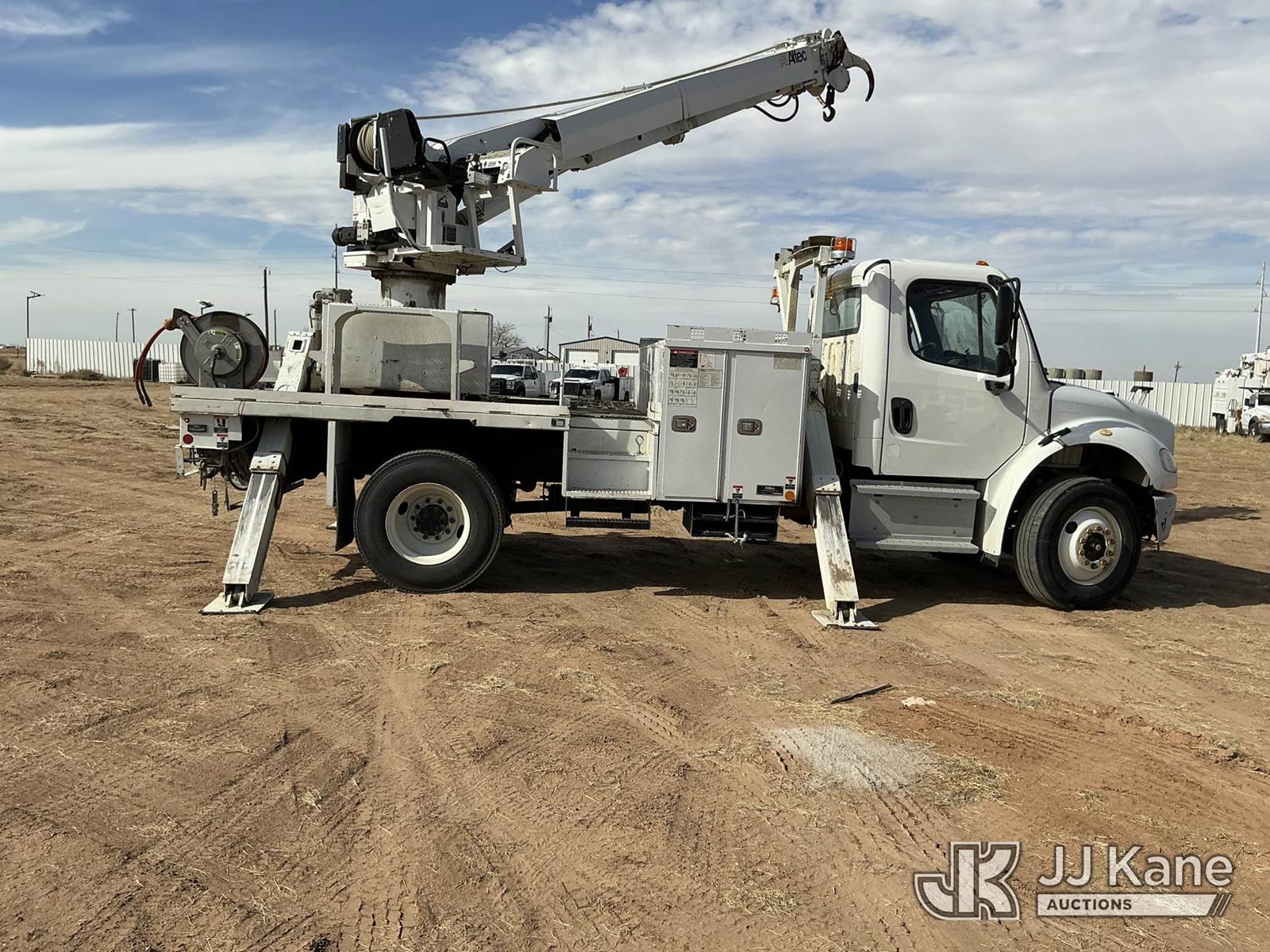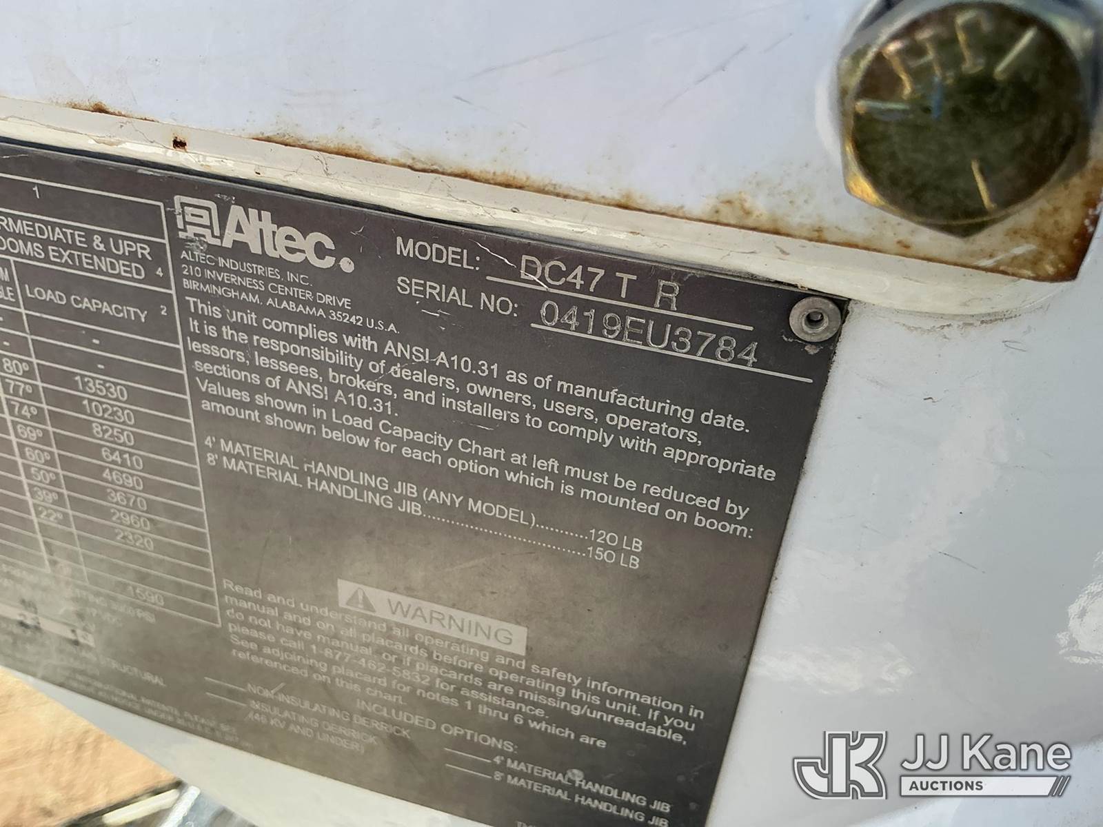 Altec DC47 T R, 23,790 Lb Digger Derrick s/n 0419EU3784, with 47ft sheave height, 2spd digger, pole guides, rear mounted on 2020 Freightliner M2 Utility Truck, 6.7L diesel, 2wd, Auto, A/C, (71,648 miles) (**Dealer Only** Runs, Moves & Upper Operates, but Hoist Cable Does Not Lower; Seller States NEEDS HYDRAULIC AND ELECTRICAL REPAIRS – Requires ANSI Inspection for repair/replacement requirements.)(Body Has Dents, Rust & Scratches All Around, Left Rear Brackets And Light Assembly Are Damaged.) (Reads 5,475 hours) (Bidding Restricted to Licensed Vehicle Dealers Only), This is a Titled Item NOTE: This unit is being sold AS IS/WHERE IS via Timed Auction and is located in Stanton, TX. Inspection & preview days for this unit are by appointment only; please contact us at contact@jjkane.com or 84-Go-JJKane for more details. For more information & removal arrangements please contact Mandi @ (530) 356-6904. (Missing manuals, See Auction Company for Manufacturers Information to obtain manuals) (Buyer is responsible for removal. Assistance by consignor or JJ Kane Auctions is not assured.)