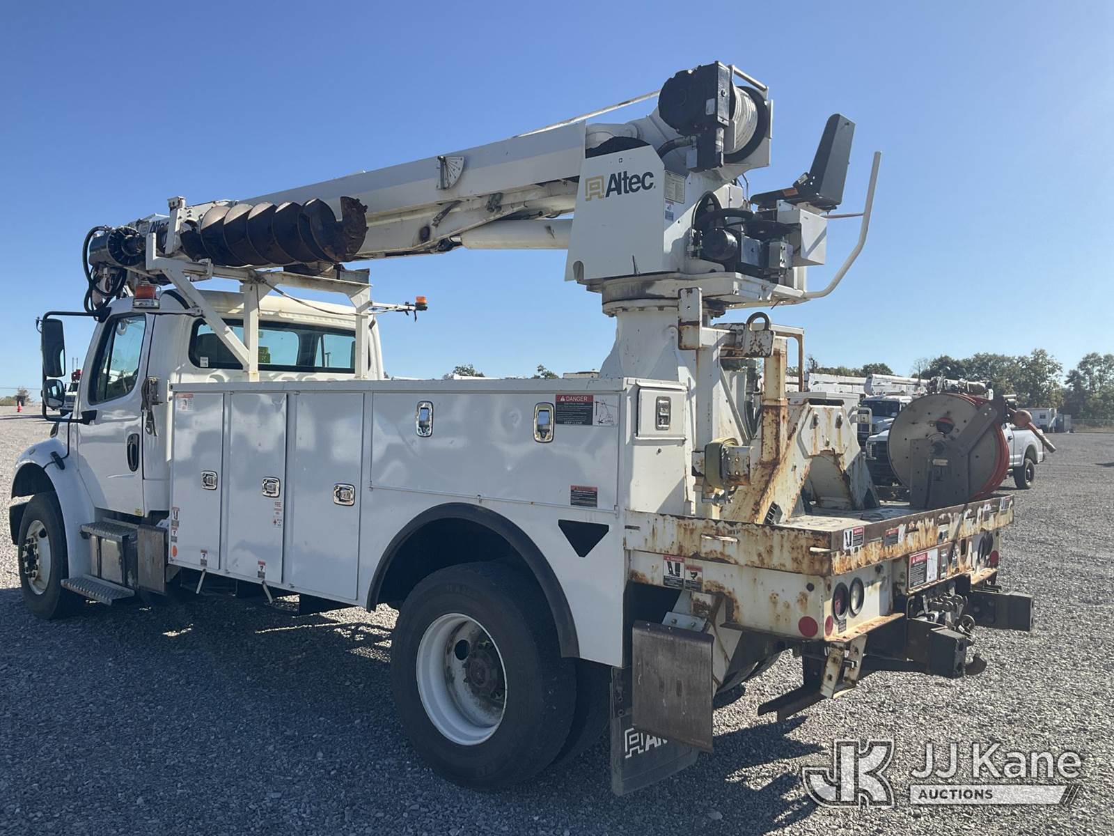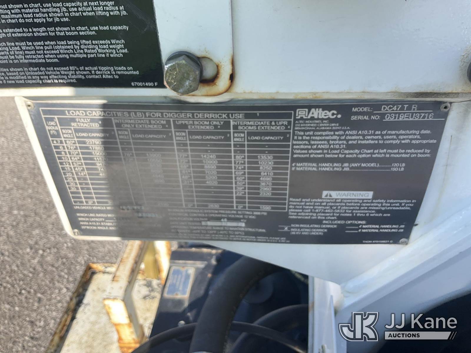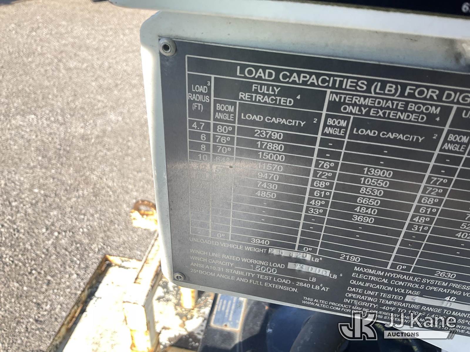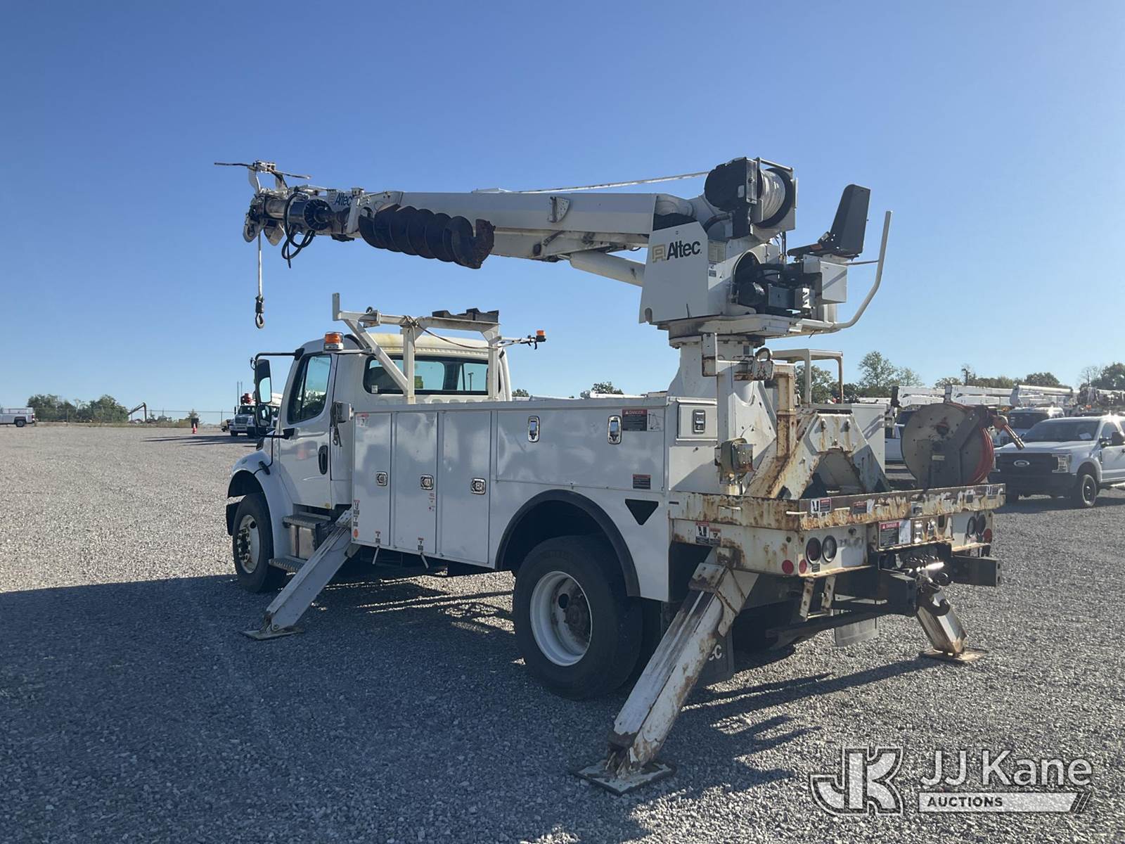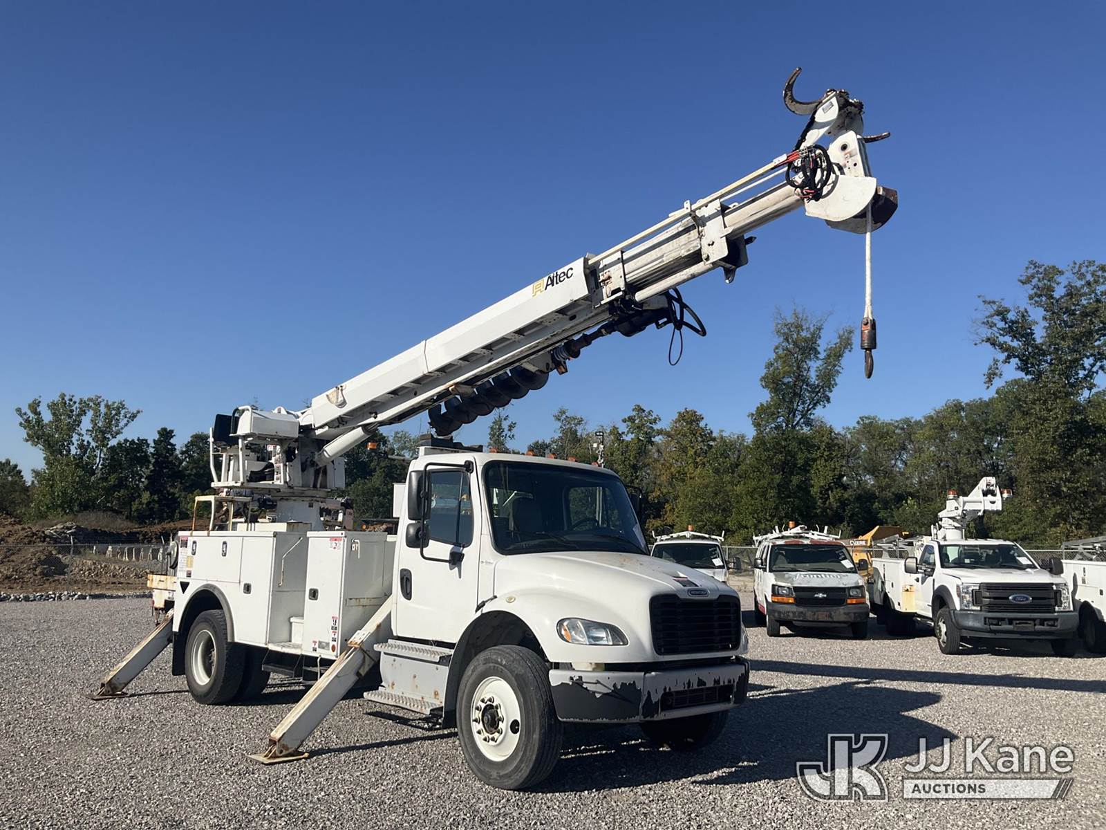 Altec DC47-TR, 23,790 Lb Digger Derrick s/n 0319EU3716, with 47 ft. sheave height, 3 section hyd. boom, 2 spd. digger, heel winch, pole guides, riding console & 4 hyd. outriggers, rear mounted on 2020 Freightliner M2 Utility Truck, Cummins 6.7L diesel, Auto, A/C, (96,989 miles) (Runs, Moves & Upper Operates) (Rust Damage) (Reads 5,898 hours) This is a Titled Item NOTE: This unit is being sold AS IS/WHERE IS via Timed Auction and is located in Verona, KY. For more information & removal arrangements please contact the Verona Yard Staff @ 502-612-5080. This item is used and may contain defects that are not immediately detectable. Text description and photos given are meant to be used as a guide only. The conditions are provided by the consignor; you are responsible for inspecting item before bidding. All information provided is believed to be correct but no warranty as such is either intended or implied. All items are sold AS IS - WHERE IS AND WITH ALL FAULTS AND DEFECTS THEREIN. Auctioneer Michael Whitebread / License # 256617. (Manuals provided in cab) (Buyer is responsible for removal. Assistance by consignor or JJ Kane Auctioneers is not assured.)