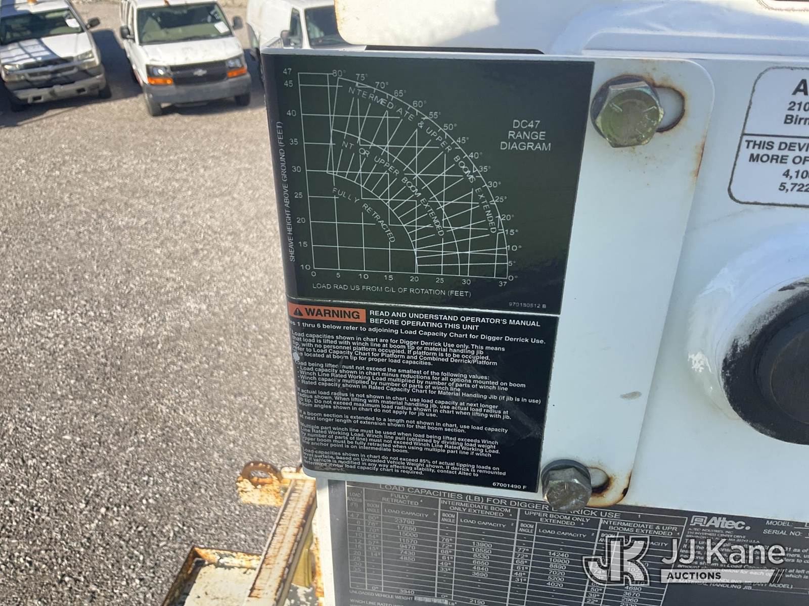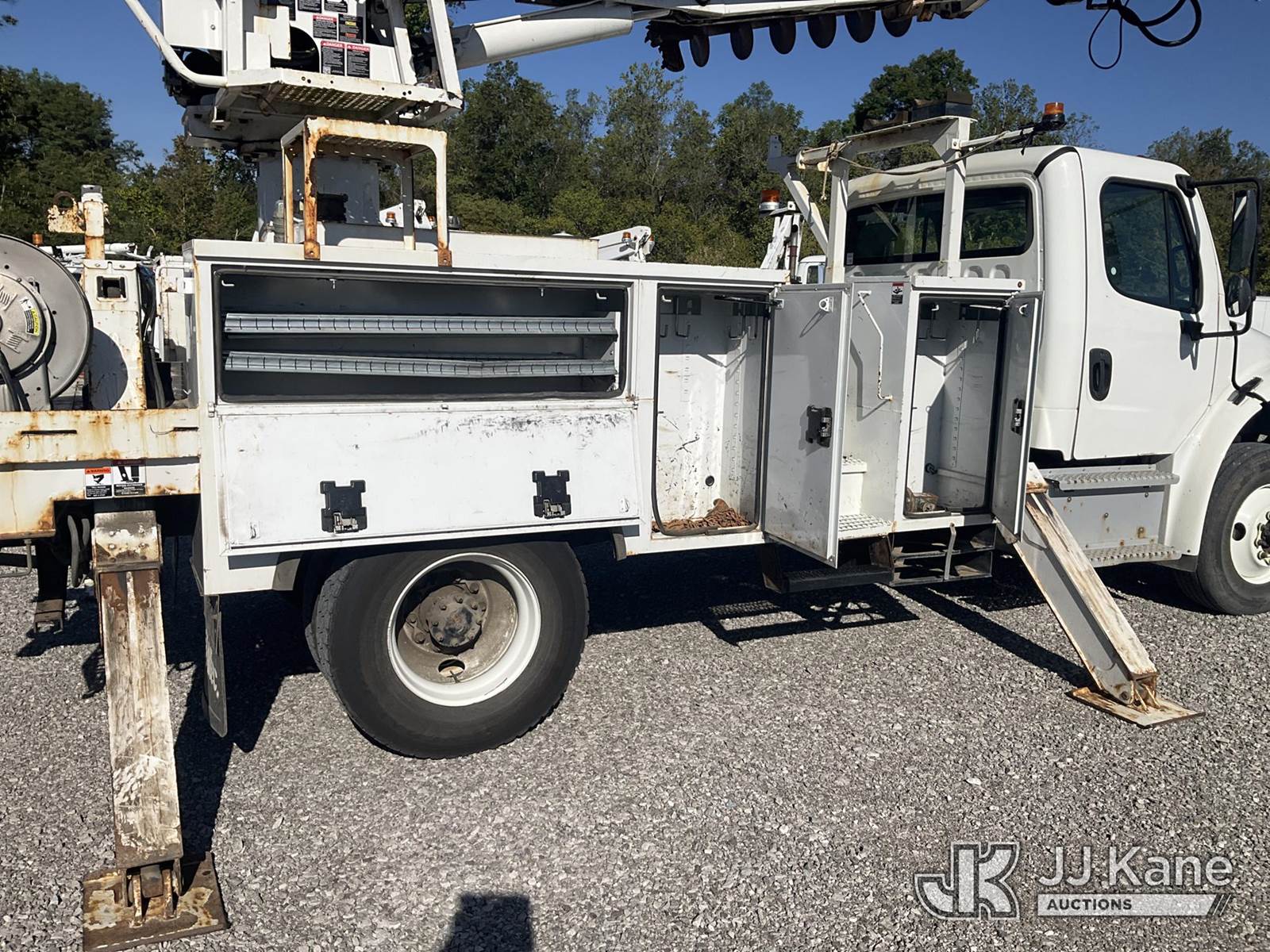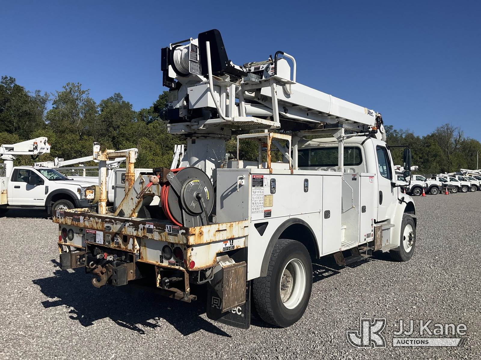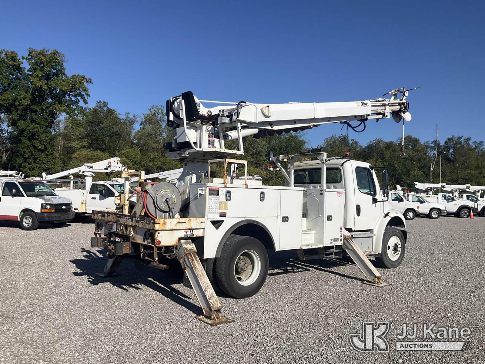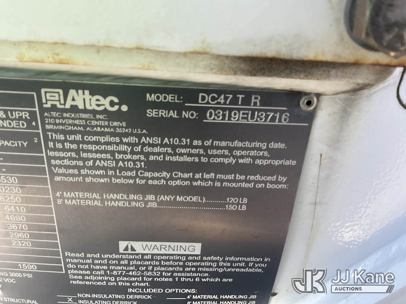 Altec DC47-TR, 23,790 Lb Digger Derrick s/n 0319EU3716, with 47 ft. sheave height, 3 section hyd. boom, 2 spd. digger, heel winch, pole guides, riding console & 4 hyd. outriggers, rear mounted on 2020 Freightliner M2 Utility Truck, Cummins 6.7L diesel, Auto, A/C, (96,989 miles) (Runs, Moves & Upper Operates) (Rust Damage) (Reads 5,898 hours) This is a Titled Item NOTE: This unit is being sold AS IS/WHERE IS via Timed Auction and is located in Verona, KY. For more information & removal arrangements please contact the Verona Yard Staff @ 502-612-5080. This item is used and may contain defects that are not immediately detectable. Text description and photos given are meant to be used as a guide only. The conditions are provided by the consignor; you are responsible for inspecting item before bidding. All information provided is believed to be correct but no warranty as such is either intended or implied. All items are sold AS IS - WHERE IS AND WITH ALL FAULTS AND DEFECTS THEREIN. Auctioneer Michael Whitebread / License # 256617. (Manuals provided in cab) (Buyer is responsible for removal. Assistance by consignor or JJ Kane Auctioneers is not assured.)