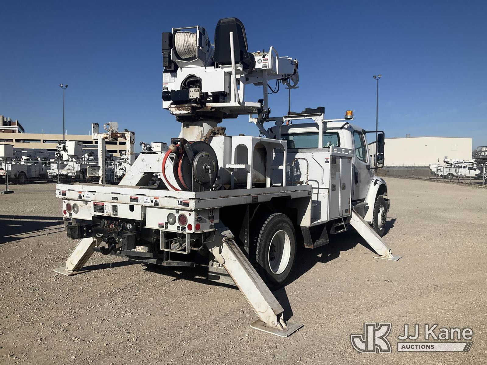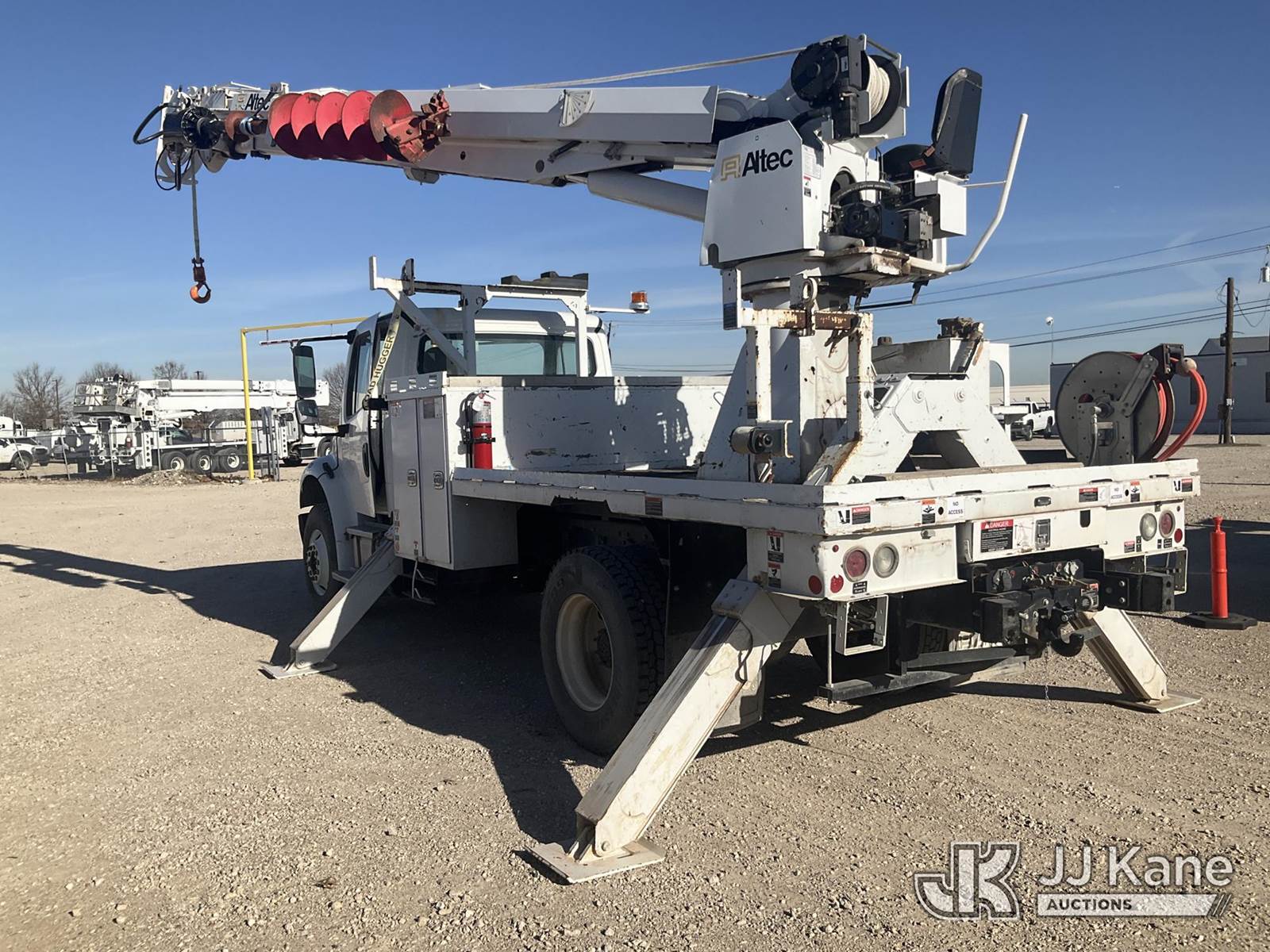 Altec DC47-TR, 23,790 Lb Digger Derrick s/n 0719EU4011, with 47 ft. sheave height, 3 section hyd boom, 2 spd digger, heel winch, pole guides, riding console & 4 hyd outriggers, rear mounted on 2020 Freightliner M2 106 Flatbed/Utility Truck, 6.7L diesel, Auto, A/C, (80,802 miles) (Runs, Moves & Operates, ) (Reads 5,648 hours) This is a Titled Item NOTE: This unit is being sold AS IS/WHERE IS via Timed Auction and is located in Waxahachie, TX. Inspection & preview days for this unit are the 2 business days prior to the first day of items closing for this auction, item is located at 999 Solon Rd Waxahachie, TX 75165 and hours of operations are 8a-4p. For pre-sale questions, please contact Alex Bayless @ (469) 550-4938. (Missing manuals, See Auction Company for Manufacturers Information to obtain manuals) (Buyer is responsible for removal. Assistance by consignor or JJ Kane Auctions is not assured.)