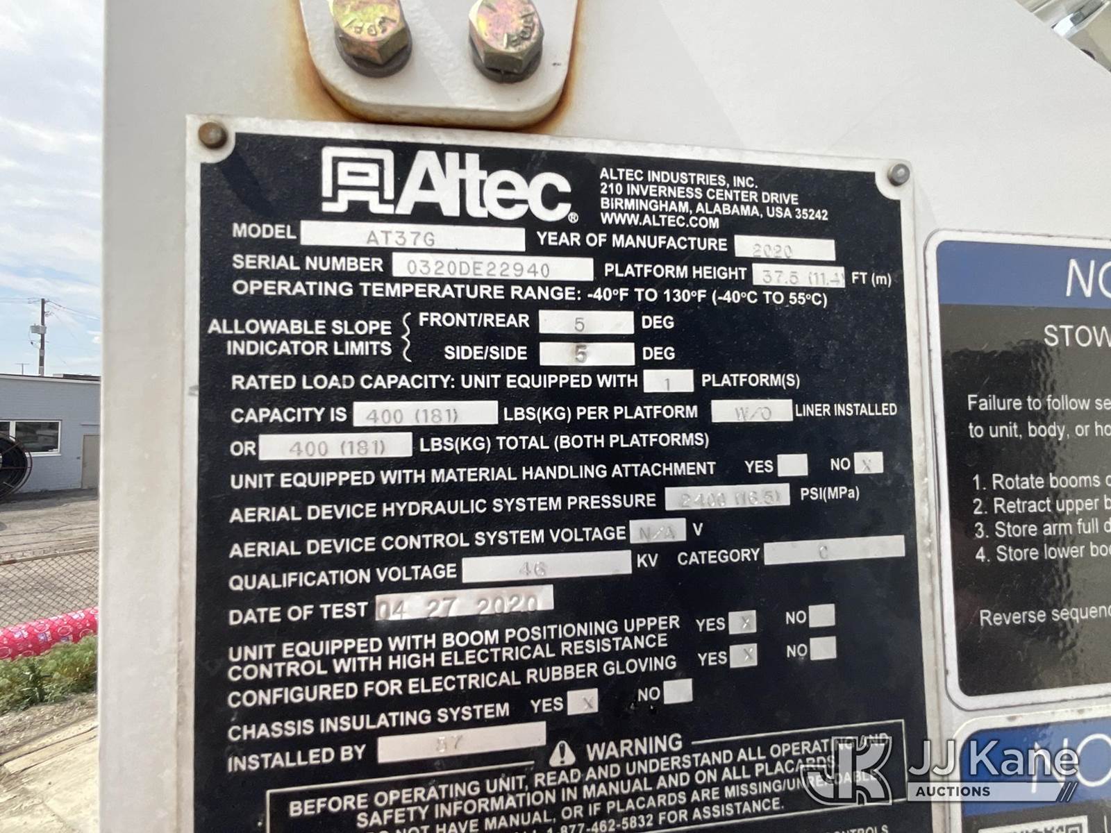 Altec Uncategorized, 42 ft, Articulating & Telescopic Bucket Truck s/n 0320DE22940, with single-man bucket, mounted behind cab on 2020 Ford F-550 Crew Cab DRW 4WD Crew-Cab Service Truck, 6.7L V8 OHV 16V DIESEL, Auto, (149,053 miles) (Runs, Moves & Upper Operates) This is a Titled Item NOTE: This unit is being sold AS IS/WHERE IS via Timed Auction and is located in Moraine, OH. Call Ken at (419) 295-5233 with questions. (Missing manuals, See Auction Company for Manufacturers Information to obtain manuals) (Buyer is responsible for removal. Assistance by consignor or JJ Kane Auctions is not assured.)