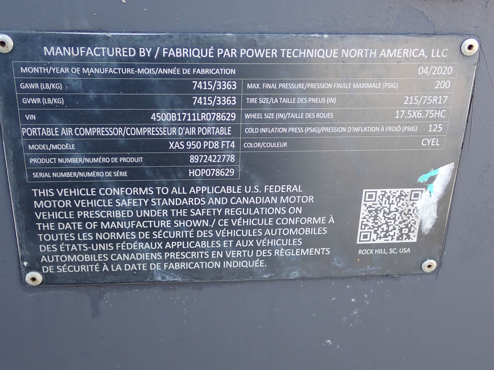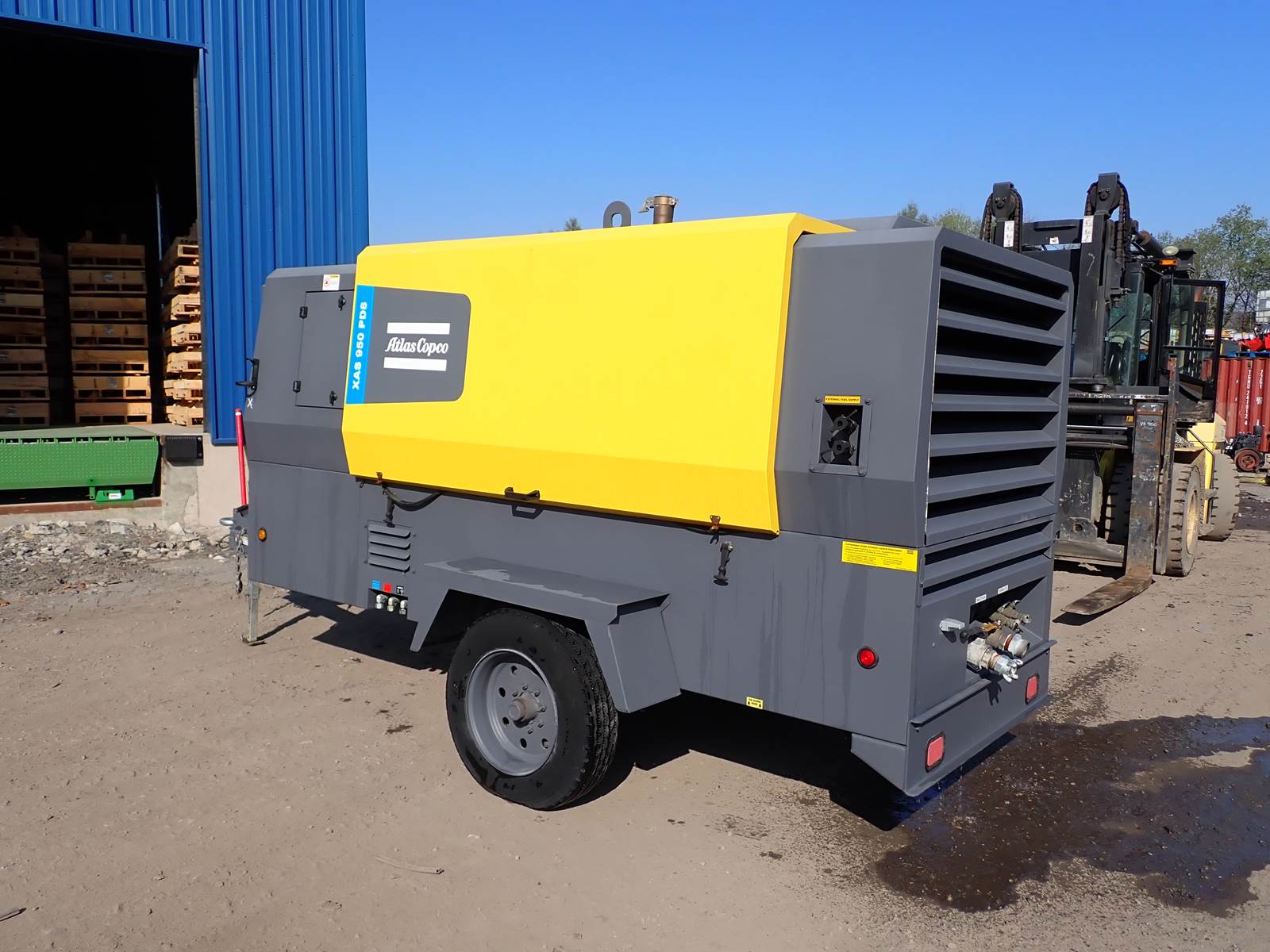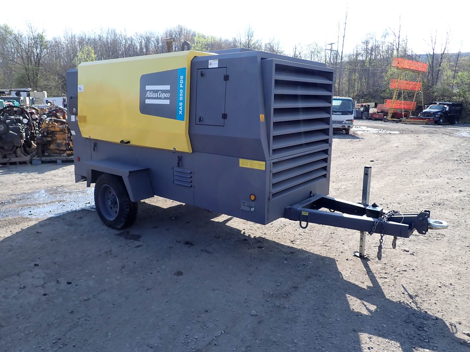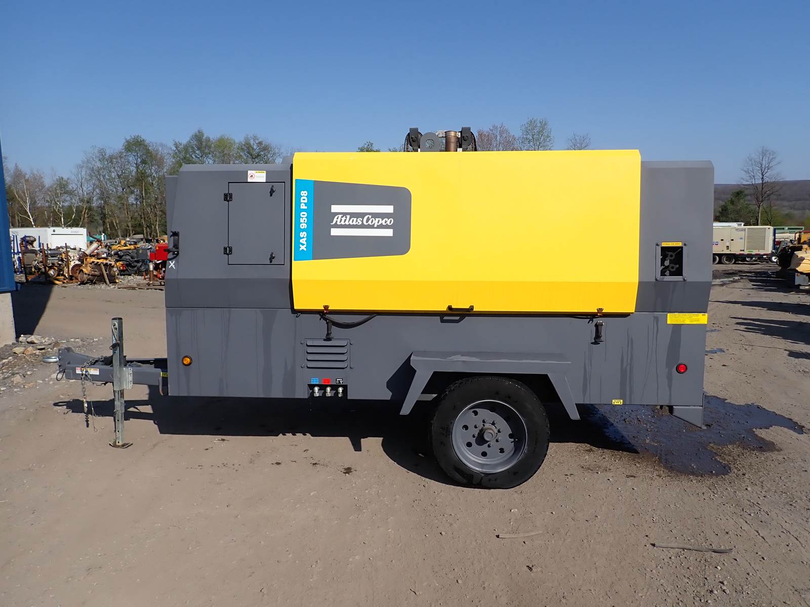 2020 Atlas Copco XAS950 PD8 FT4 air compressor, CAT C7.1/Perkins 1206F turbo diesel engine, 1912 hours, trailer mounted, towable, standard and aftercooled/instrument quality air circuits, 4 air outlets, selectable pressure settings, RENTAL FLEET MAINTAINED, FULLY OPERATIONAL AND IN EXCELLENT RUNNING CONDITION. COMPRESSOR IS RATED 950 CFM AT 100 PSI, 900 CFM AT 150 PSI AND 750 CFM AT 200 PSI -- EXTREMELY VERSATILE UNIT AT ANY PRESSURE SETTING YOU NEED! EXTREMELY NICE COMPRESSOR HERE -- WILL DO ANY JOB YOU NEED -- TIER 4 COMPLIANT FOR THOSE JOBS THAT REQUIRE IT, SLICK PACKAGE, SINGLE AXLE TRAILER FOR EASY TOWING -- DON'T MISS THIS ONE !!