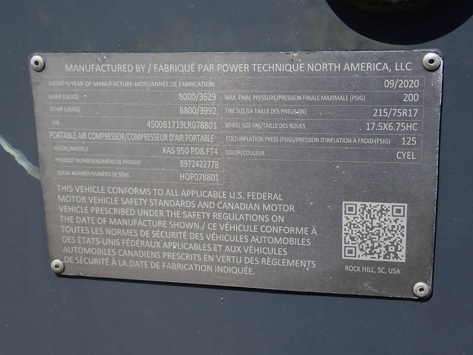 2020 Atlas Copco XAS950 PD8 FT4 air compressor, CAT C7.1/Perkins 1206F turbo diesel engine, 1357 hours, trailer mounted, towable, standard and aftercooled/instrument quality air circuits, 4 air outlets, selectable pressure settings, RENTAL FLEET MAINTAINED, FULLY OPERATIONAL AND IN EXCELLENT RUNNING CONDITION. COMPRESSOR IS RATED 950 CFM AT 100 PSI, 900 CFM AT 150 PSI AND 750 CFM AT 200 PSI -- EXTREMELY VERSATILE UNIT AT ANY PRESSURE SETTING YOU NEED! EXTREMELY NICE COMPRESSOR HERE -- WILL DO ANY JOB YOU NEED -- TIER 4 COMPLIANT FOR THOSE JOBS THAT REQUIRE IT, SLICK PACKAGE, SINGLE AXLE TRAILER FOR EASY TOWING -- DON'T MISS THIS ONE !!