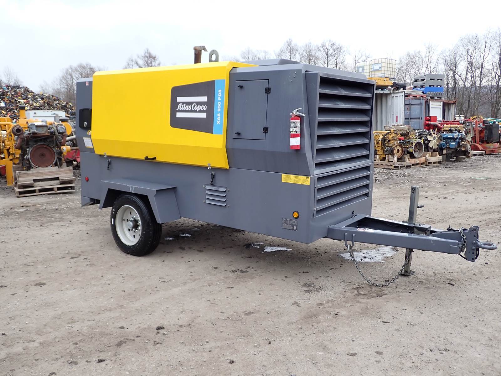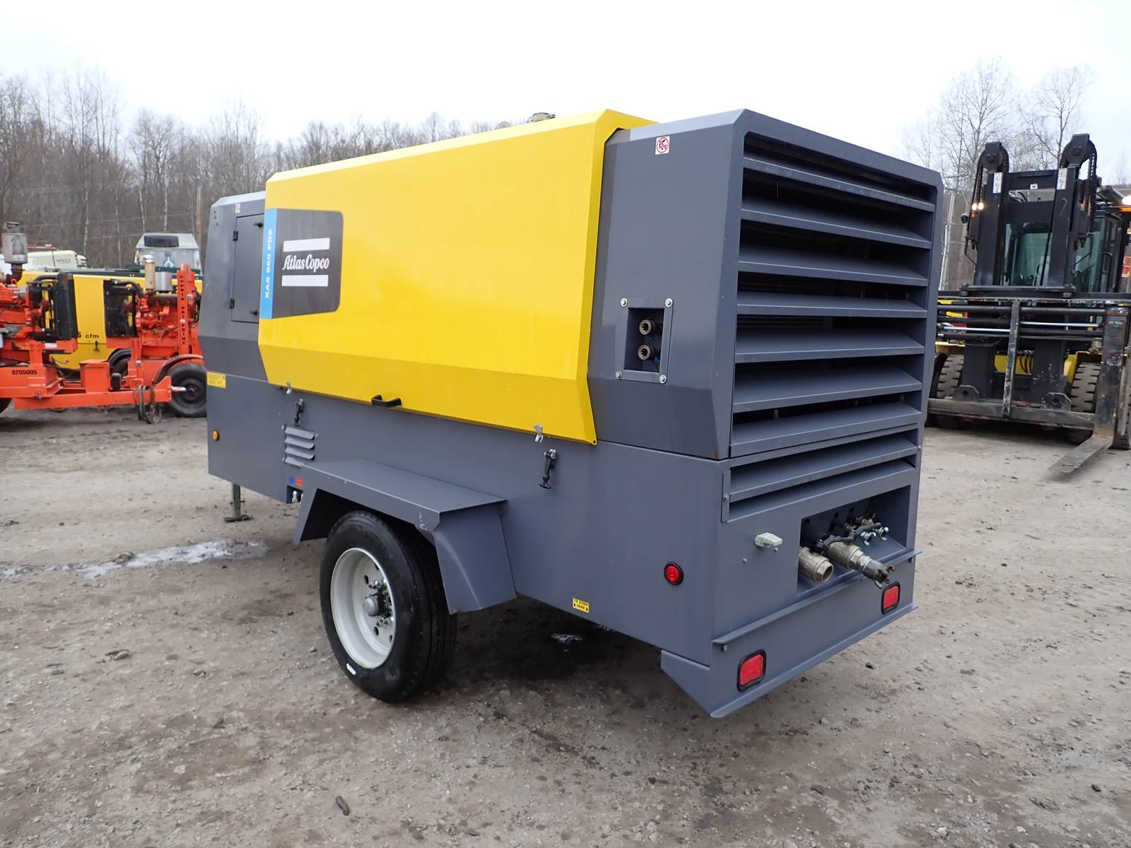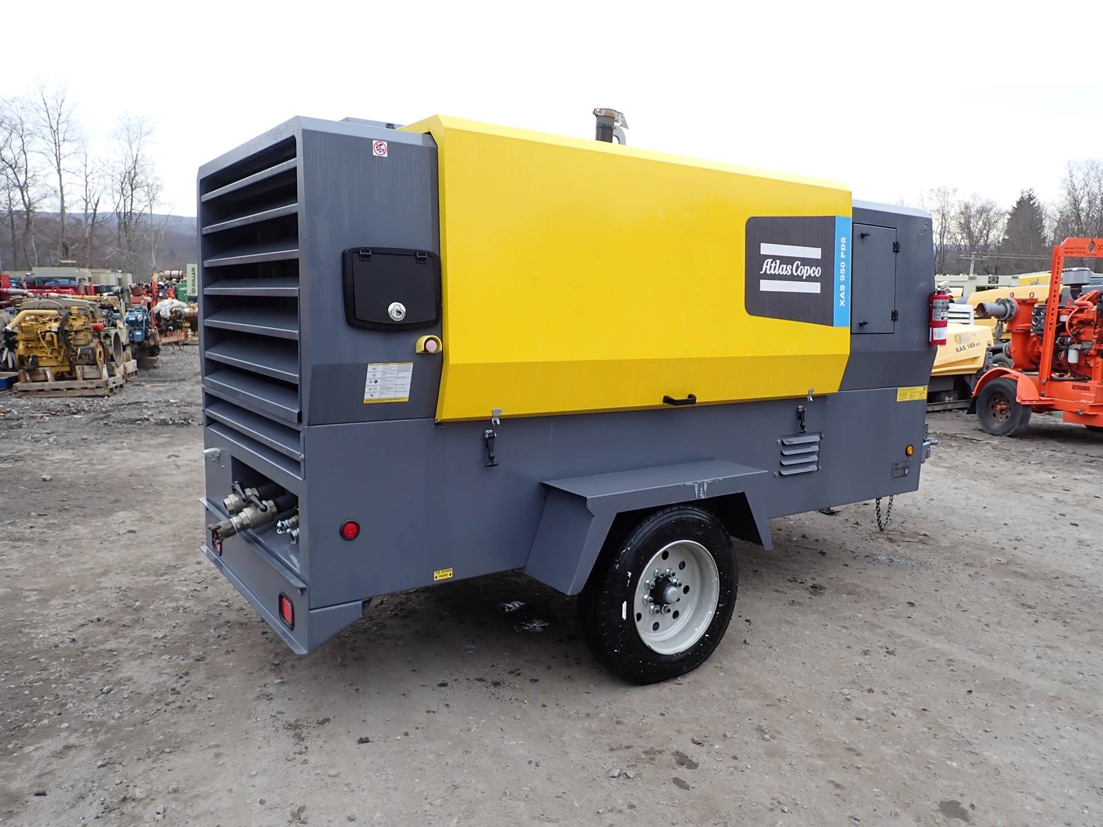 2020 Atlas Copco XAS950 PD8 FT4 air compressor, CAT C7.1/Perkins 1206F turbo diesel engine, 620 hours, trailer mounted, towable, standard and aftercooled/instrument quality air circuits, 4 air outlets, selectable pressure settings, RENTAL FLEET MAINTAINED, FULLY OPERATIONAL AND IN EXCELLENT RUNNING CONDITION. COMPRESSOR IS RATED 950 CFM AT 100 PSI, 900 CFM AT 150 PSI AND 750 CFM AT 200 PSI -- EXTREMELY VERSATILE UNIT AT ANY PRESSURE SETTING YOU NEED! EXTREMELY NICE COMPRESSOR HERE -- WILL DO ANY JOB YOU NEED -- TIER 4 COMPLIANT FOR THOSE JOBS THAT REQUIRE IT, SLICK PACKAGE, SINGLE AXLE TRAILER FOR EASY TOWING -- DON'T MISS THIS ONE !!