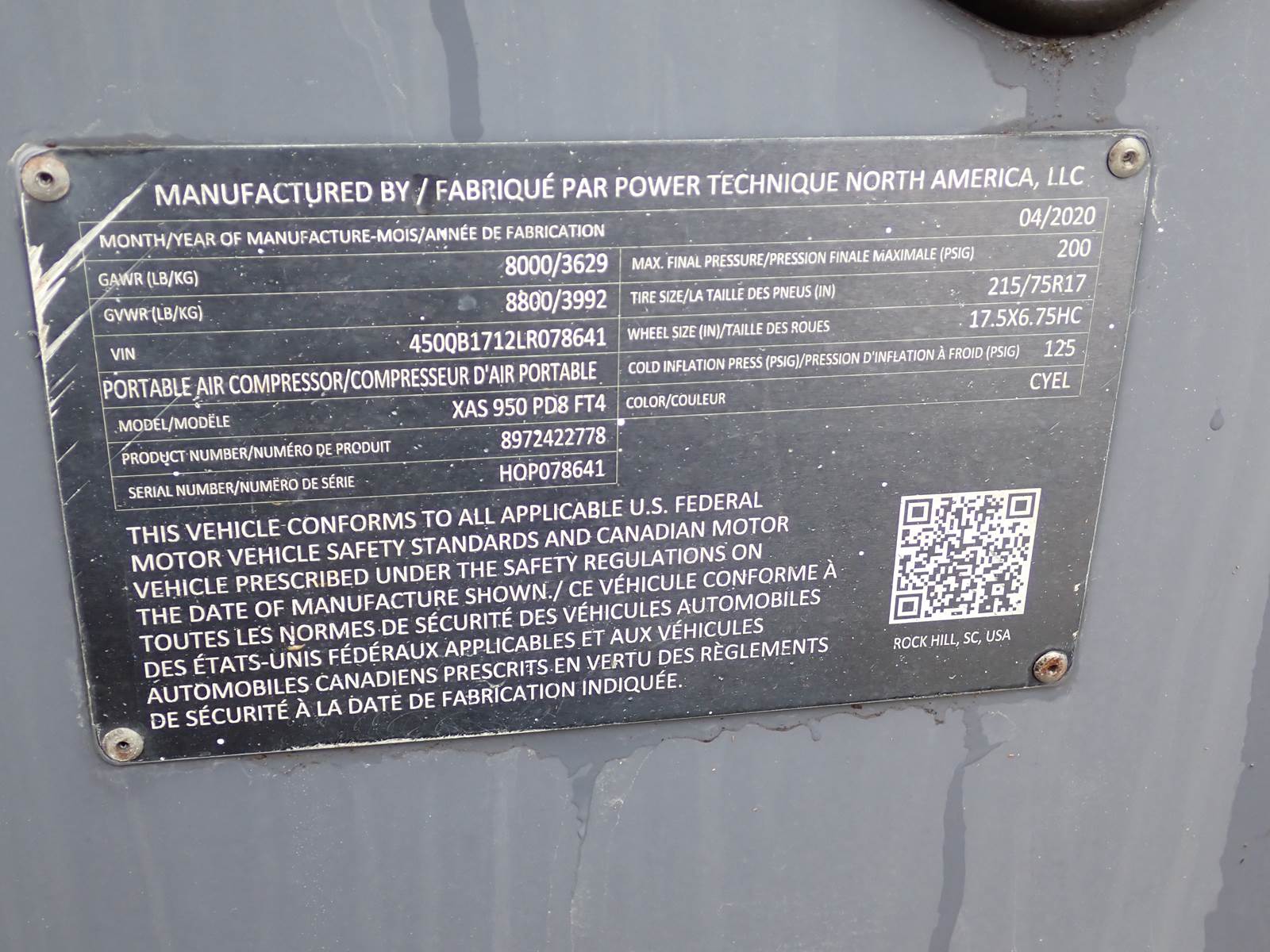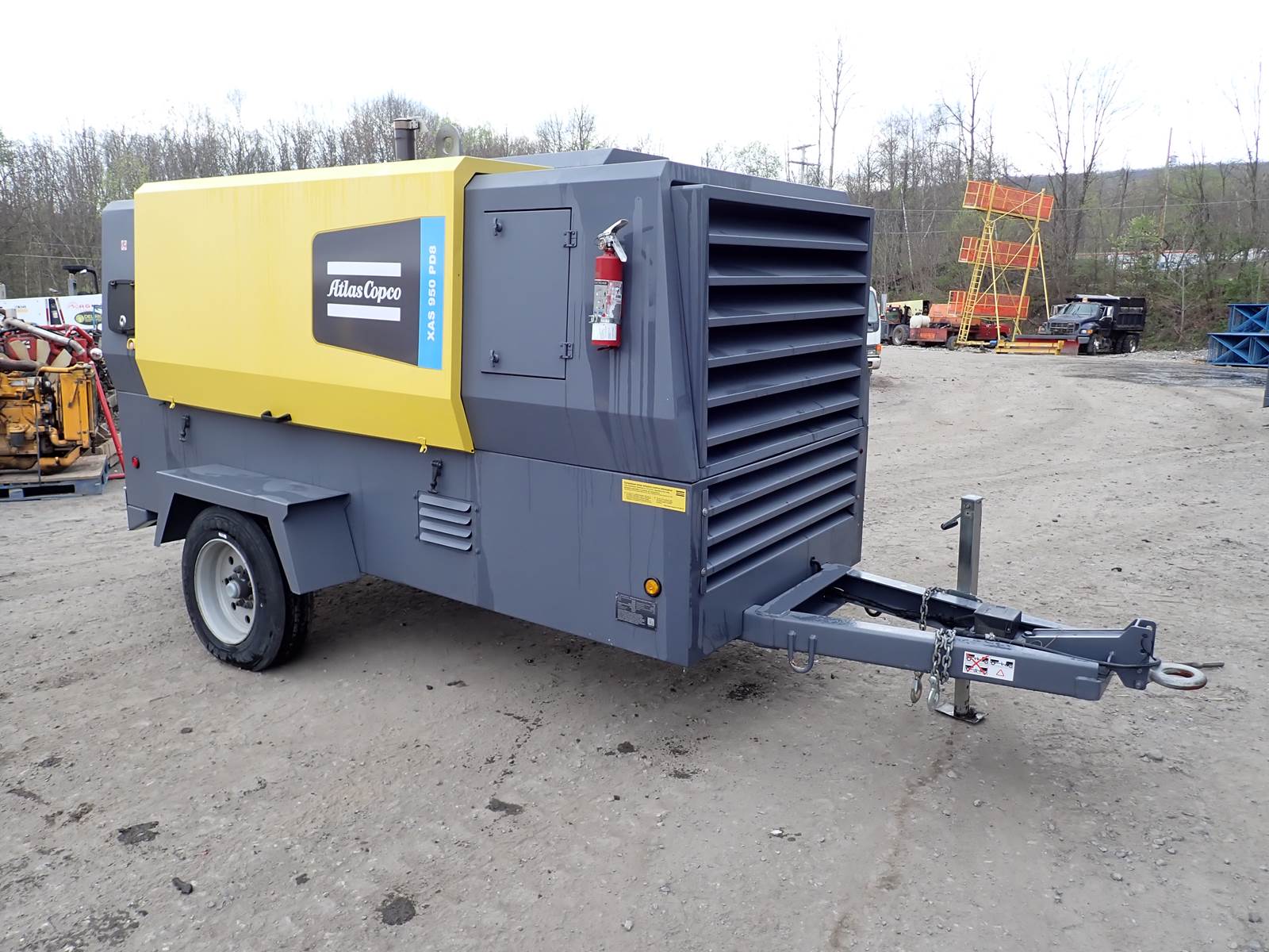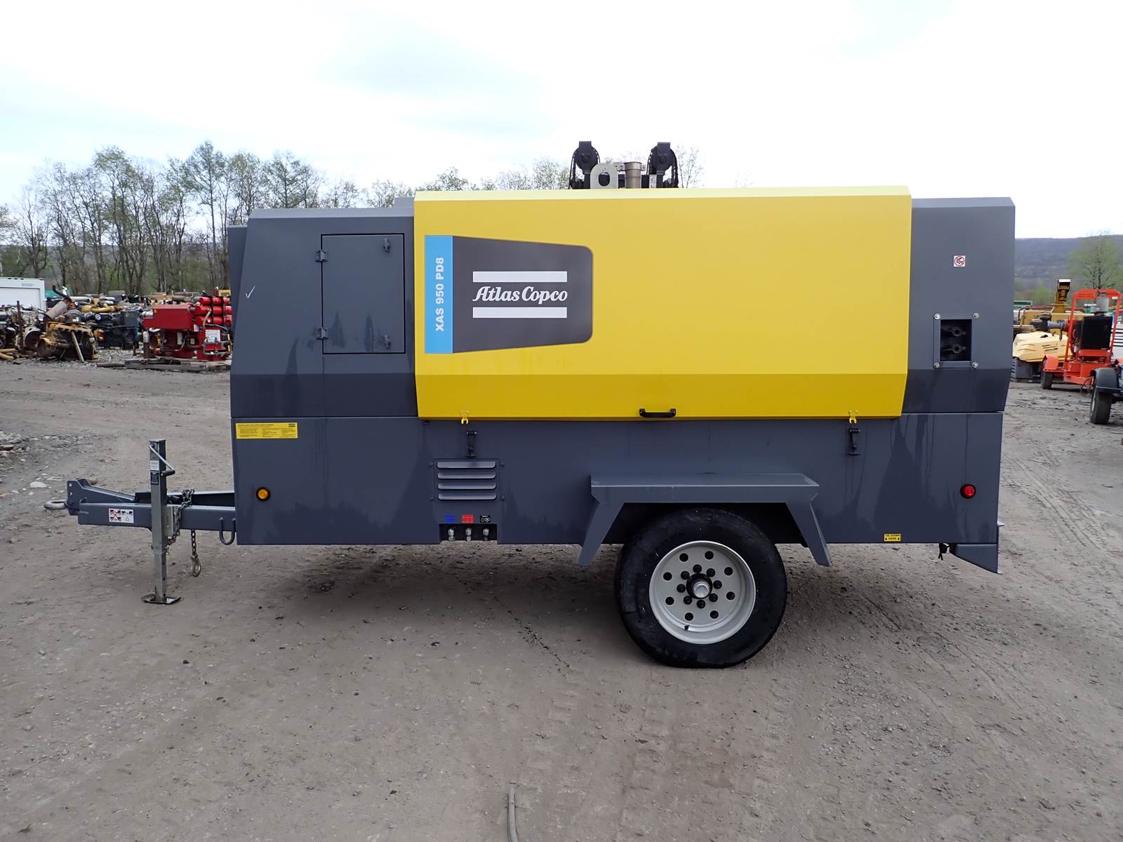 2020 Atlas Copco XAS950 PD8 FT4 air compressor, CAT C7.1/Perkins 1206F turbo diesel engine, 1653 hours, trailer mounted, towable, standard and aftercooled/instrument quality air circuits, 4 air outlets, selectable pressure settings, RENTAL FLEET MAINTAINED, FULLY OPERATIONAL AND IN EXCELLENT RUNNING CONDITION. COMPRESSOR IS RATED 950 CFM AT 100 PSI, 900 CFM AT 150 PSI AND 750 CFM AT 200 PSI -- EXTREMELY VERSATILE UNIT AT ANY PRESSURE SETTING YOU NEED! EXTREMELY NICE COMPRESSOR HERE -- WILL DO ANY JOB YOU NEED -- TIER 4 COMPLIANT FOR THOSE JOBS THAT REQUIRE IT, SLICK PACKAGE, SINGLE AXLE TRAILER FOR EASY TOWING -- DON'T MISS THIS ONE !!