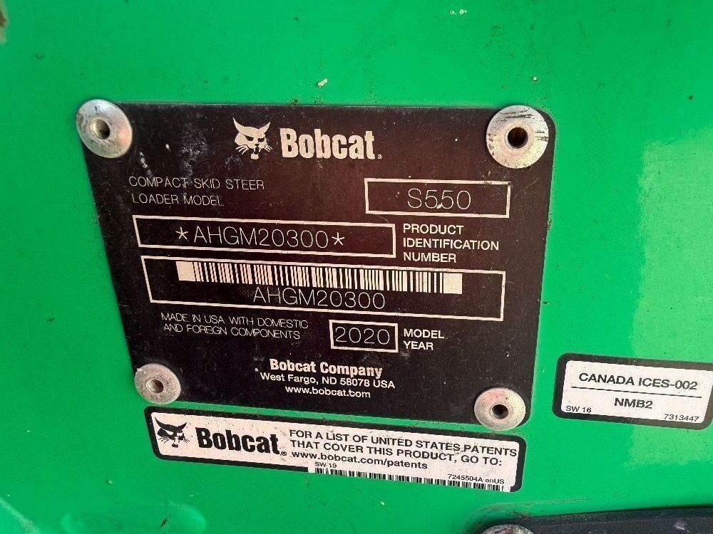 2020 BOBCAT S550 SKIDSTEER LOADER --(LOCATED IN MADERA, CA)--