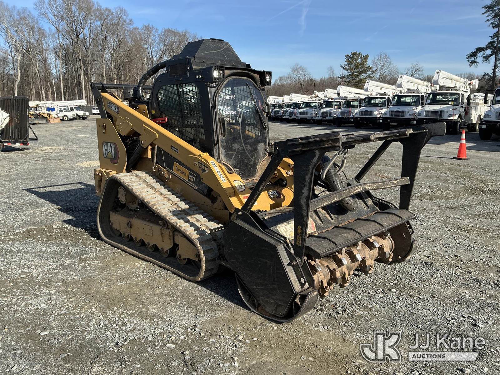 2020 Caterpillar 299D3XE Crawler Skid Steer Loader, s/n CAT0299DCBX902559, Cat diesel, Hydrostatic, A/C, with mulching head, high flow aux hyd, joystick controls, rear view camera, heated seat & EROPS w/A/C, (Runs, Moves & Operates) (500 hr Maintenance Due)(Seller States: Hyd Block Under Cab Needs Replaced) (Reads 3,660 hours) NOTE: This unit is being sold AS IS/WHERE IS via Timed Auction and is located in China Grove, NC. Inspection & preview days for this unit are the 2 business days prior to the first day of items closing for this auction, item is located at 820 E NC Hwy 152 China Grove, NC 28023 and hours of operations are 8a-4p. For pre-sale questions, please contact Office Staff @ (704) 674-1113. (Buyer is responsible for removal. Assistance by consignor or JJ Kane Auctions is not assured.)