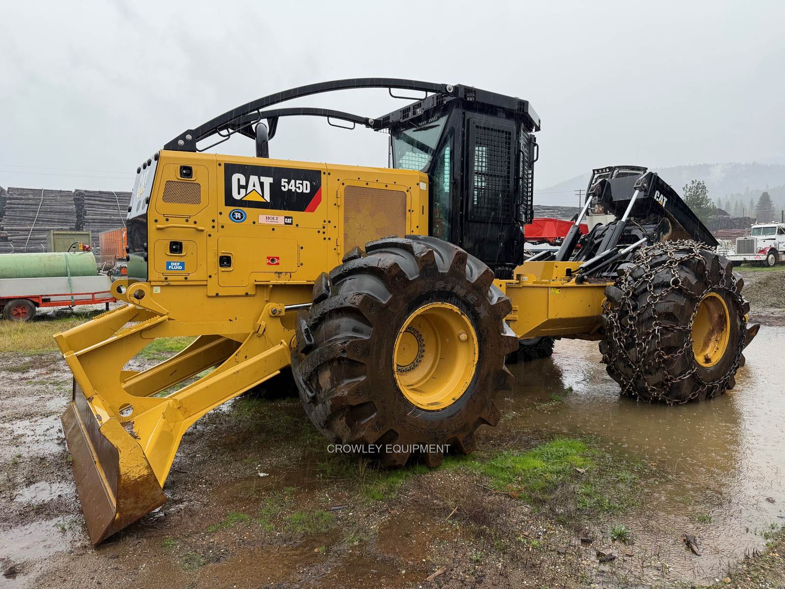Cat 545D with 3,342 hours. Bunching Grapples, Joystick Controls, Turn Around Seat. New Tires.