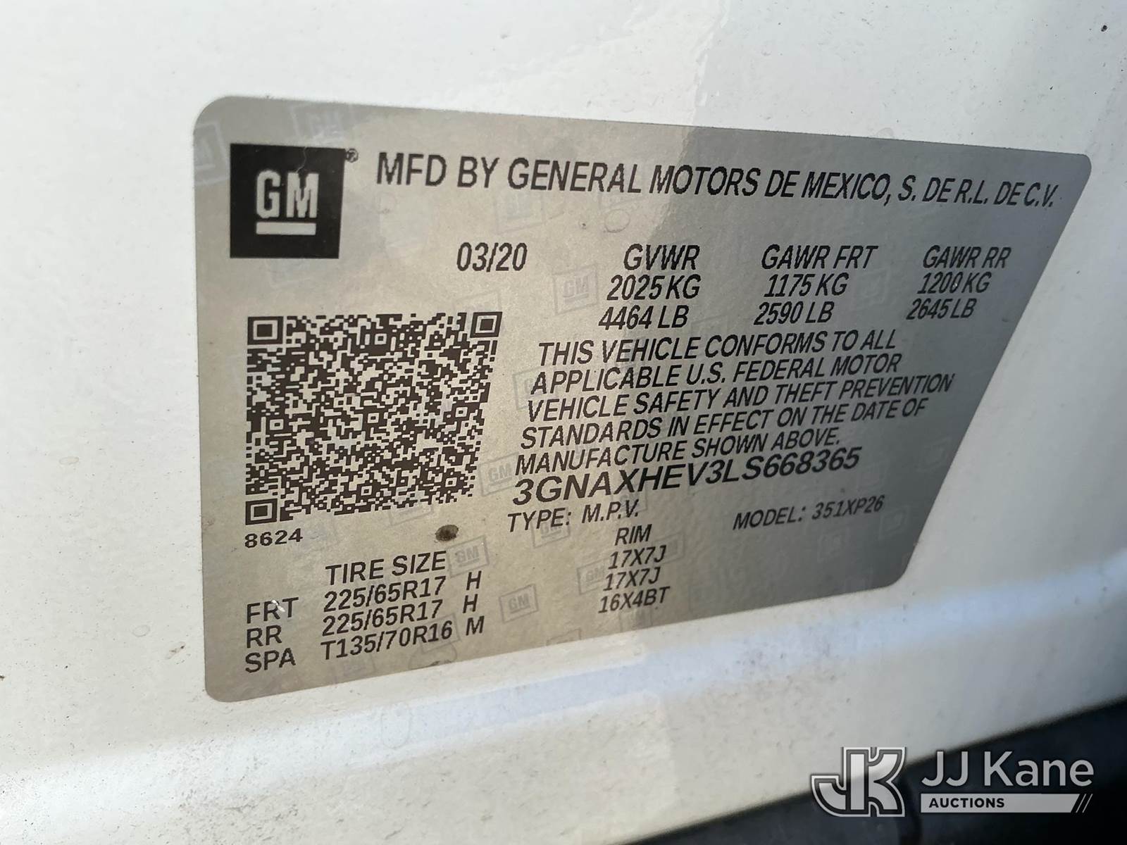 2020 Chevrolet Equinox 4-Door Sport Utility Vehicle, 1.5L L4 DOHC 16V TURBO gas, FWD, Auto, A/C, (40,097 miles) Hillsborough County Sheriff's Office Unit (Runs & Moves) (FL Residents Purchasing Titled Items – tax, title & registration fees will be collected at the maximum rate of $400.00 under 25,999 and $800.00 for Over 26,000 and $250.00 trailers – Proof of insurance is mandatory; Out of State Residents Purchasing Title Items – tax will be collected based upon your state rate.) (Branded Title - Police Vehicle) This is a Titled Item NOTE: This unit is being sold AS IS/WHERE IS via Timed Auction and is located in Thonotosassa, FL. Inspection & preview days for this unit are the 2 business days prior to the first day of items closing for this auction, item is located at 11720 N US 301 Thonotosassa, Fl 33592 and hours of operations are 8a-4p. For pre-sale questions, please contact Office Staff @ (813) 986-2485. (Buyer is responsible for removal. Assistance by consignor or JJ Kane Auctions is not assured.)